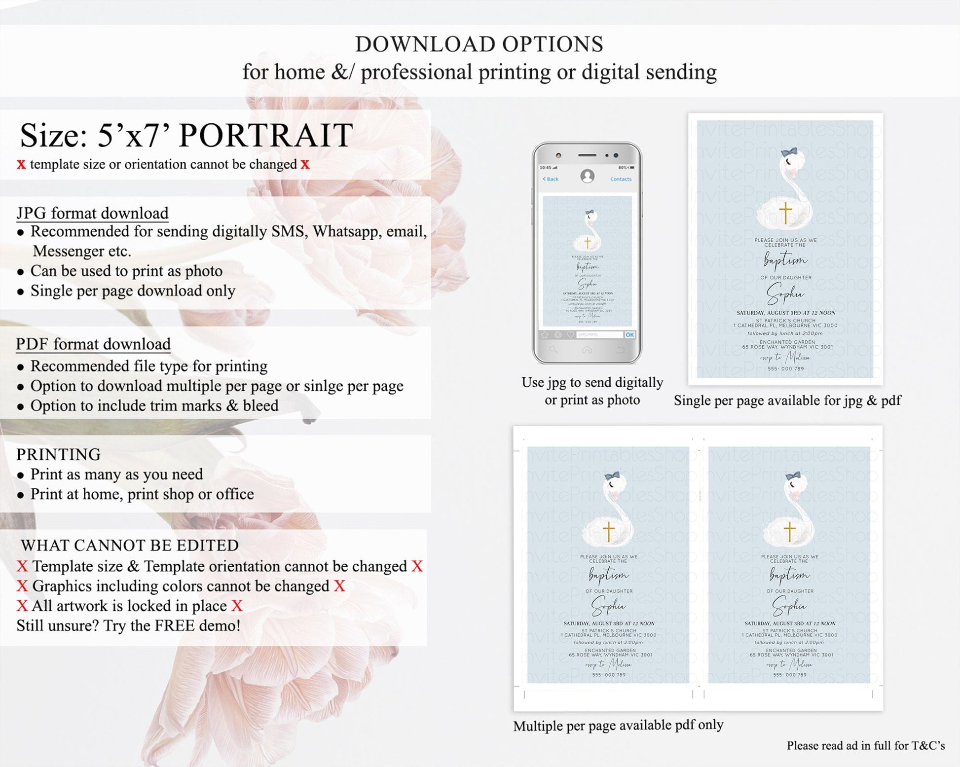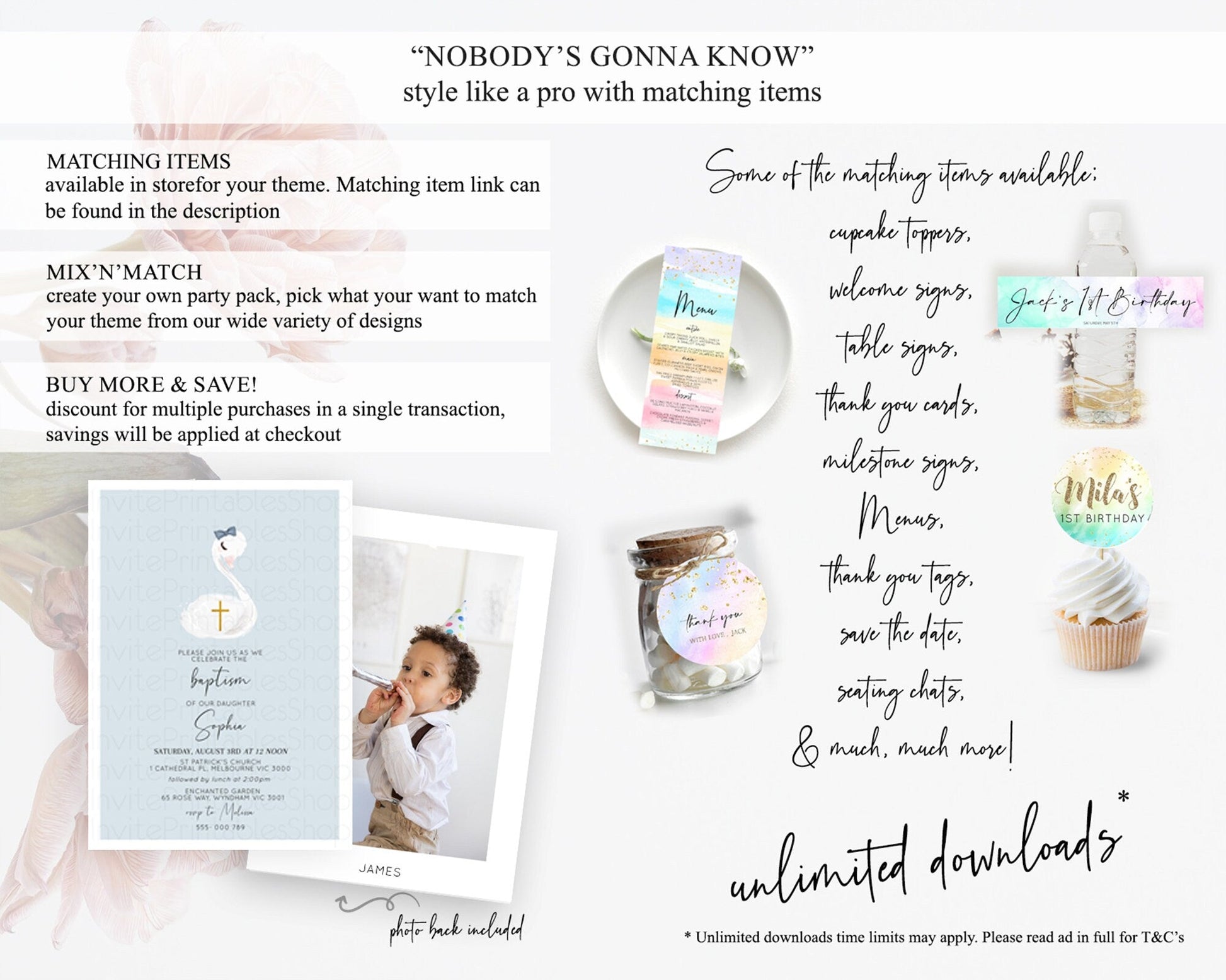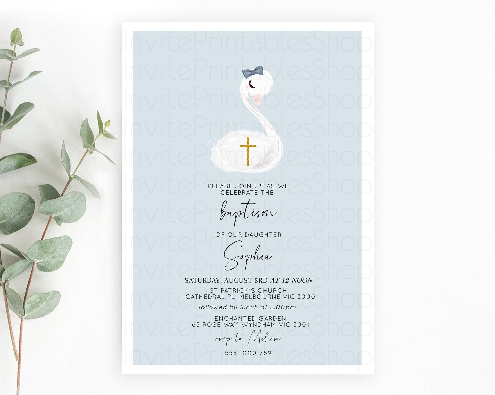 Swan Lake Baptism Invitation Swan Princess Ballet Baptism 1st Birthday Enchanted Forest Secret Garden Watercolour Pastel Floral D10760