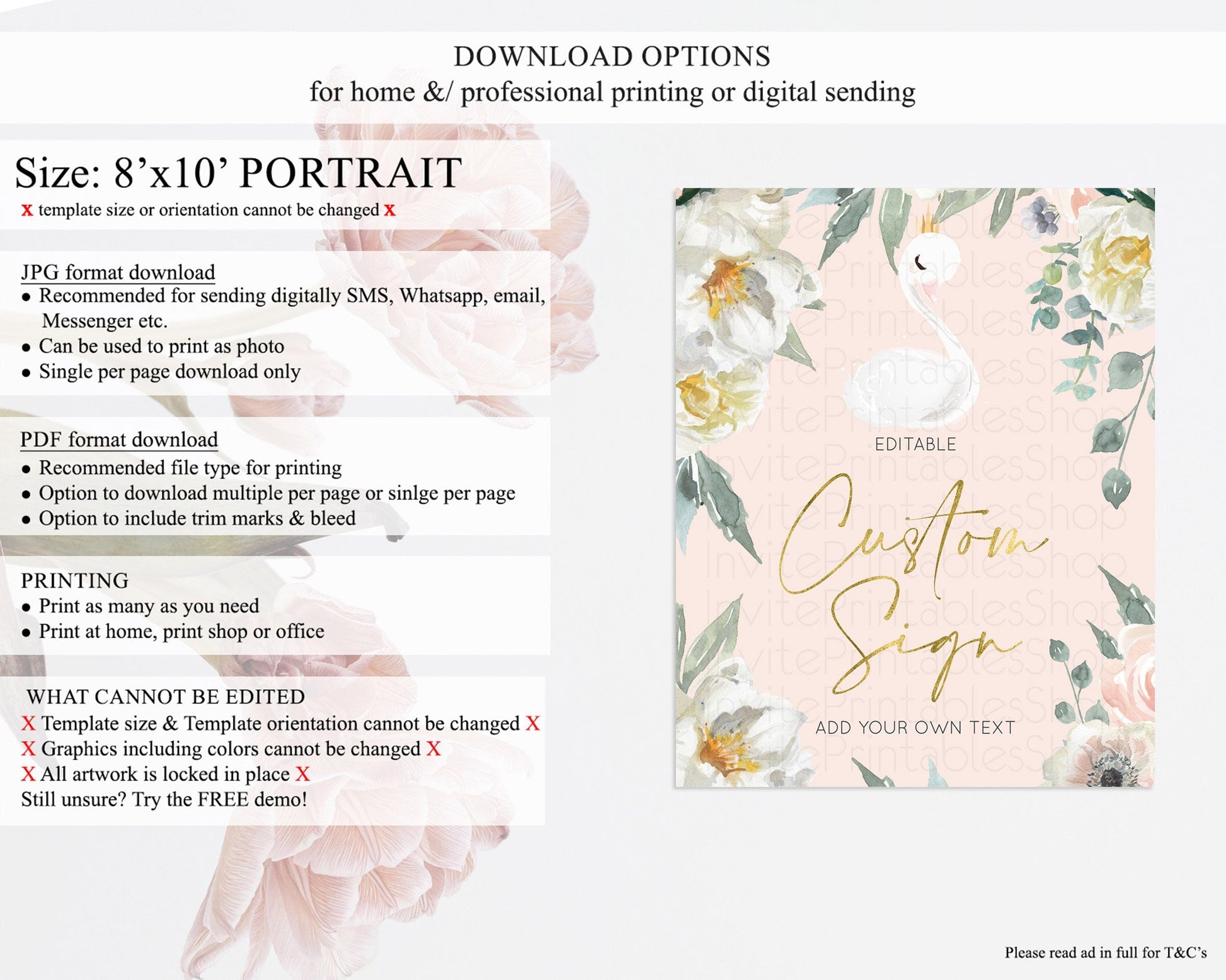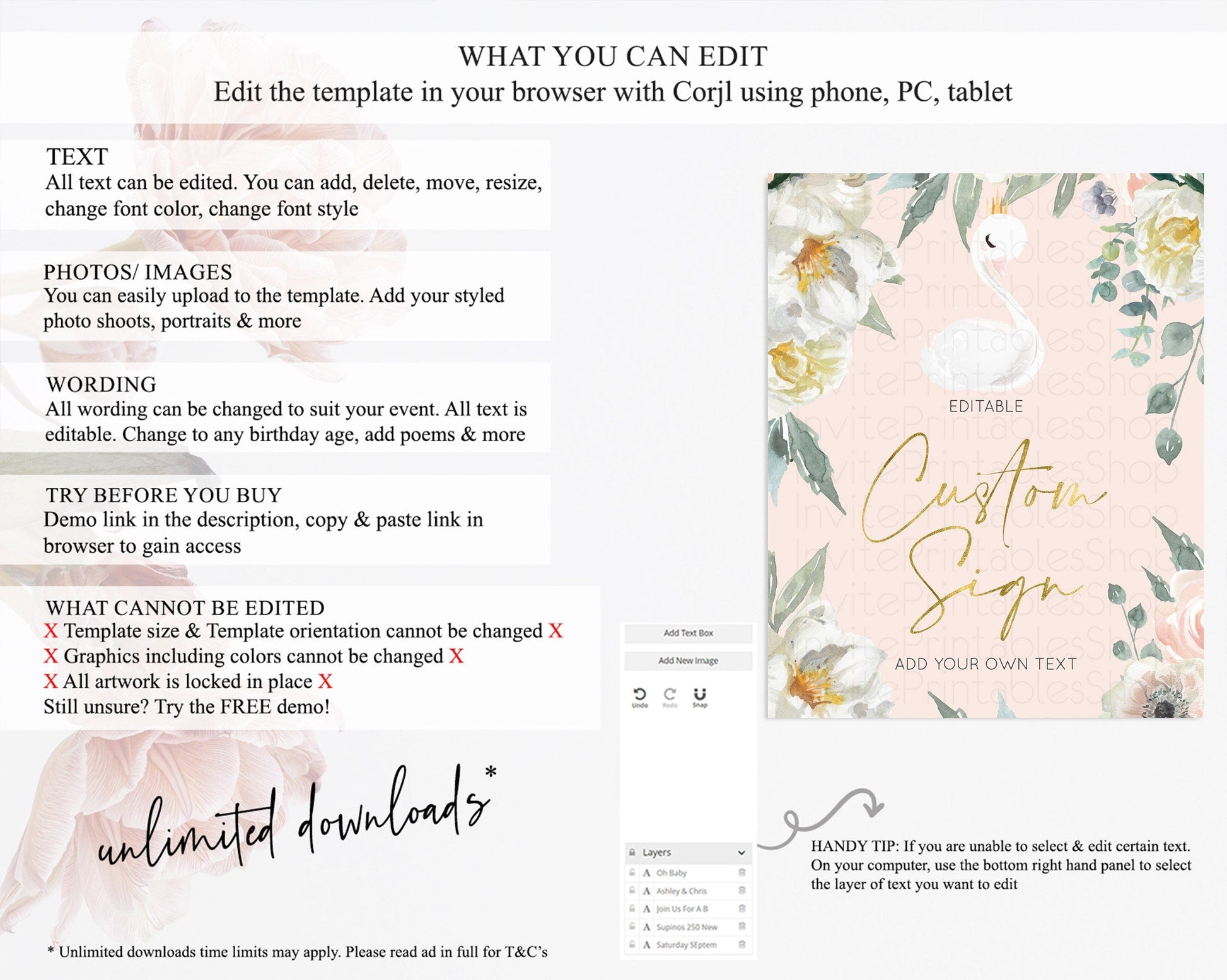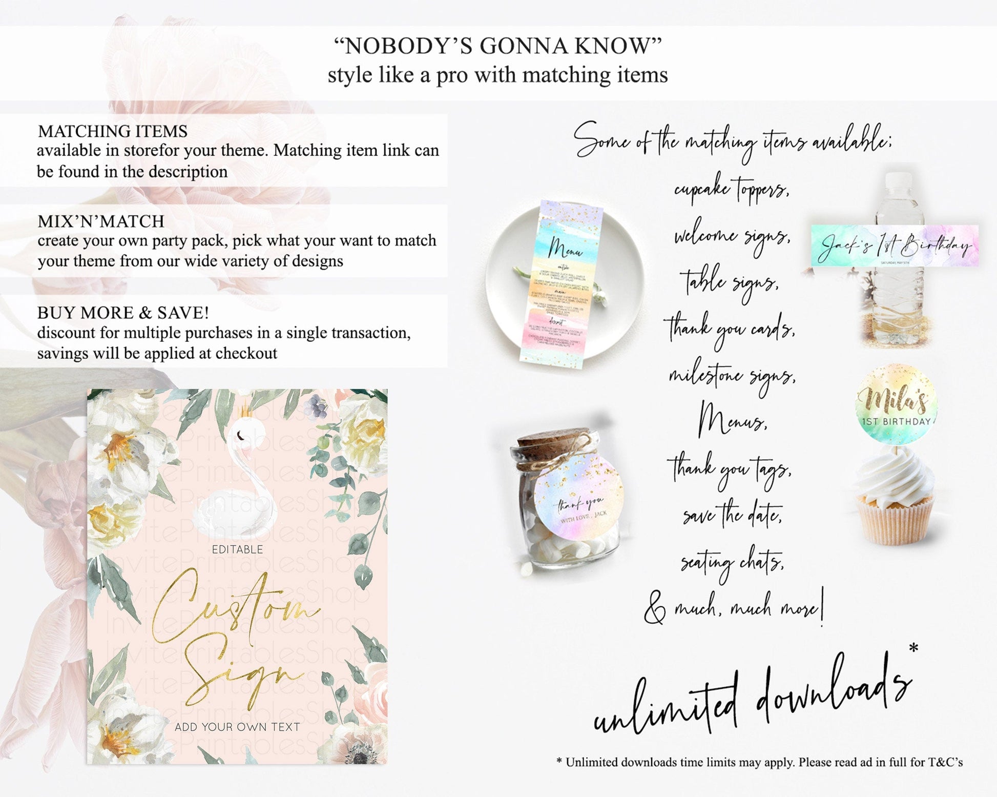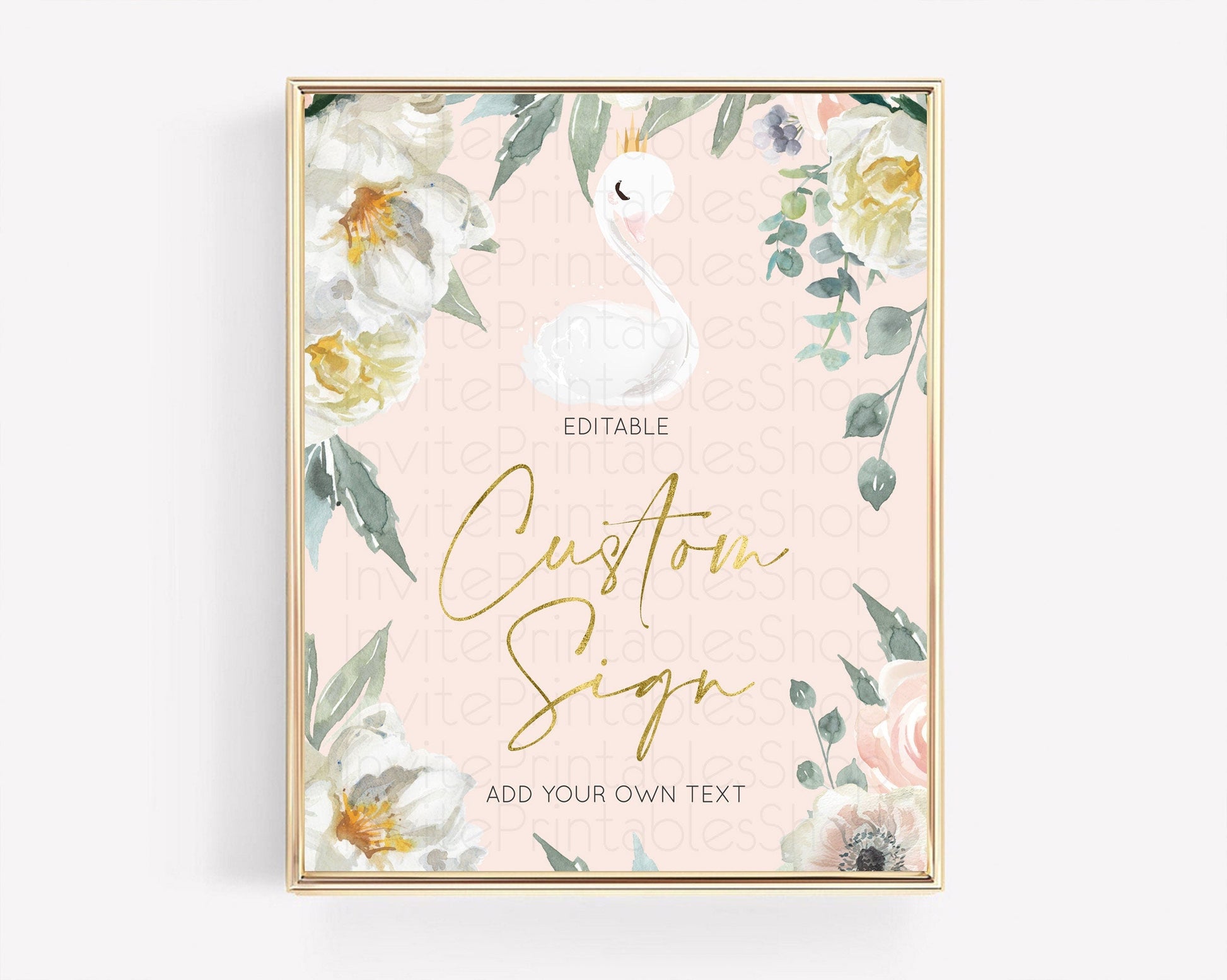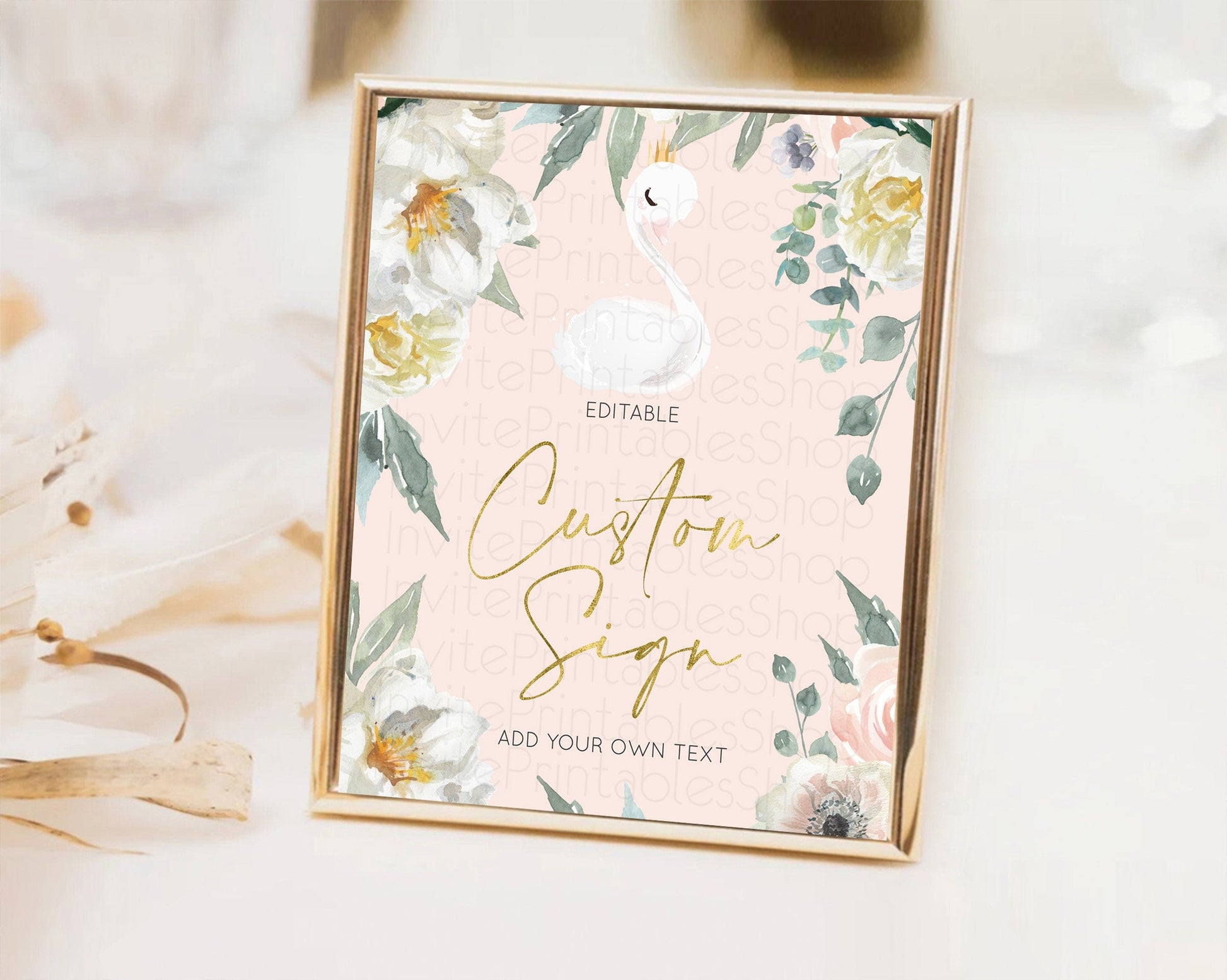 Swan Table Sign Decor Swan Princess Ballet Party Enchanted Swan Lake Secret Garden Pastel Floral 1st Birthday Baptism Baby Shower D10115