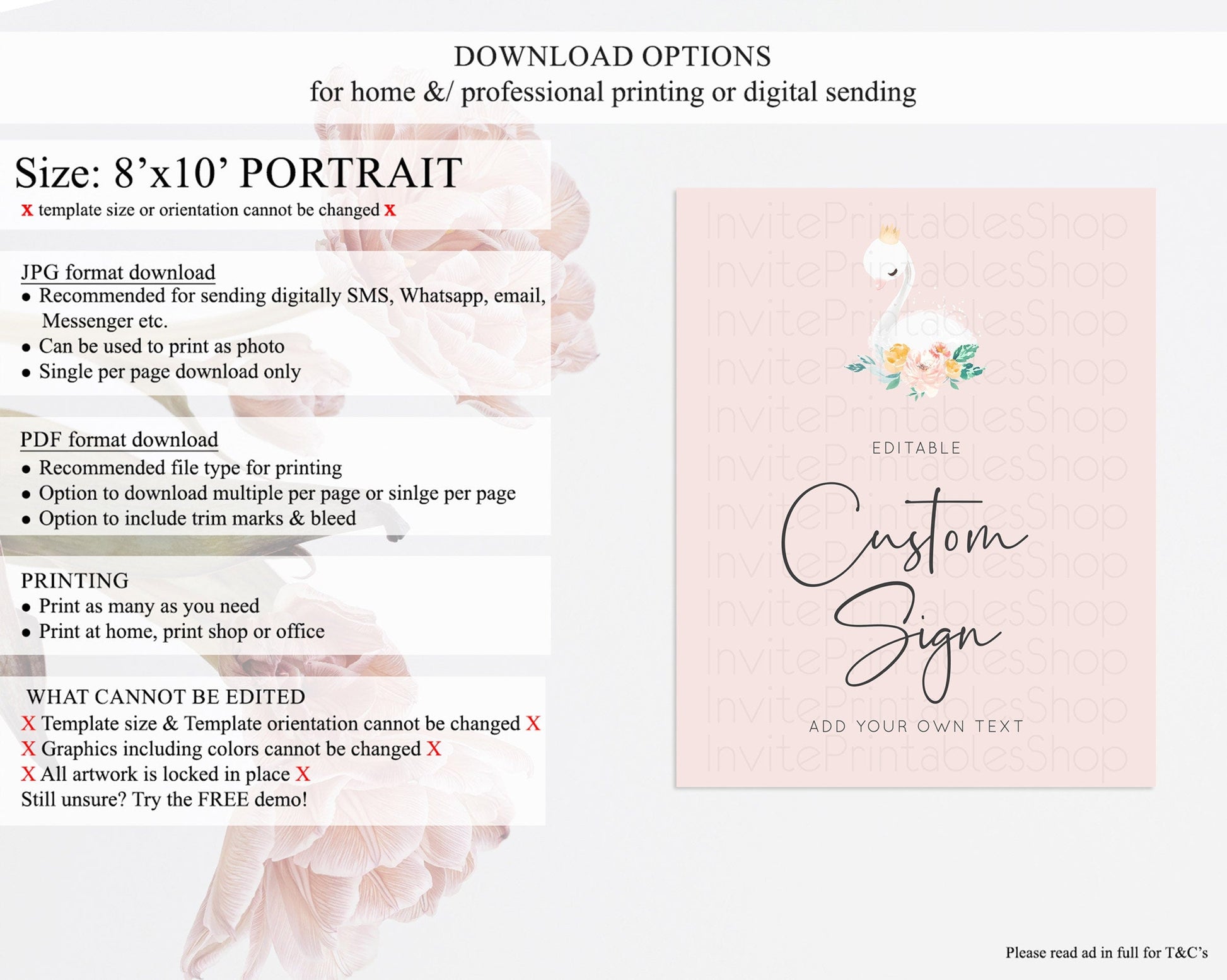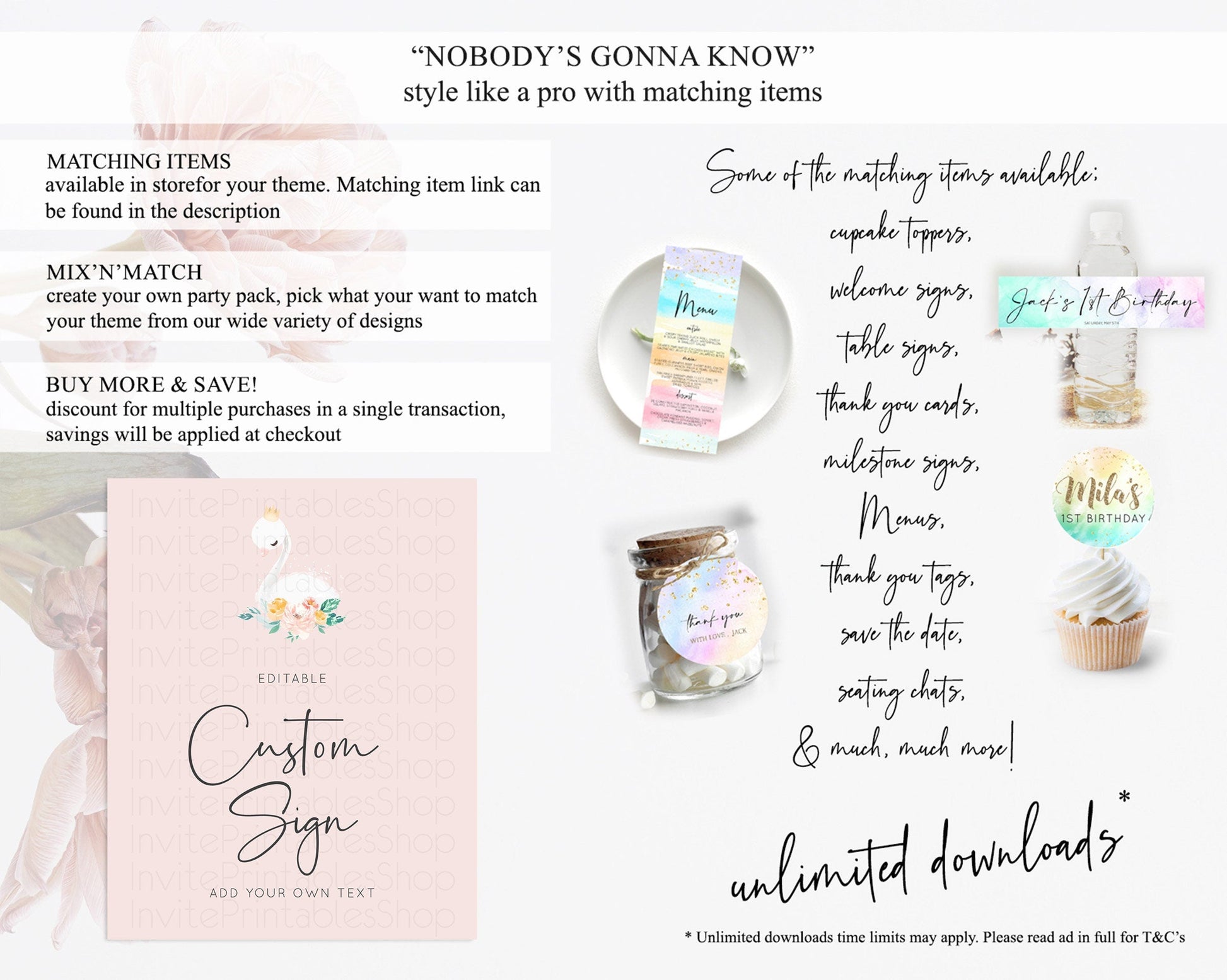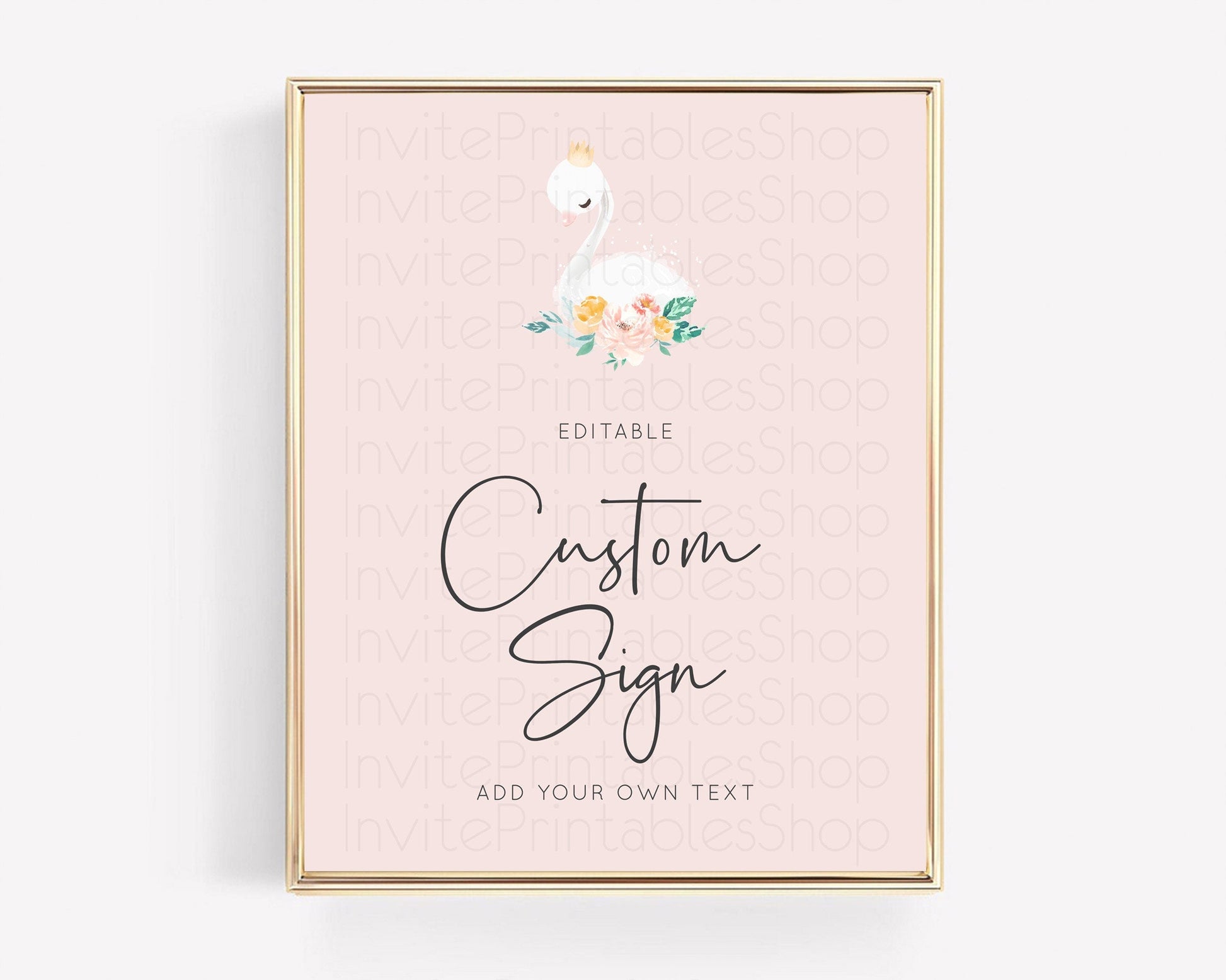 Swan Table Sign Decor Swan Princess Ballet Party Enchanted Swan Lake Secret Garden Pastel Floral 1st Birthday Baptism Baby Shower D10388