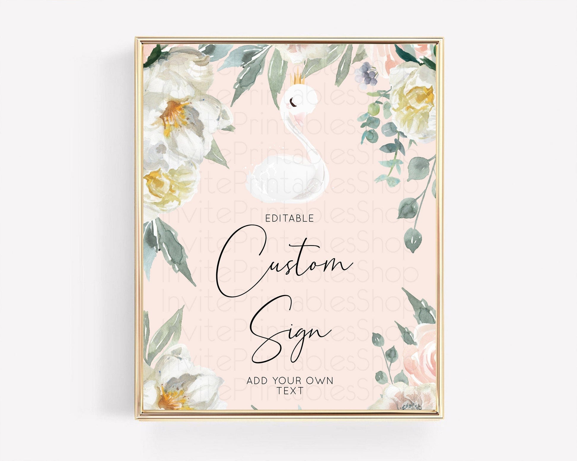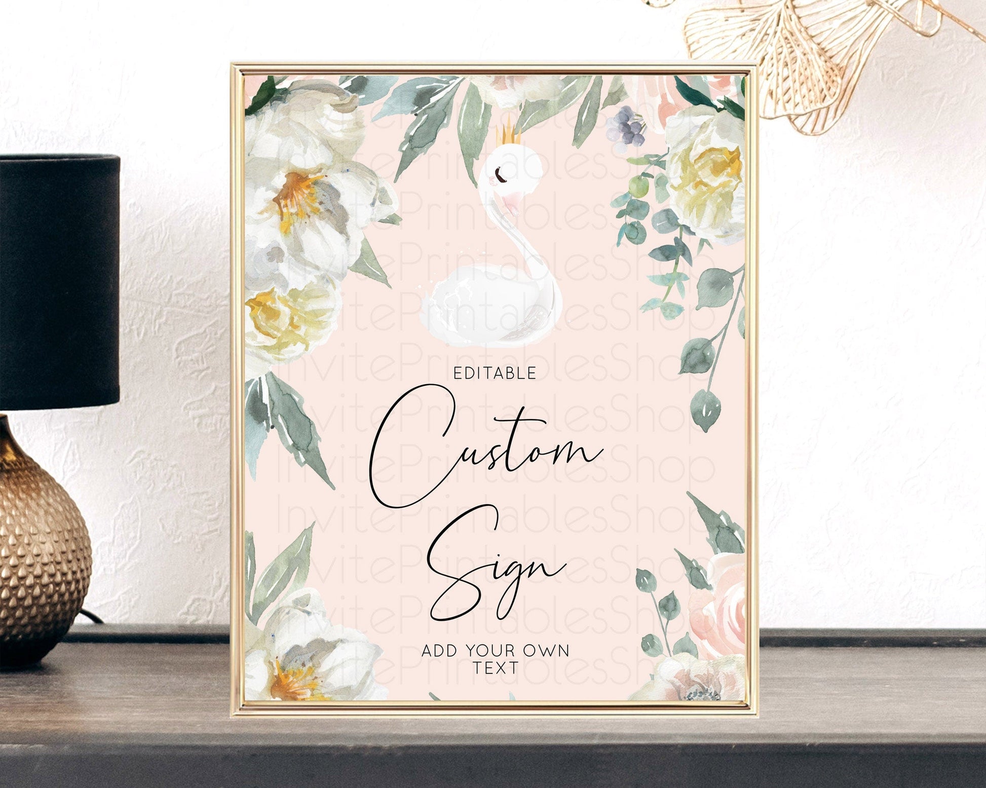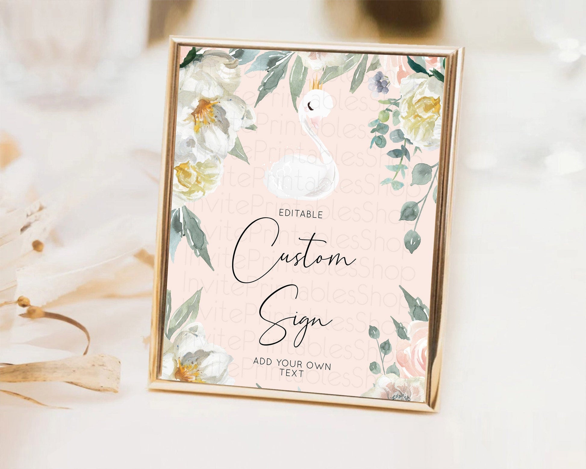 Swan Table Sign Decor Swan Princess Ballet Party Enchanted Swan Lake Secret Garden Pastel Floral 1st Birthday Baptism Baby Shower D10755