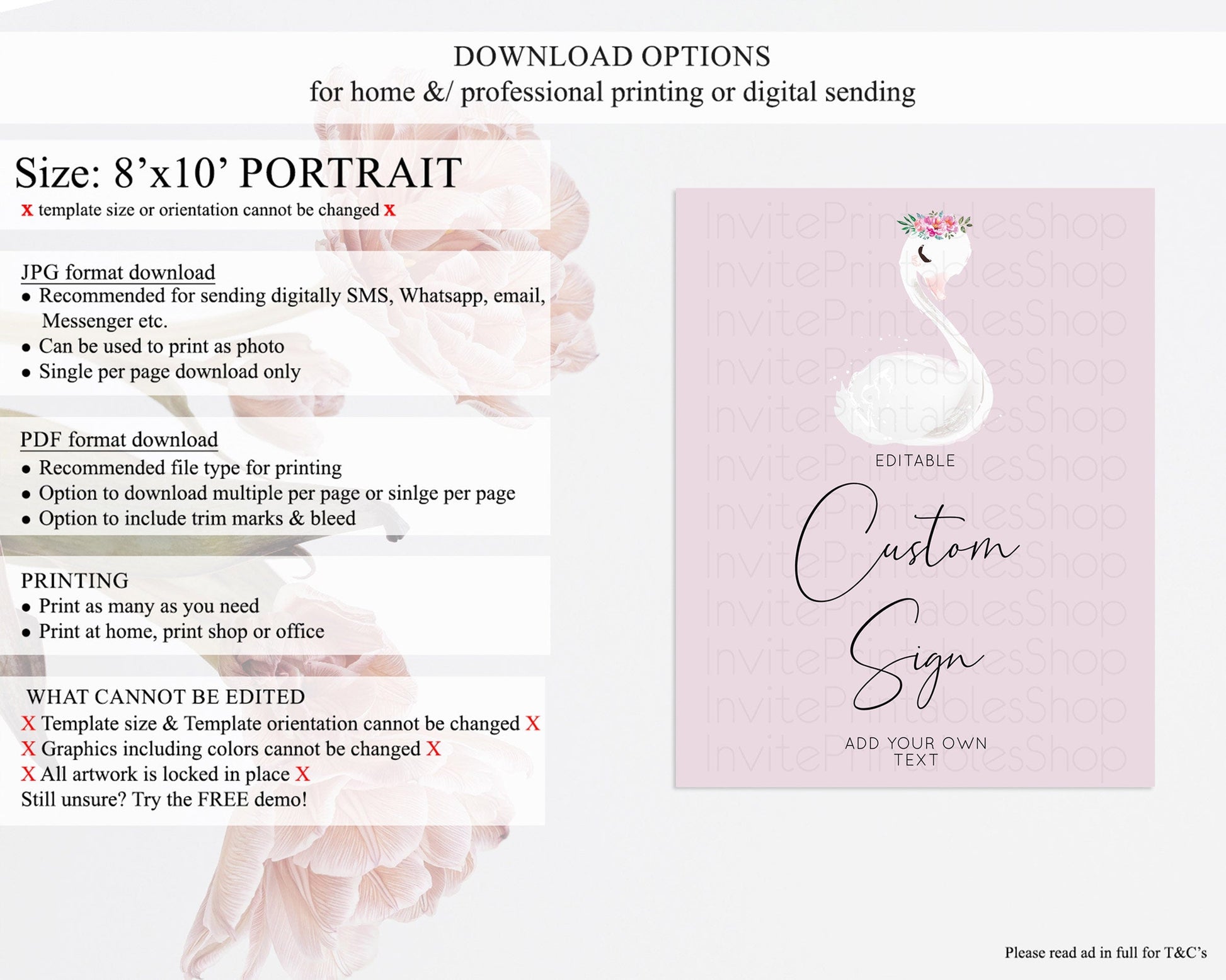 • Template size & orientation cannot be changed. Please use the demo link to confirm this product suits your needs.
