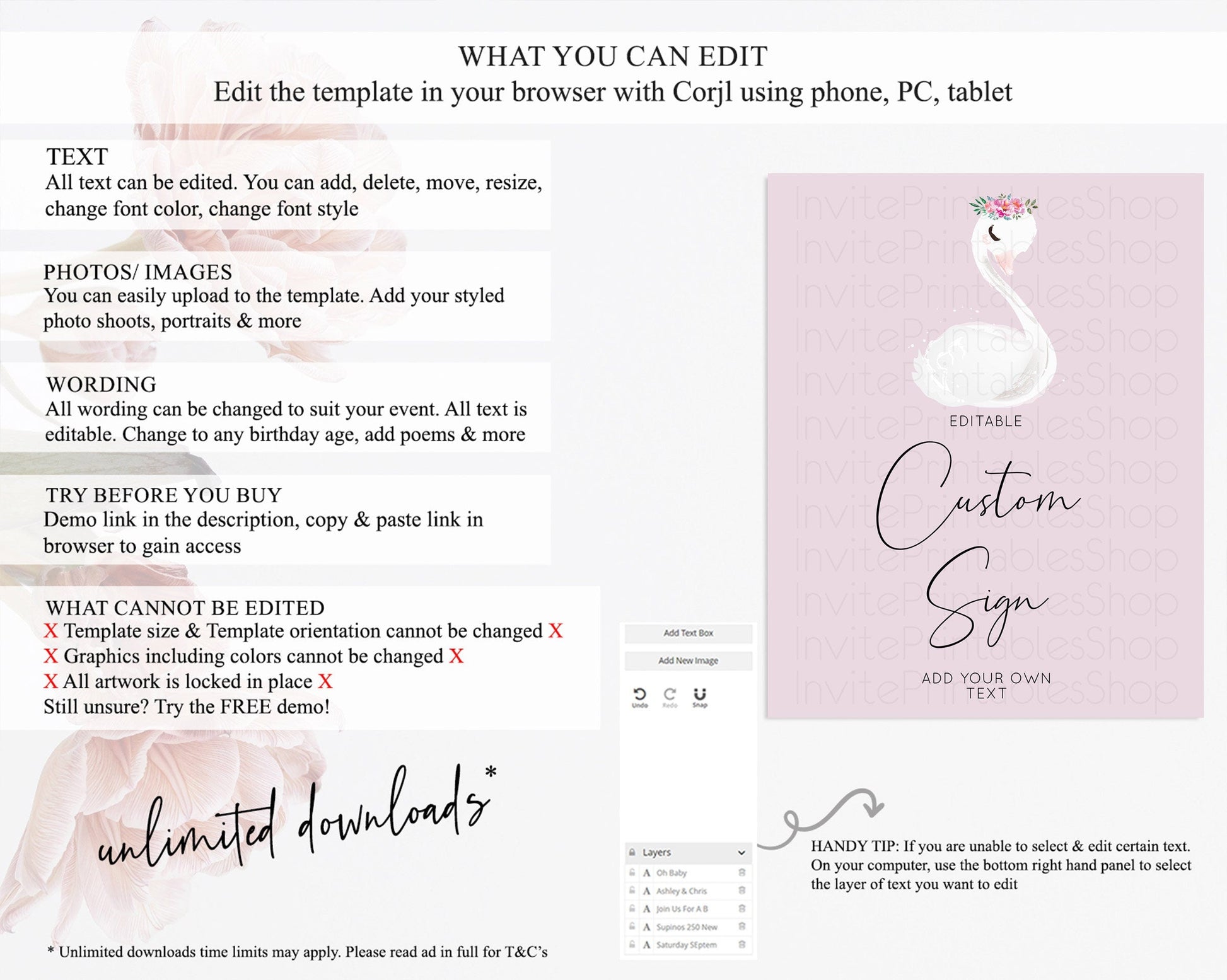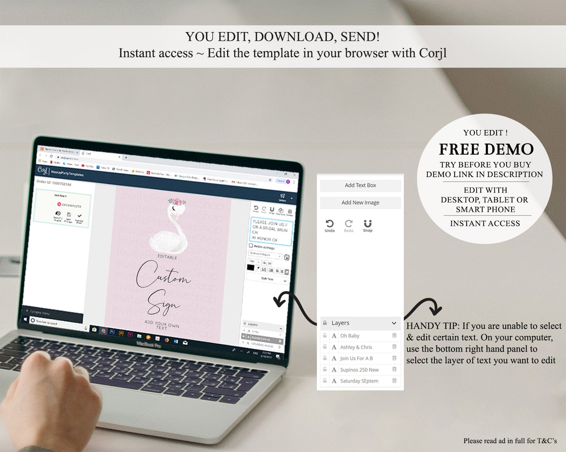 • After purchase, Corjl emails your editing link. Allow up to 15 minutes for delivery.