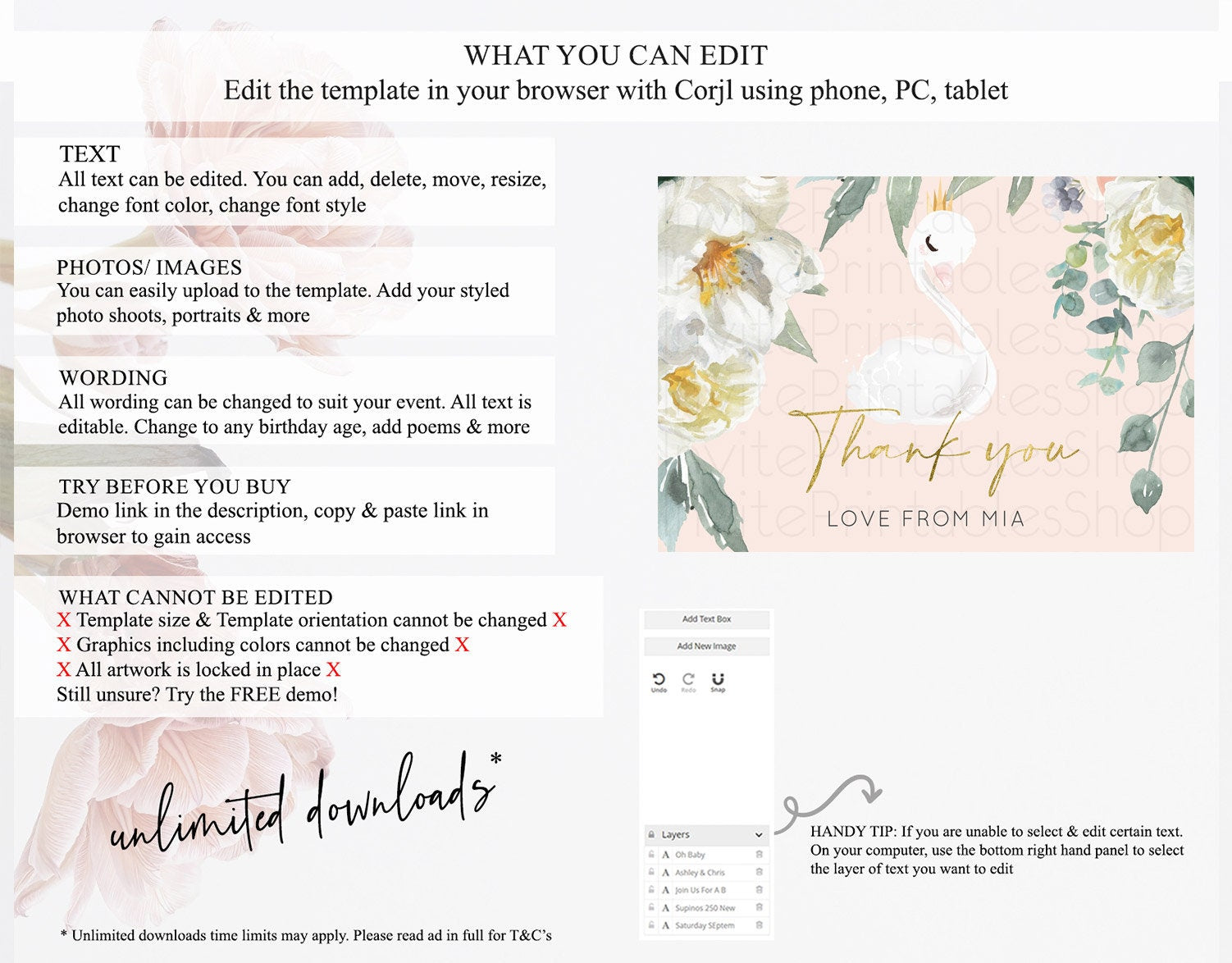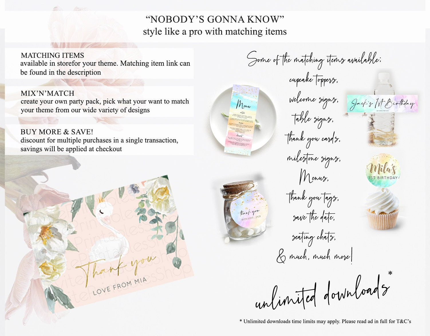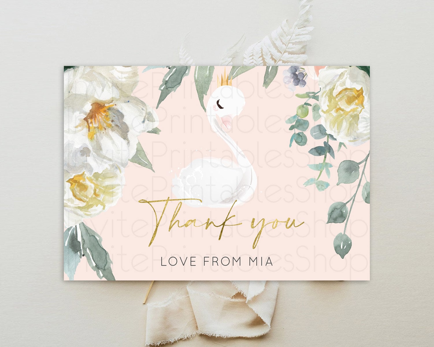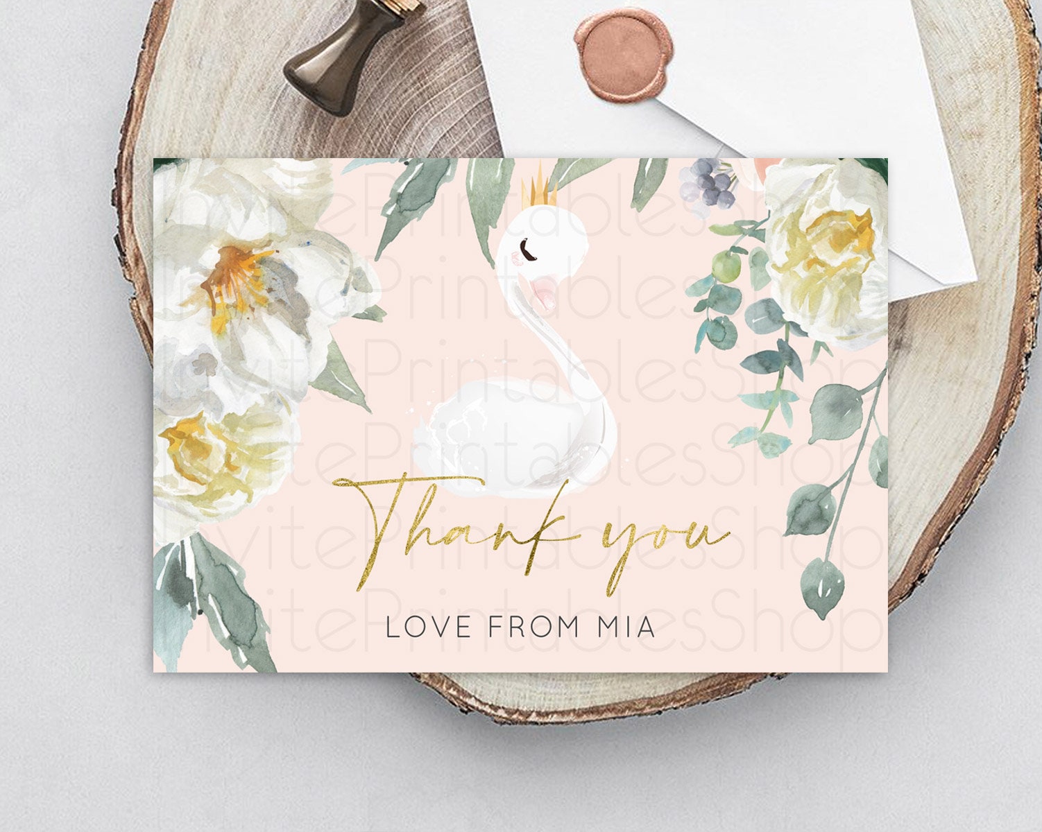 Swan Thank You Swan Princess Ballet Thank You Card Swan Lake Birthday Thank You Cards Secret Garden Pastel Floral Teacher Thank You D10115