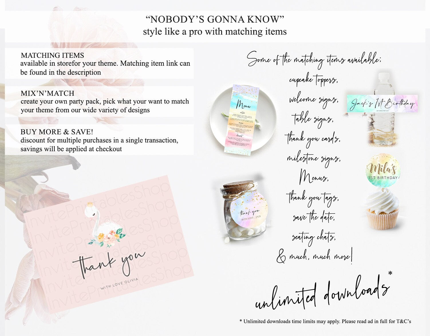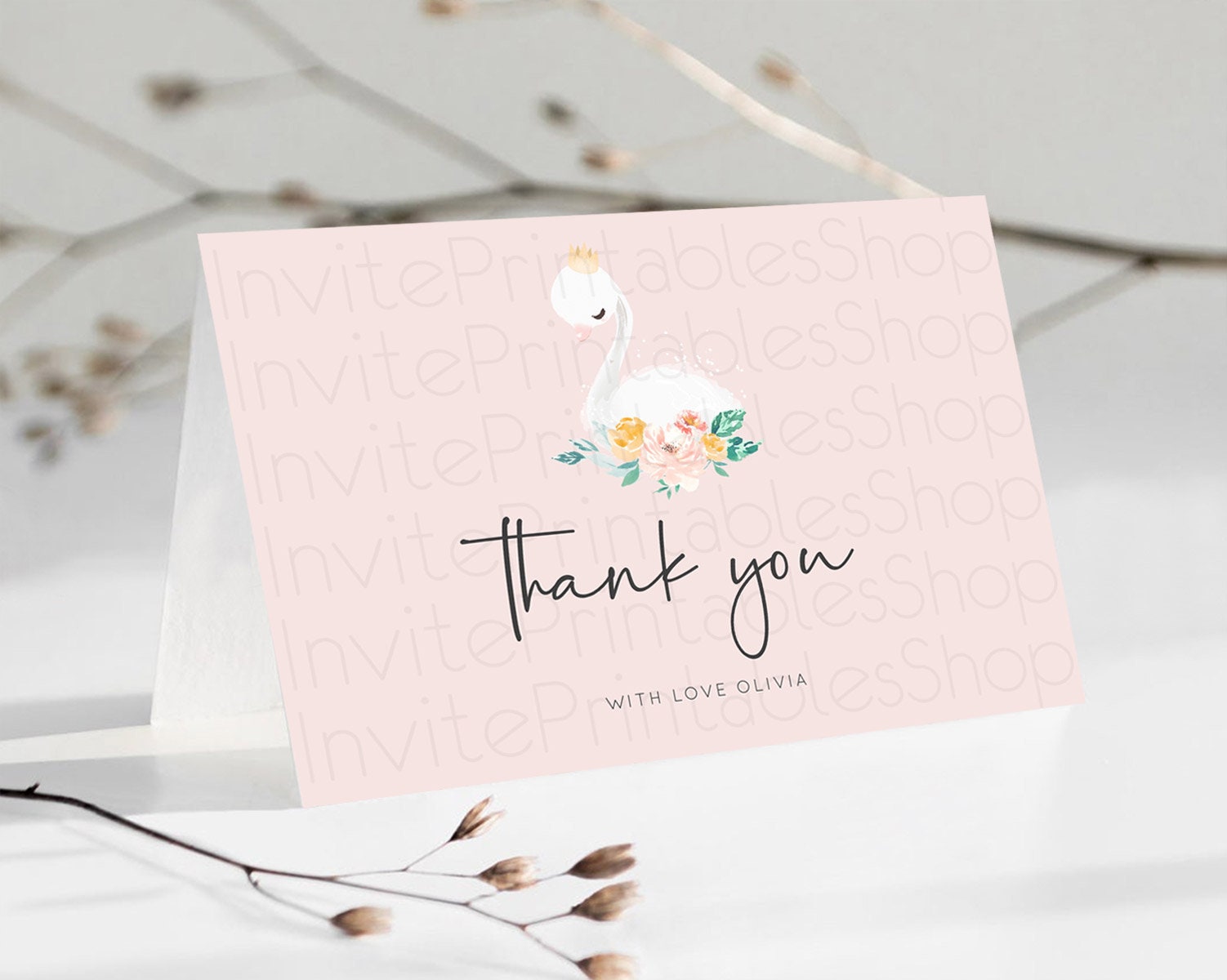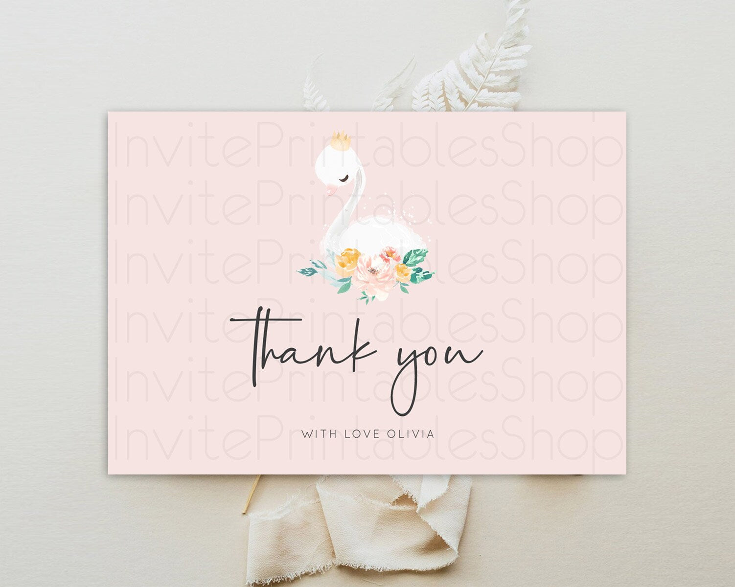 Swan Thank You Swan Princess Ballet Thank You Card Swan Lake Birthday Thank You Cards Secret Garden Pastel Floral Teacher Thank You D10388