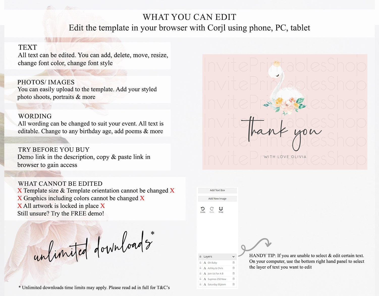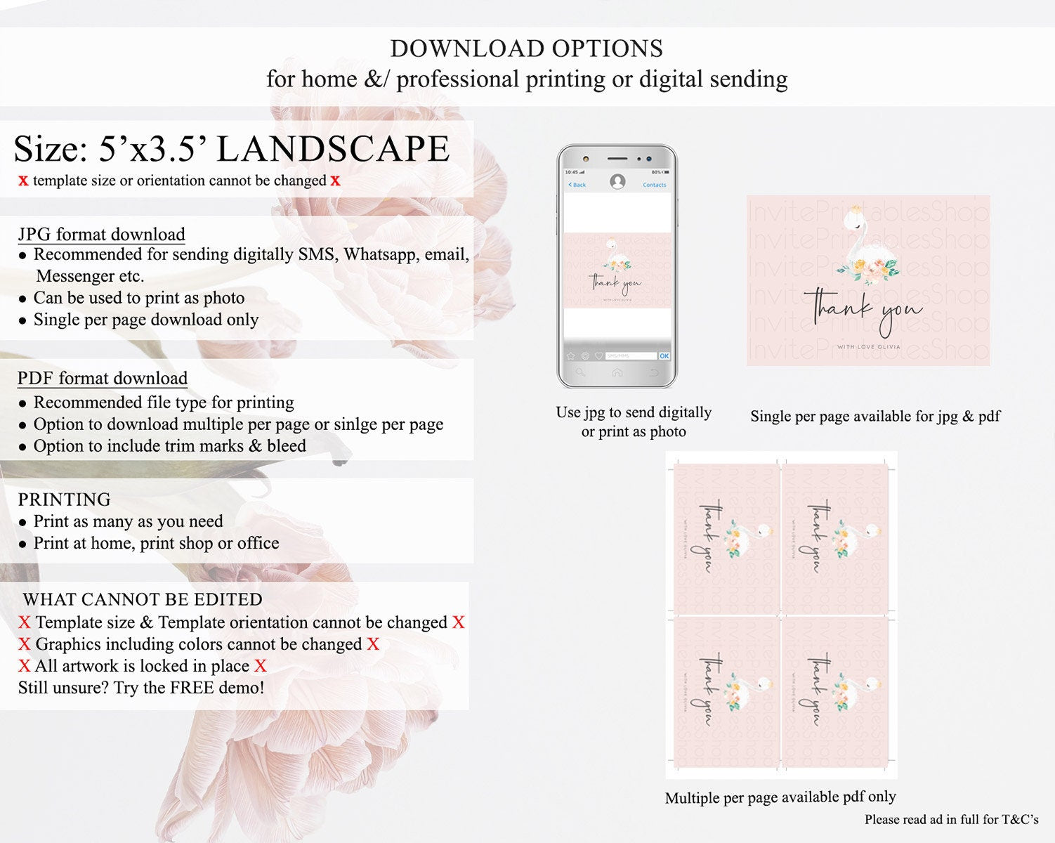 • Template size & orientation cannot be changed. Please use the demo link to confirm this product suits your needs.