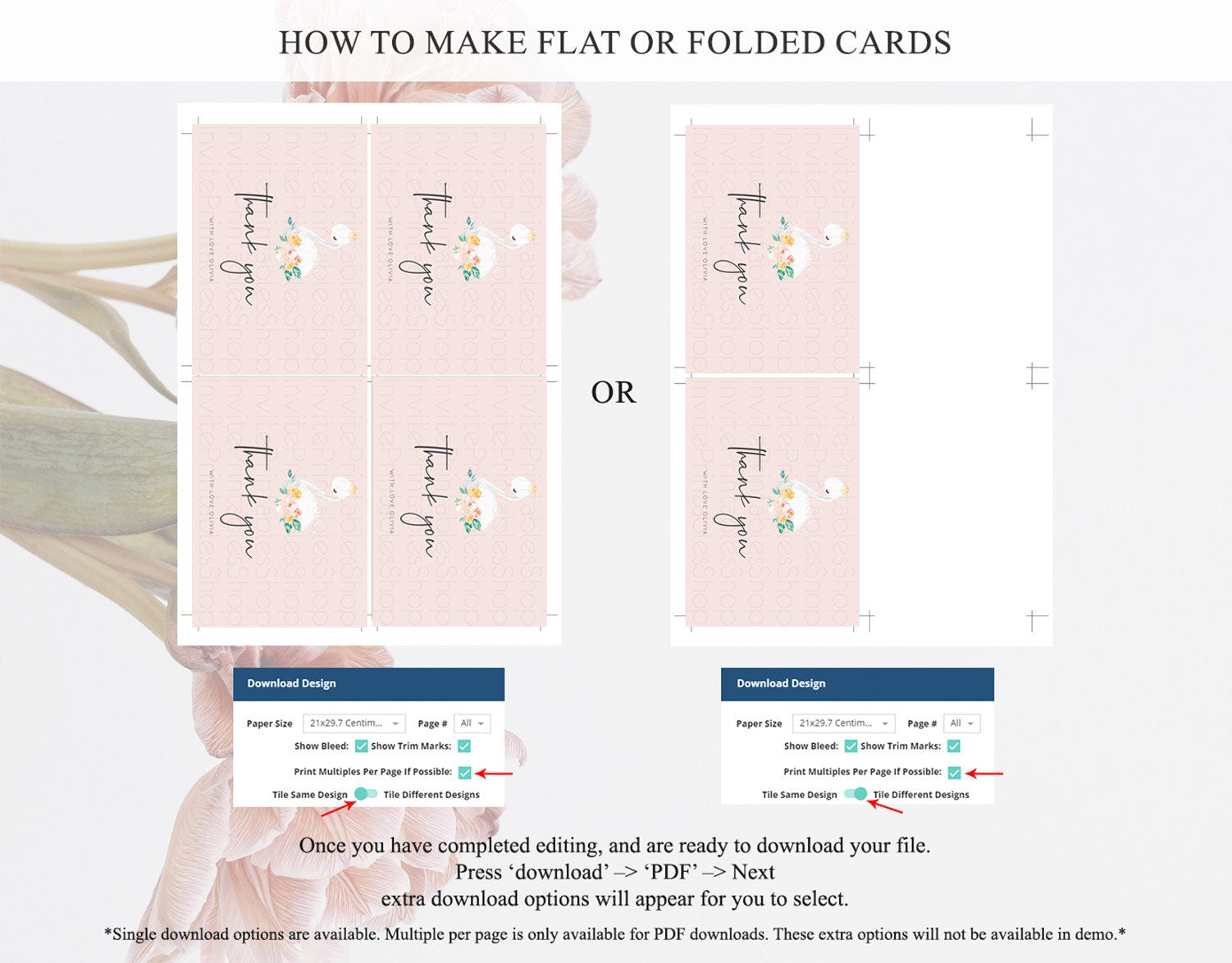 • Custom changes to artwork are not provided on existing templates.