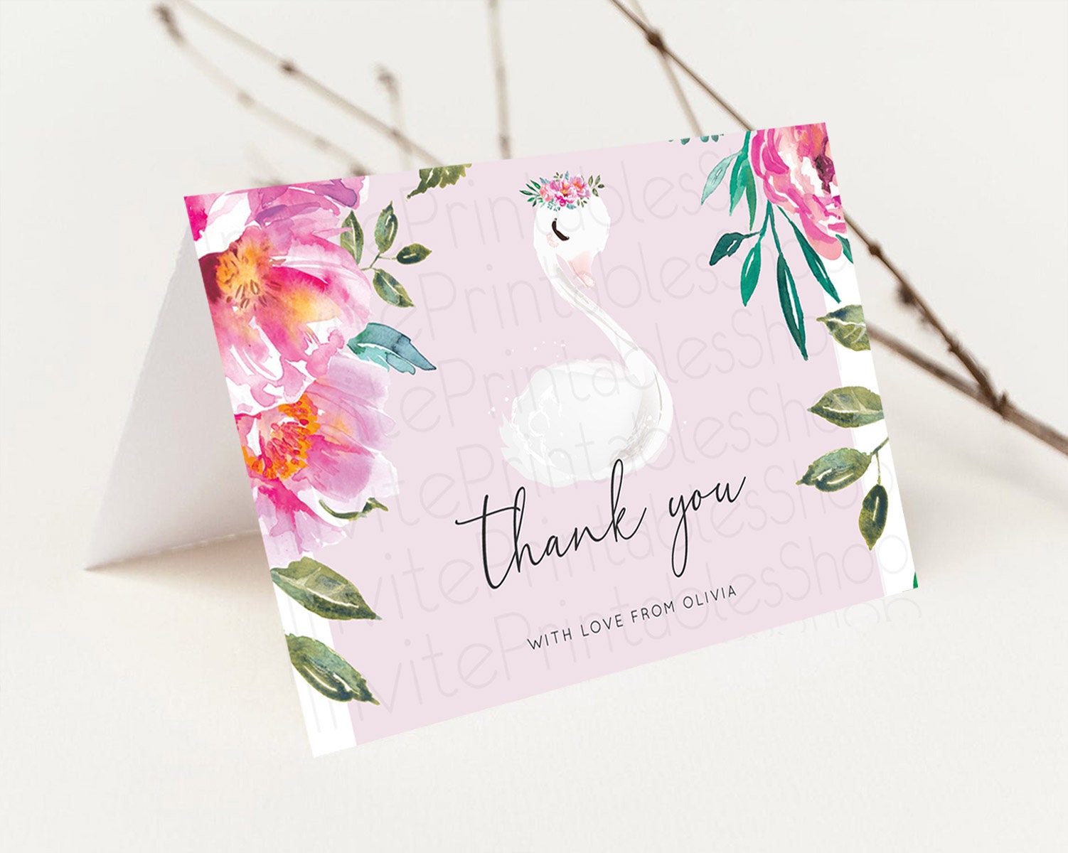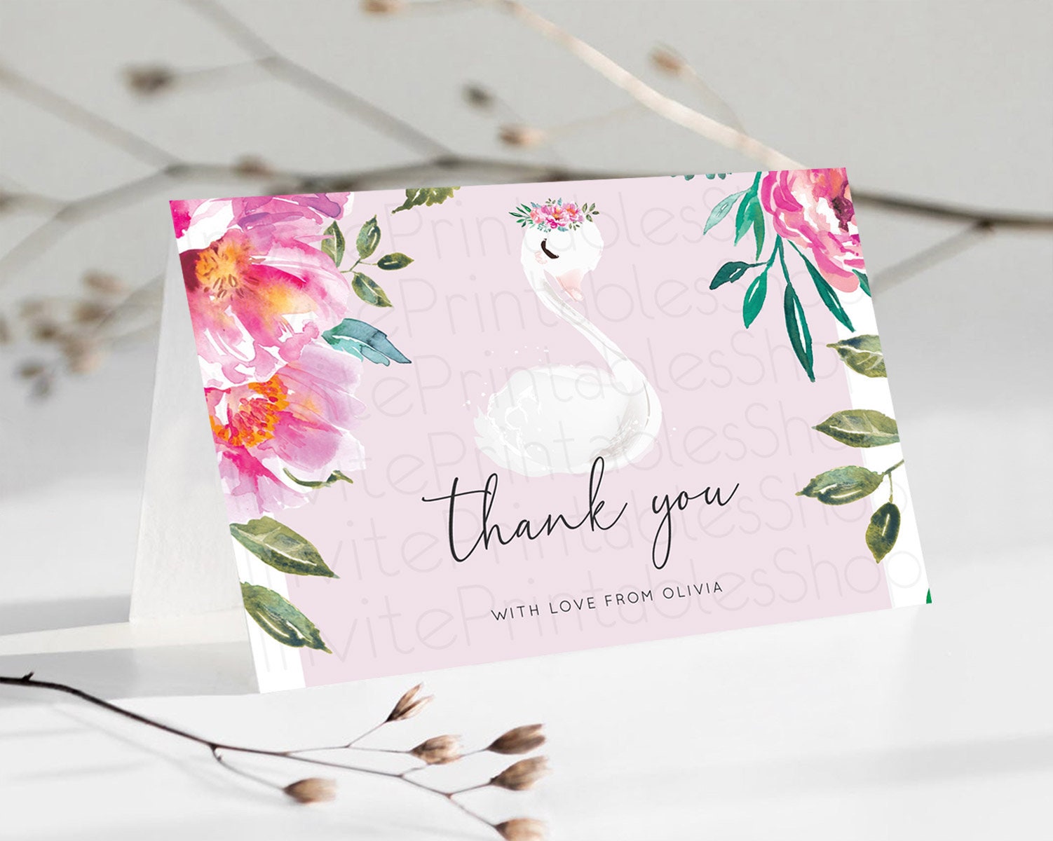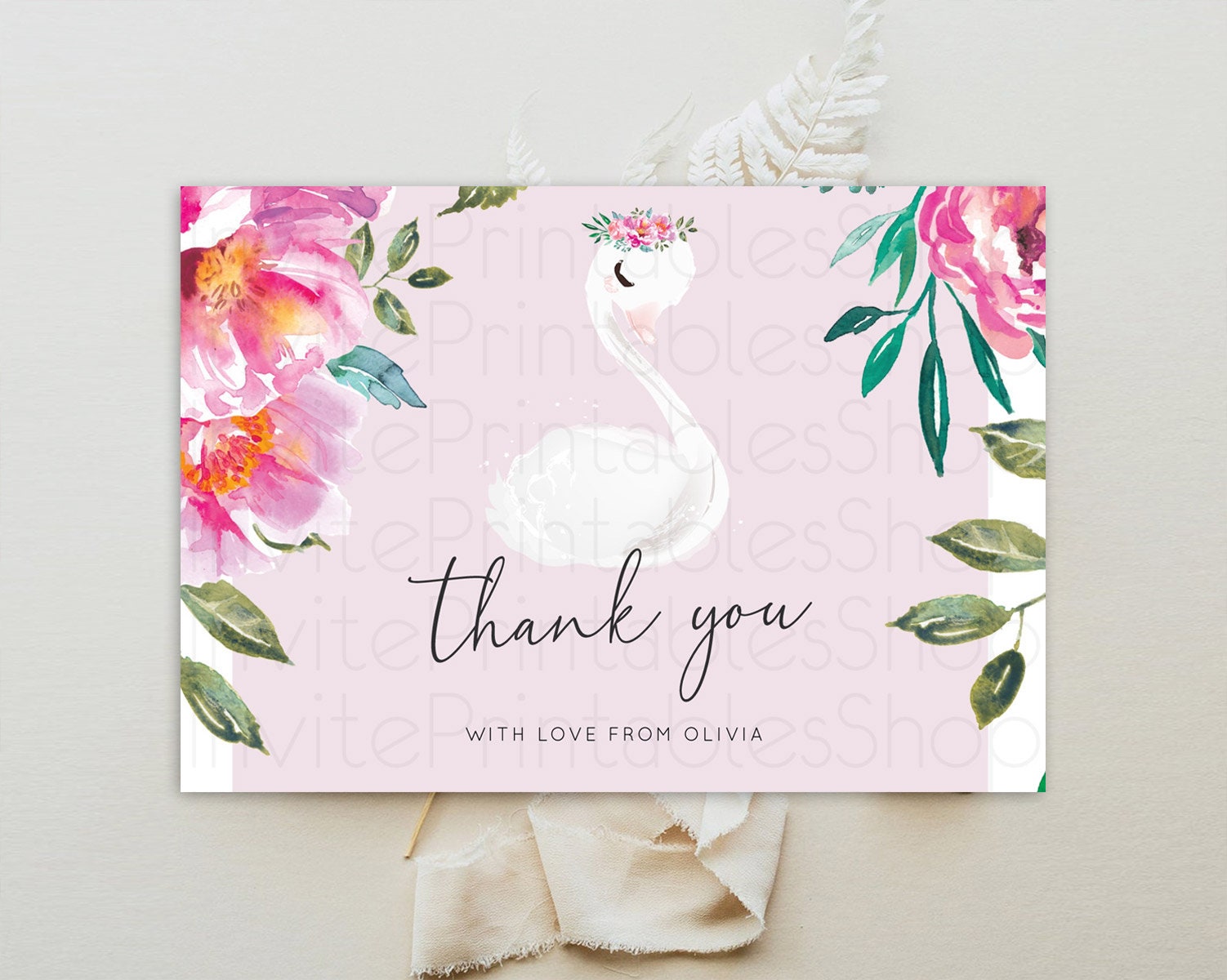 Swan Thank You Swan Princess Ballet Thank You Card Swan Lake Birthday Thank You Cards Secret Garden Pastel Floral Teacher Thank You D10757
