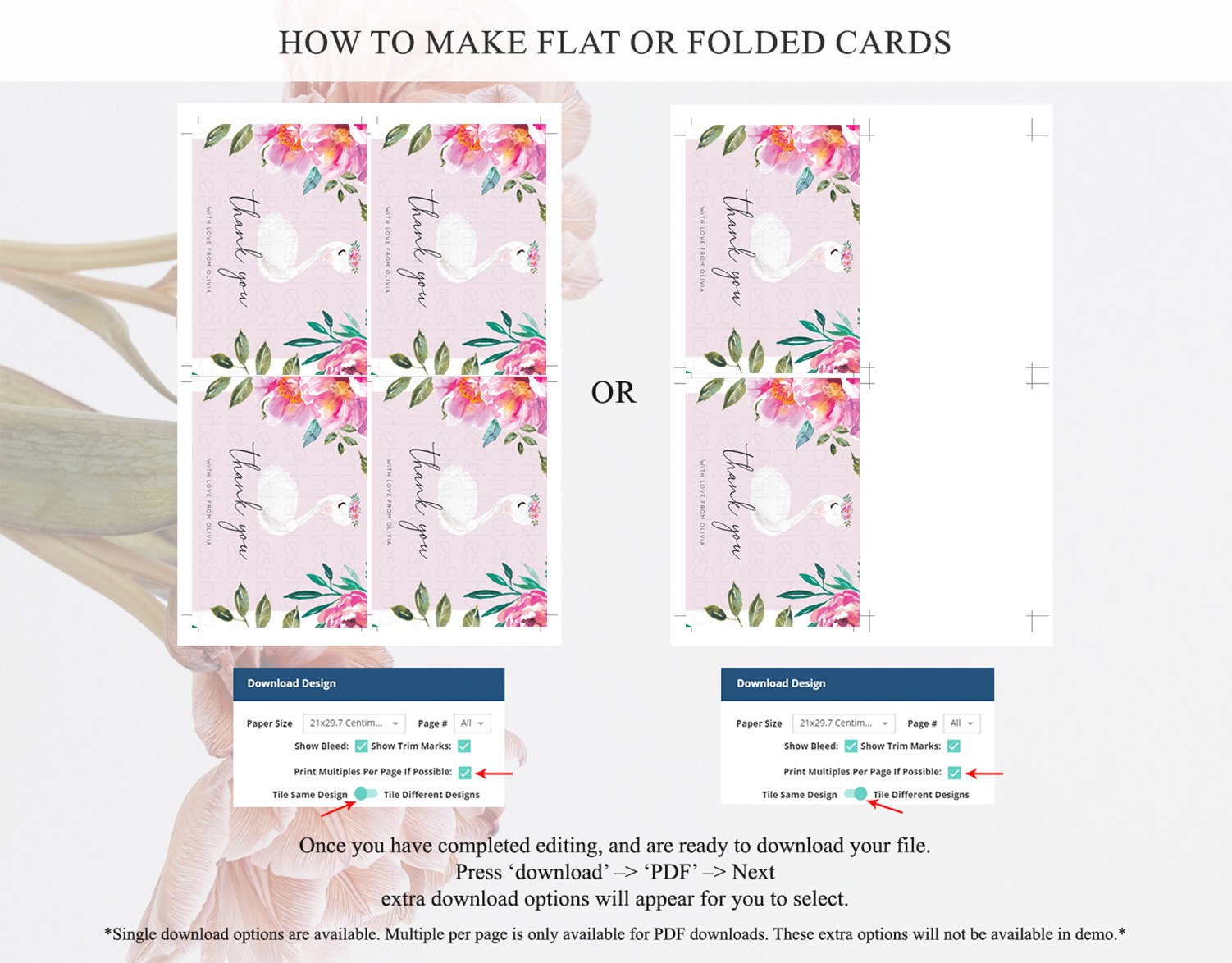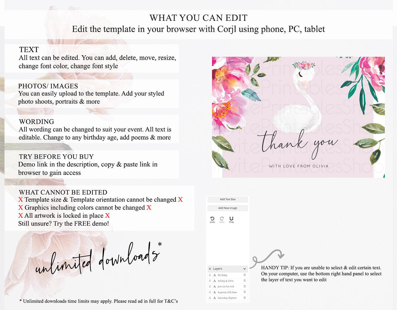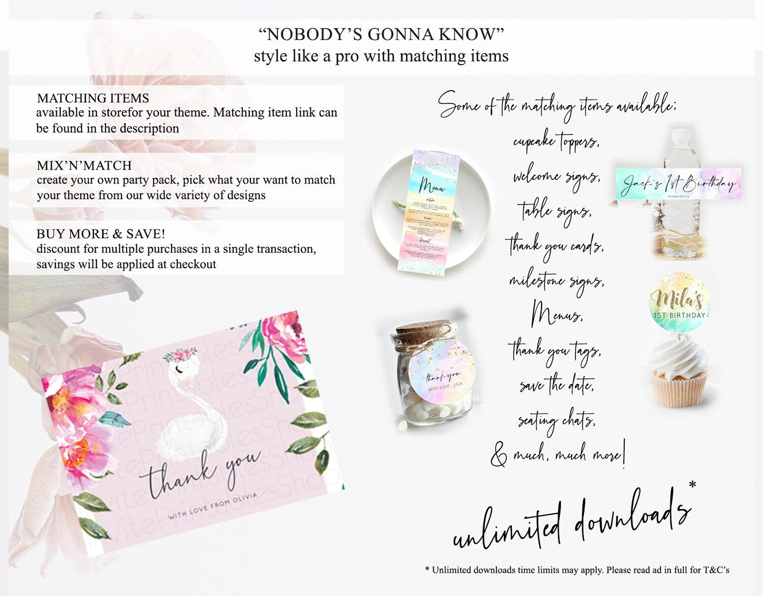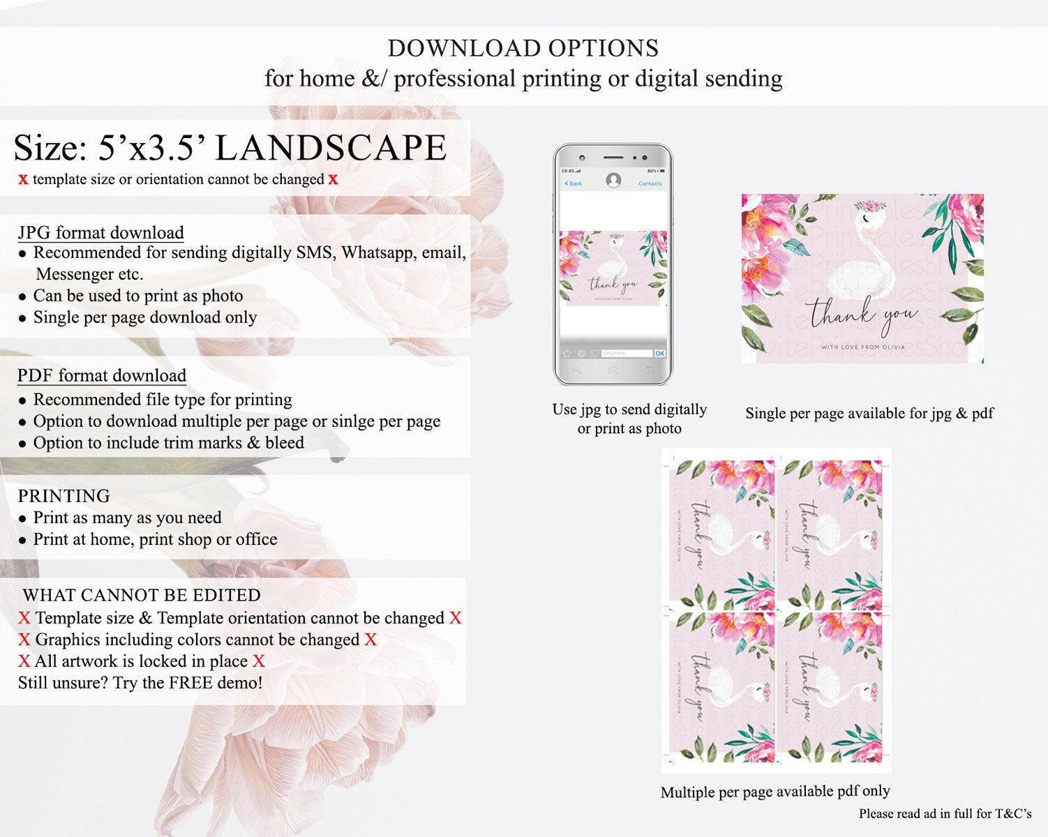 Swan Thank You Swan Princess Ballet Thank You Card Swan Lake Birthday Thank You Cards Secret Garden Pastel Floral Teacher Thank You D10757