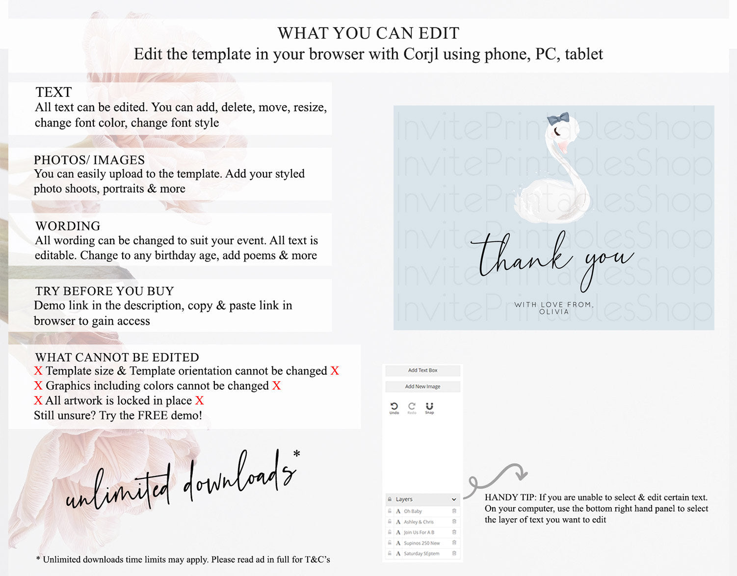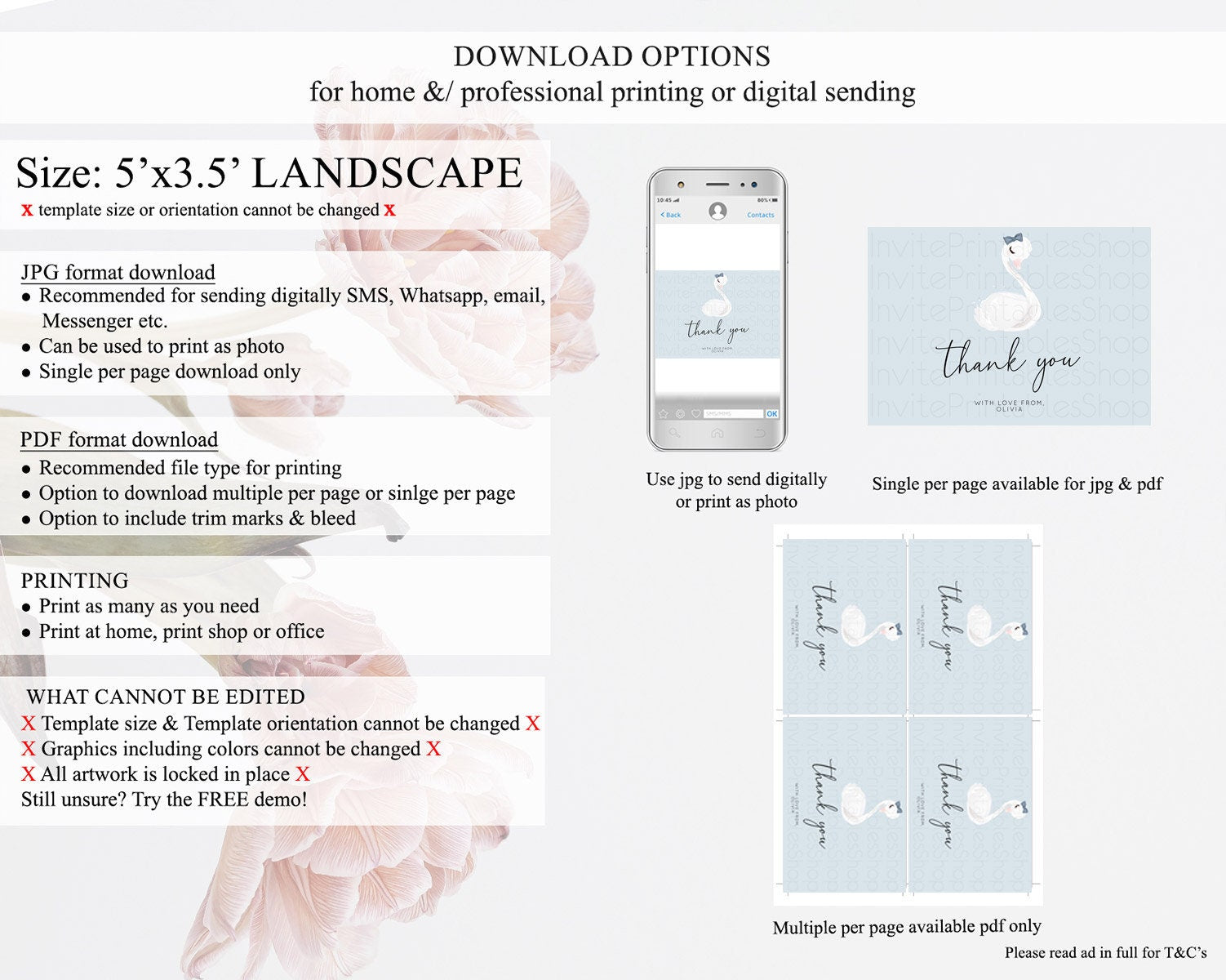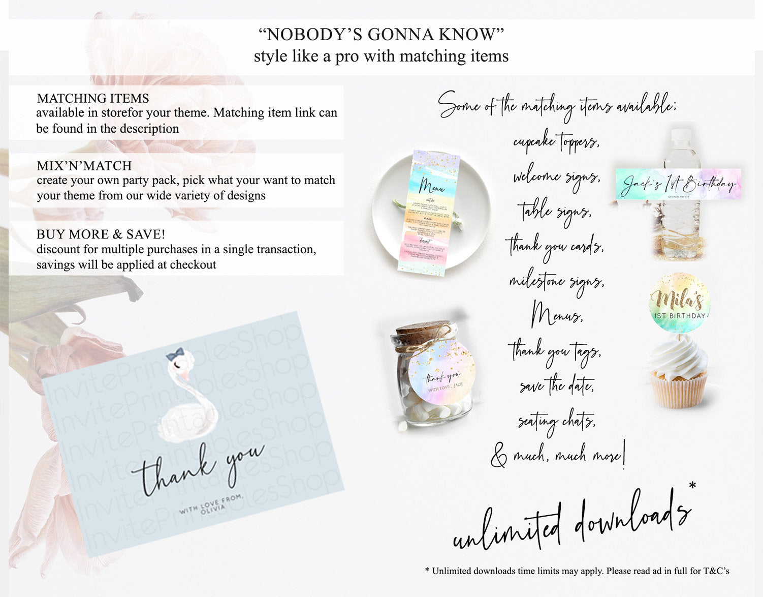 Swan Thank You Swan Princess Ballet Thank You Card Swan Lake Birthday Thank You Cards Secret Garden Pastel Floral Teacher Thank You D10760