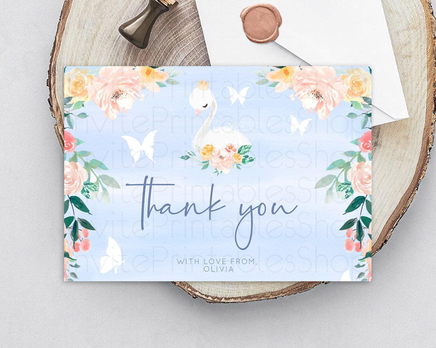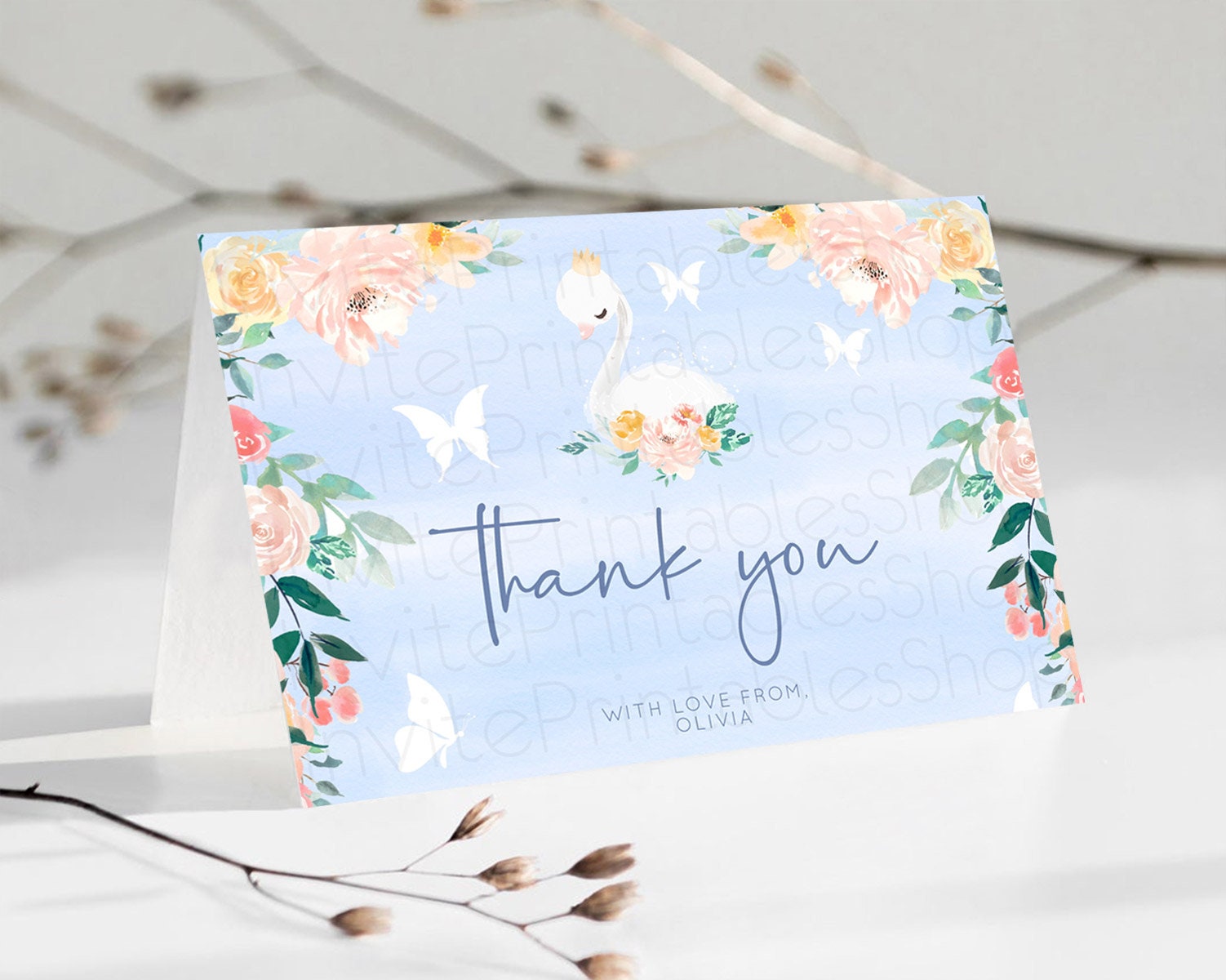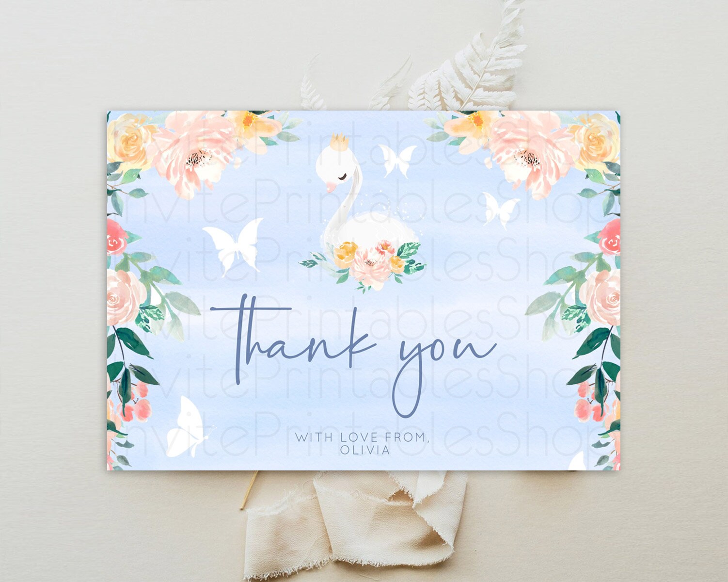 Swan Thank You Swan Princess Ballet Thank You Card Swan Lake Birthday Thank You Cards Secret Garden Pastel Floral Teacher Thank You D10885