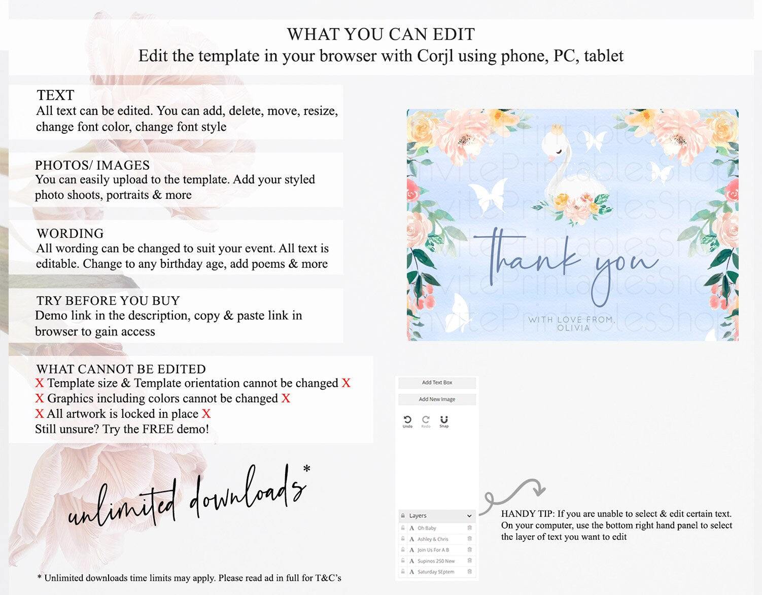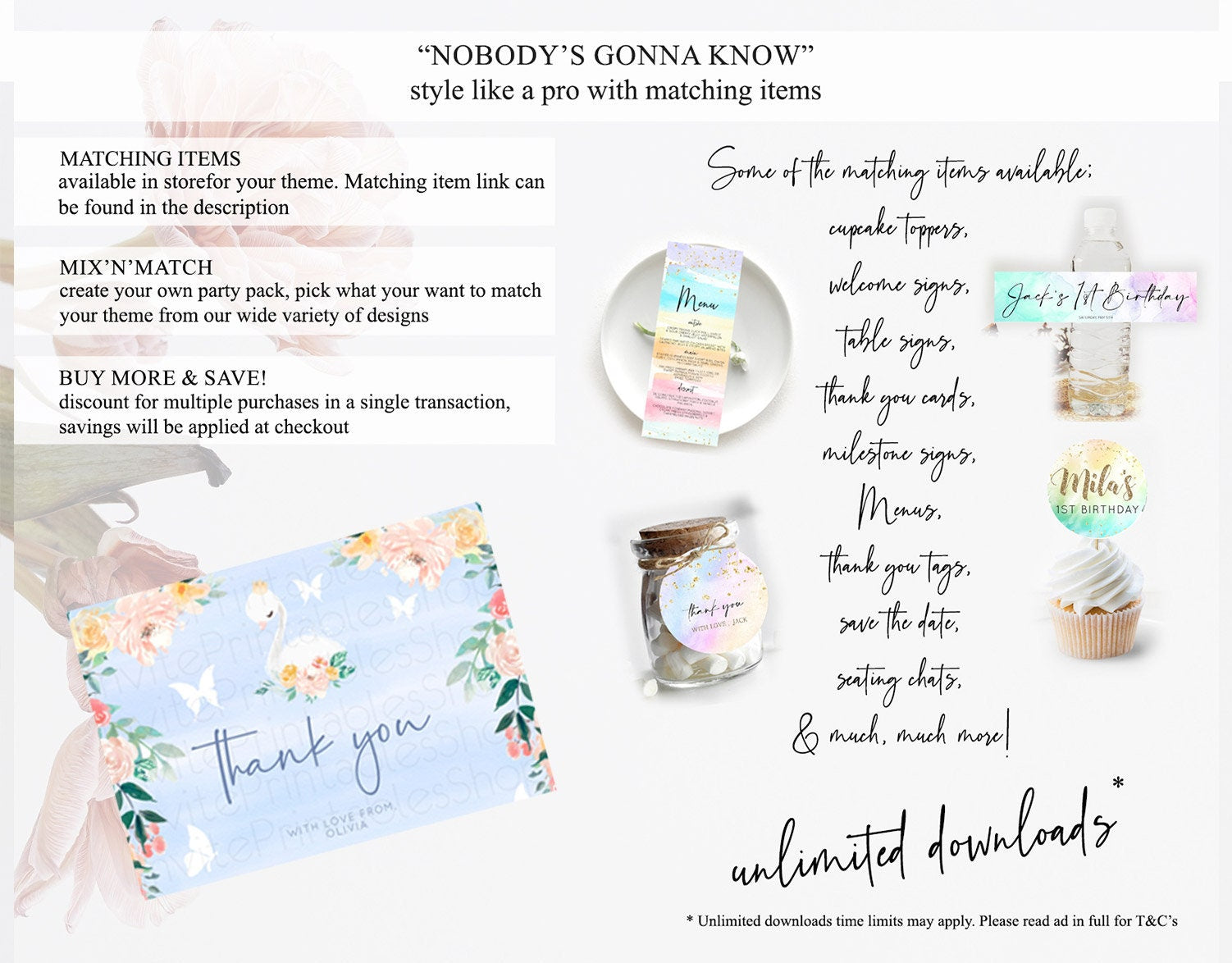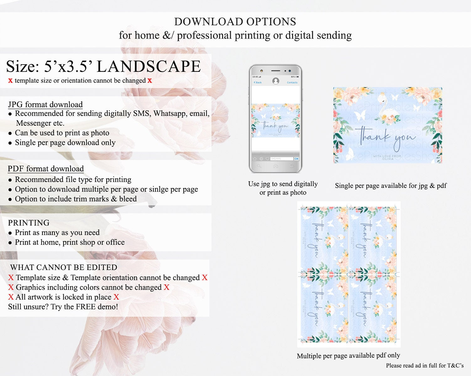 Swan Thank You Swan Princess Ballet Thank You Card Swan Lake Birthday Thank You Cards Secret Garden Pastel Floral Teacher Thank You D10885