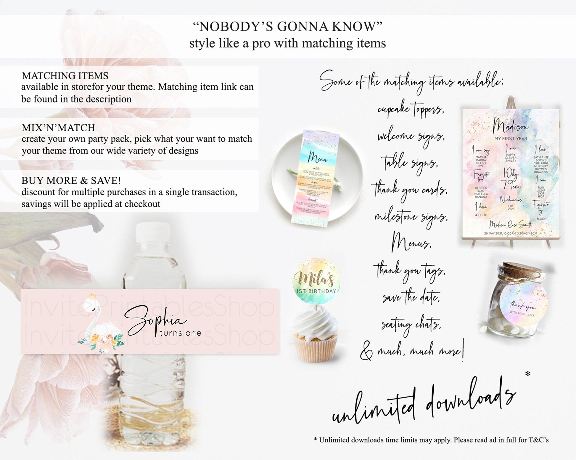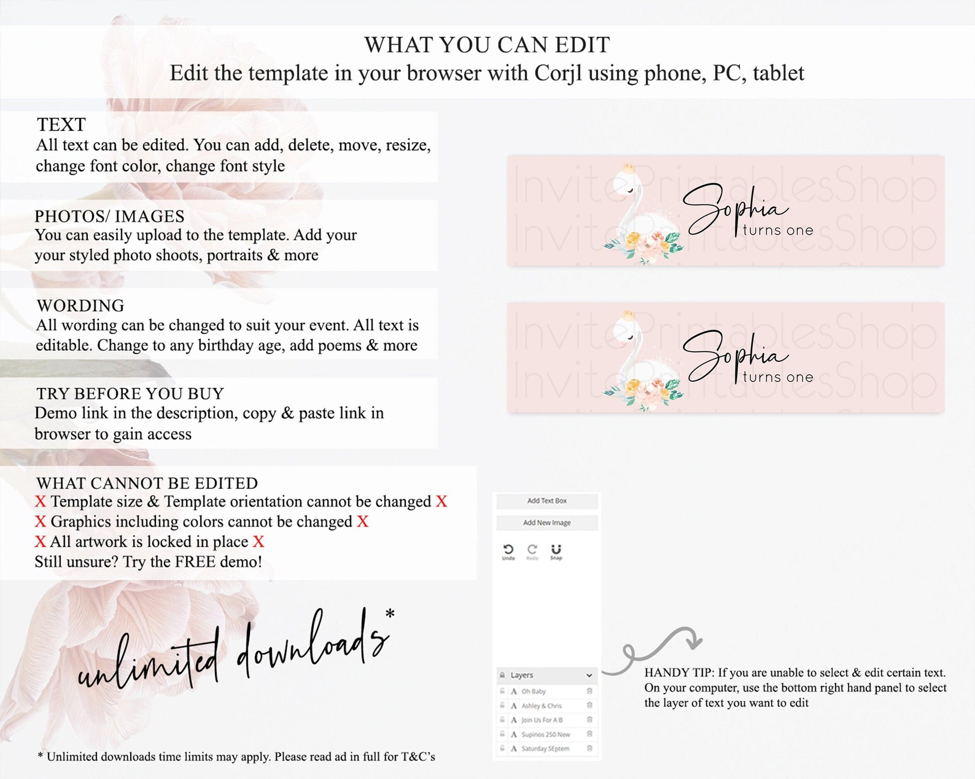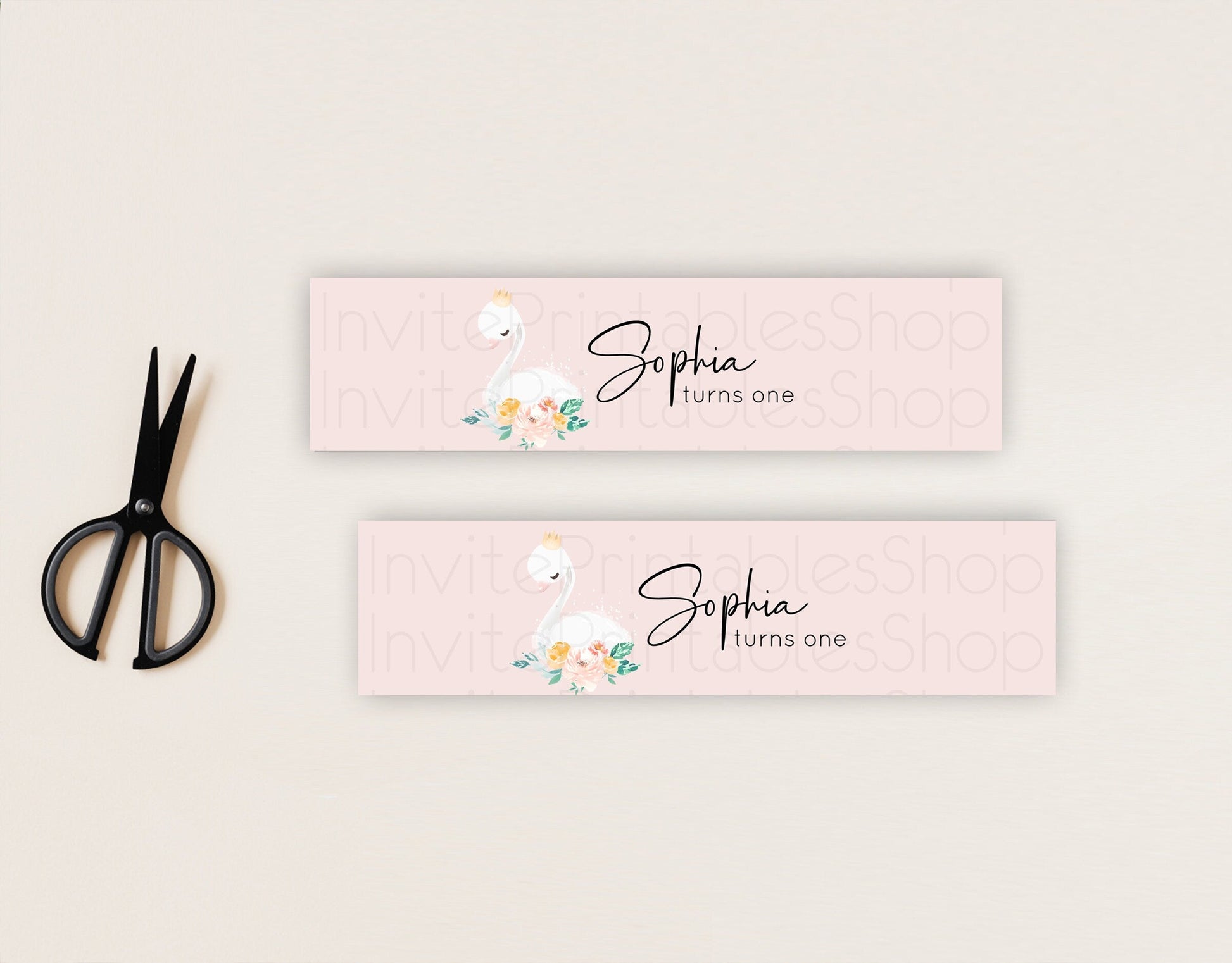 Swan Water Label Template Swan Princess Ballet Party Decor Enchanted Secret Garden Pastel Floral Birthday Baptism Baby Shower D10388