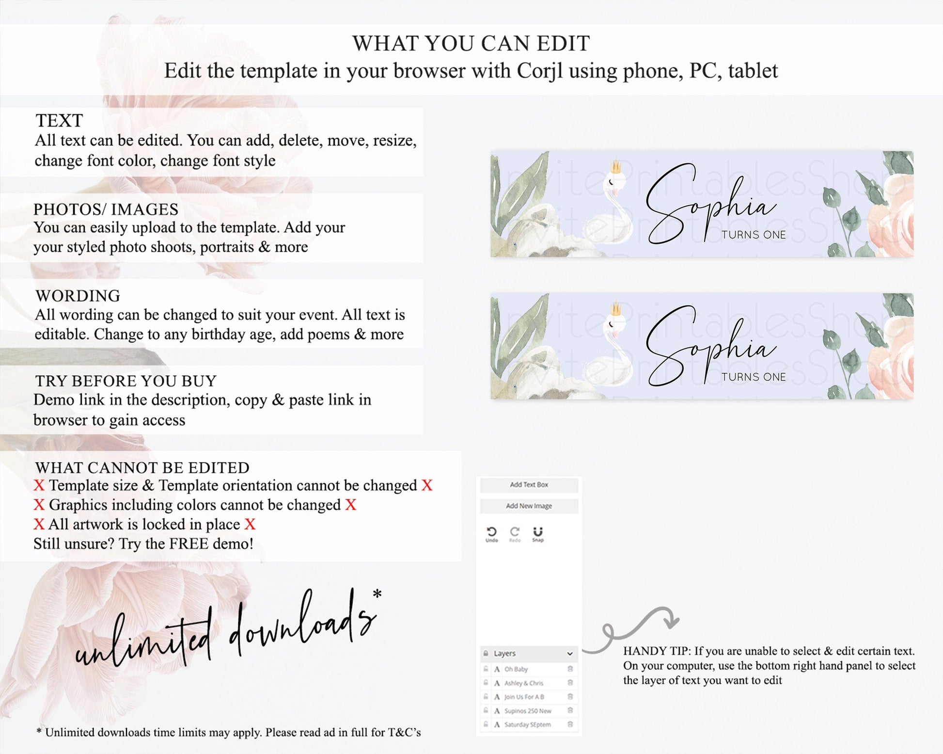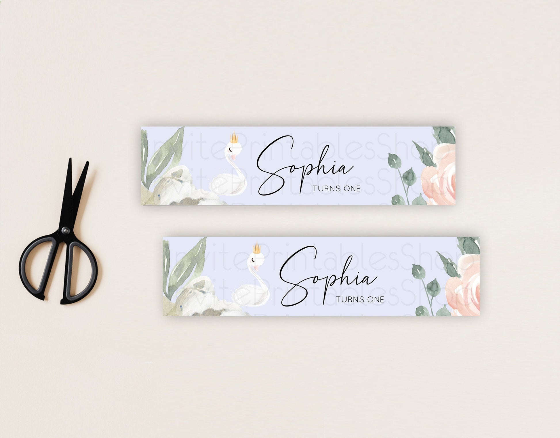 Swan Water Label Template Swan Princess Ballet Party Decor Enchanted Secret Garden Pastel Floral Birthday Baptism Baby Shower D10756