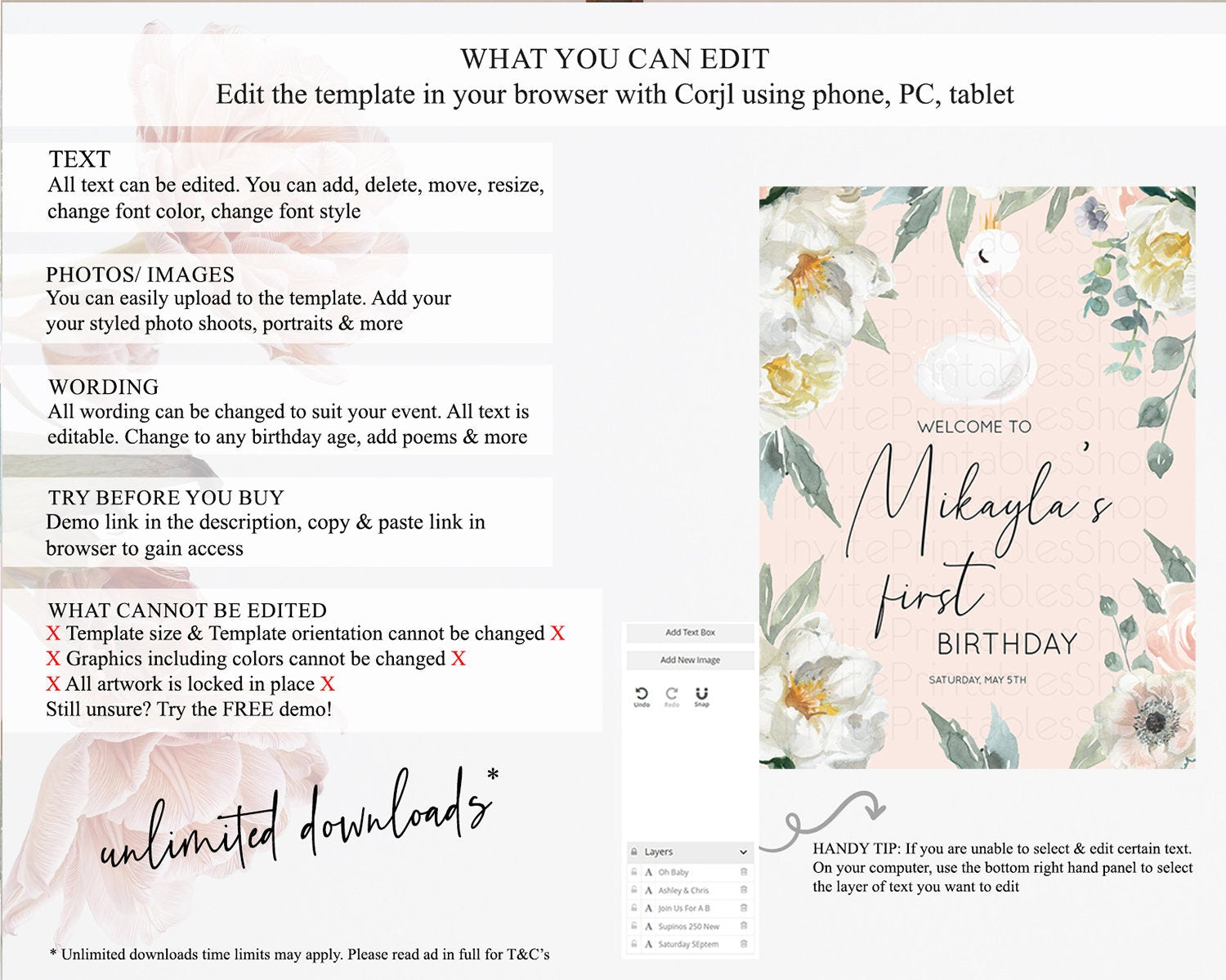 • After purchase, Corjl emails your editing link. Allow up to 15 minutes for delivery.
