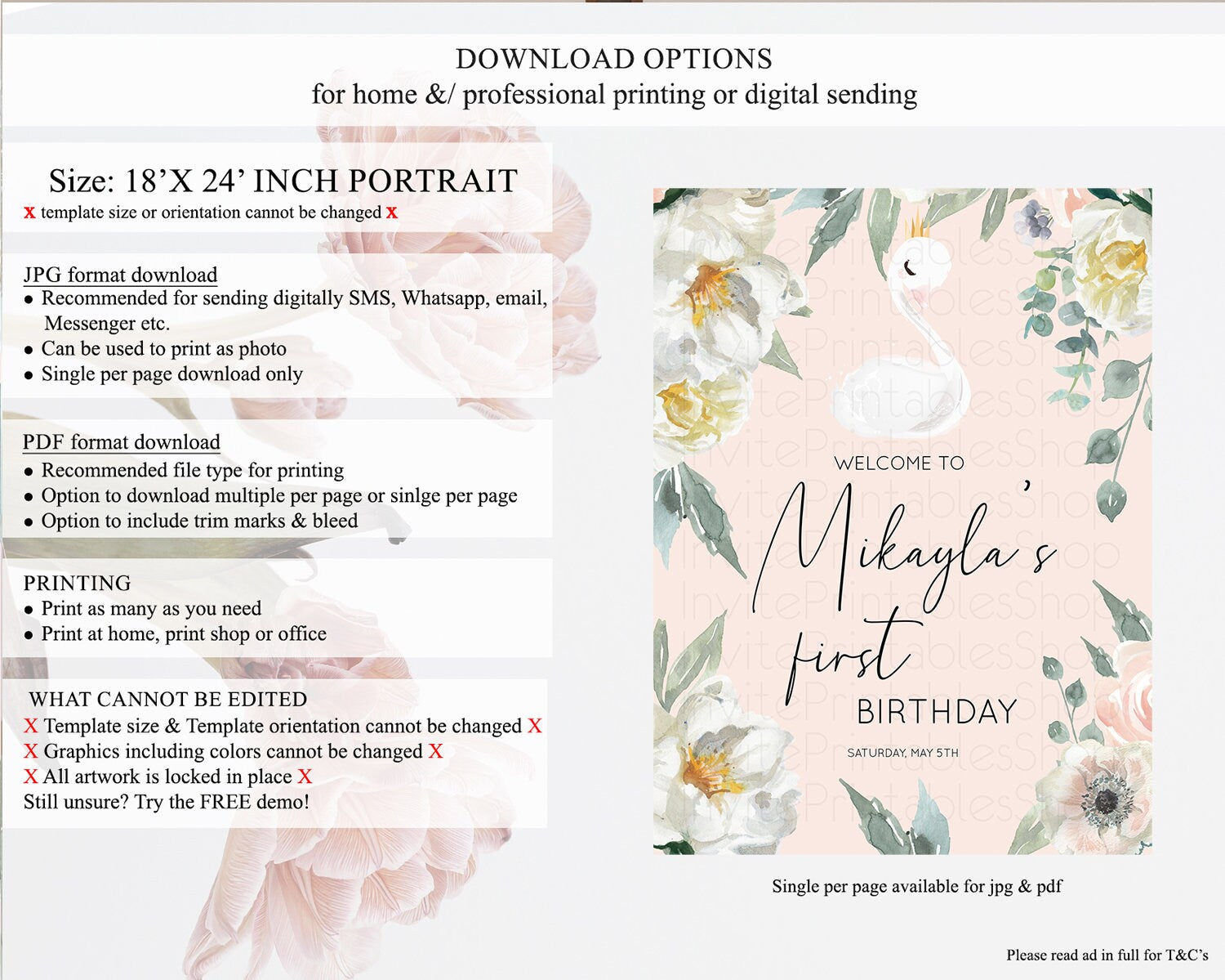 • Template size & orientation cannot be changed. Please use the demo link to confirm this product suits your needs.