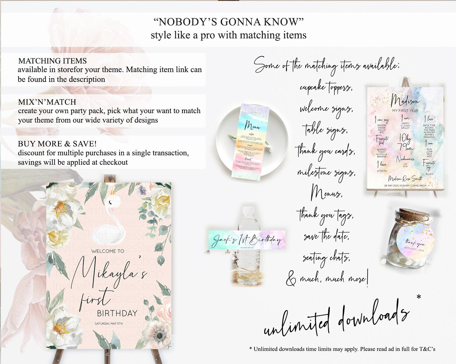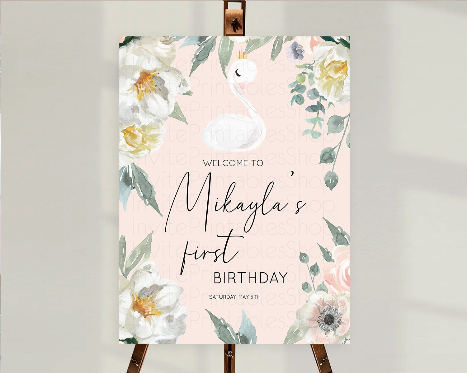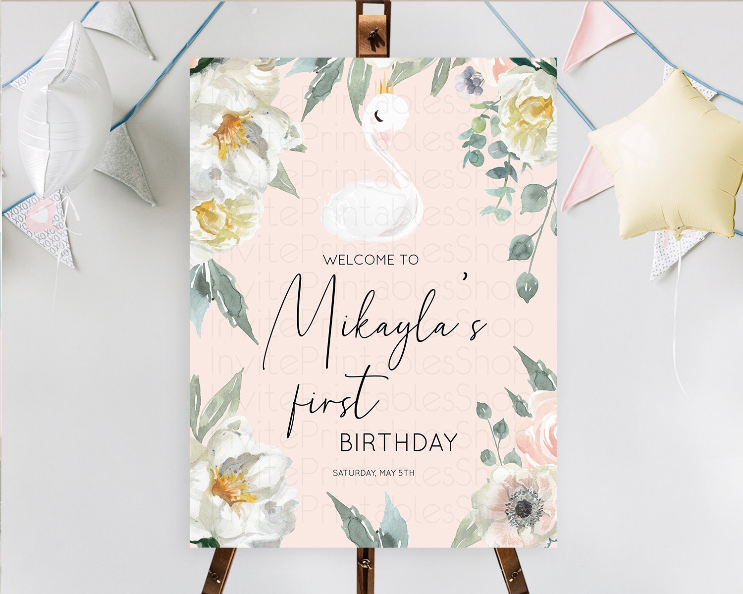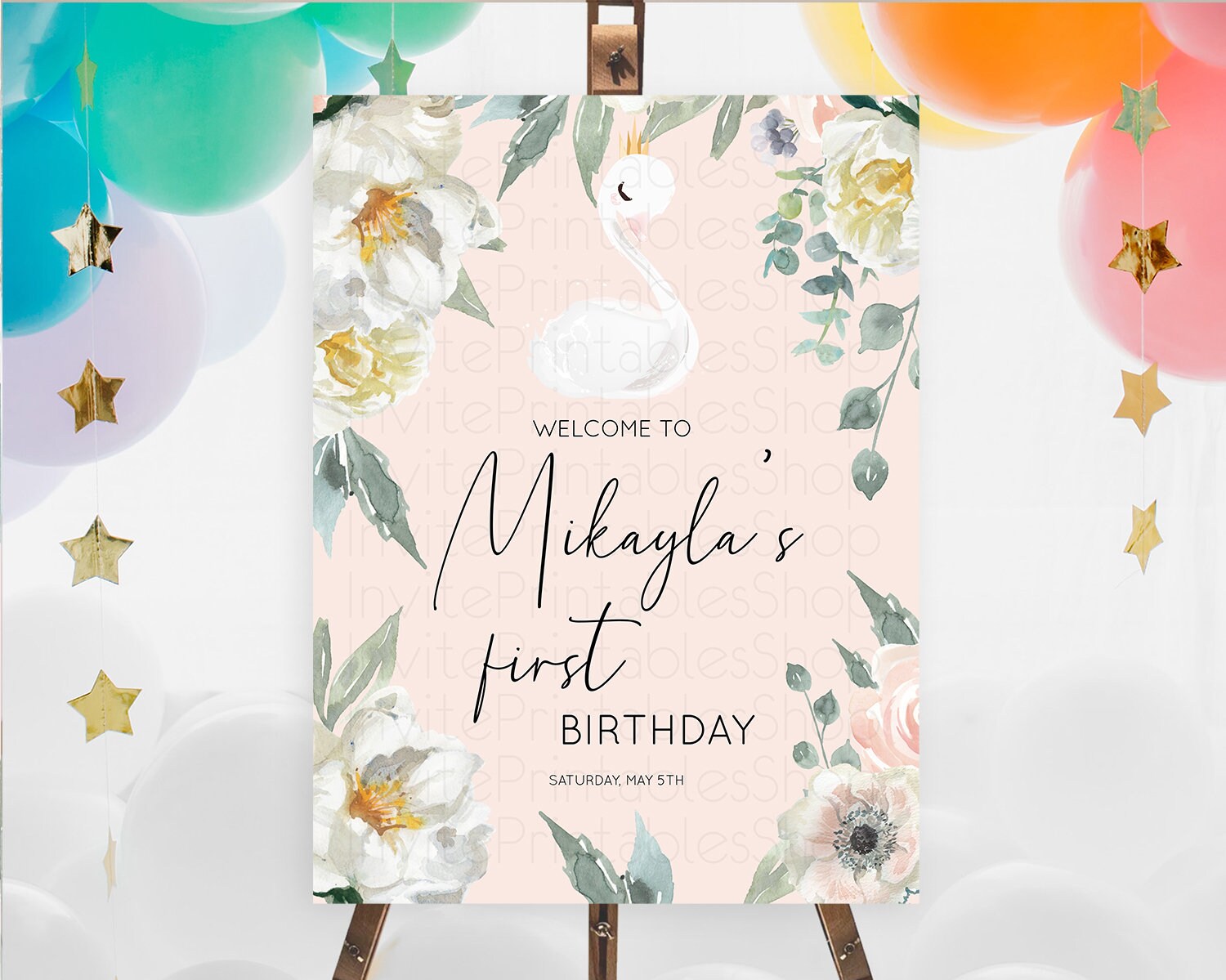 Swan Welcome Board Swan Princess Ballet Welcome Sign Enchanted Swan Lake Secret Garden Pastel Floral First Birthday Welcome Sign D10755