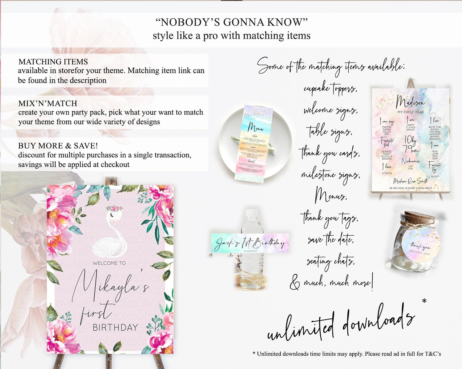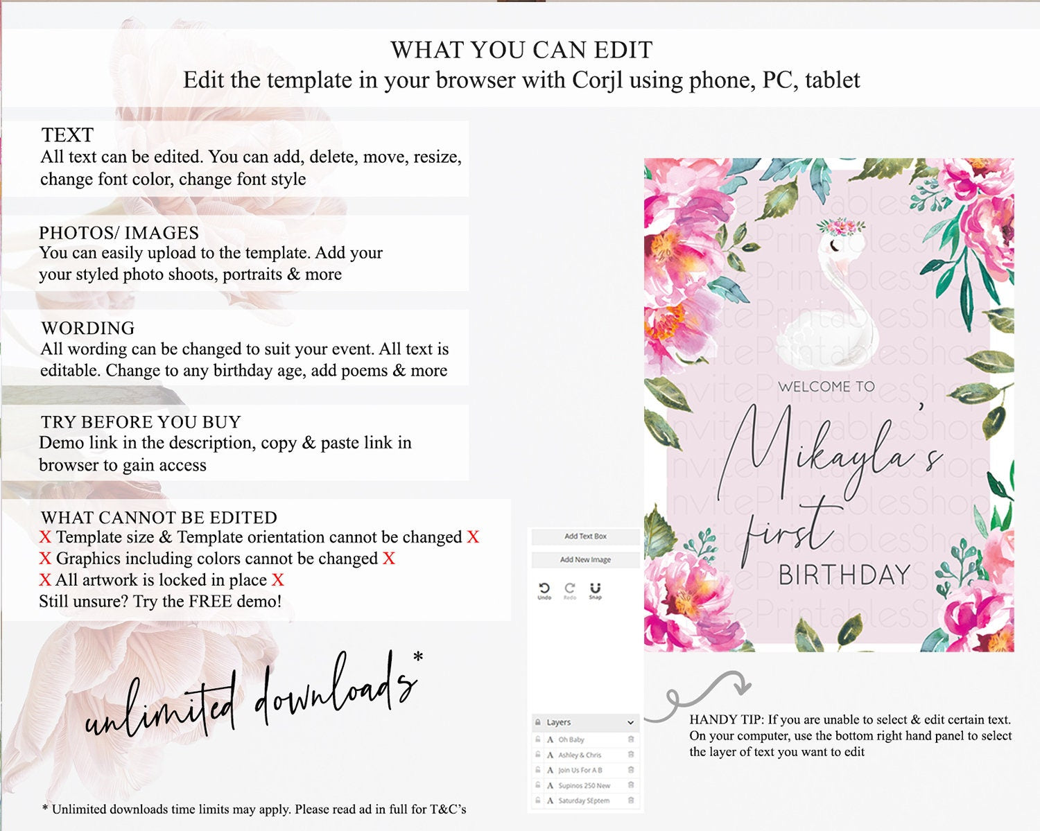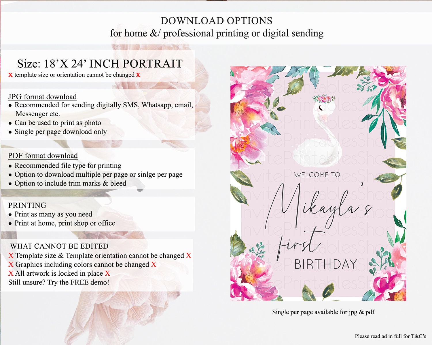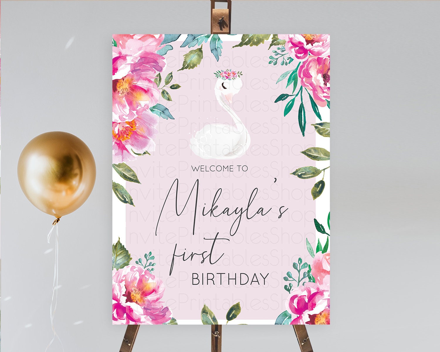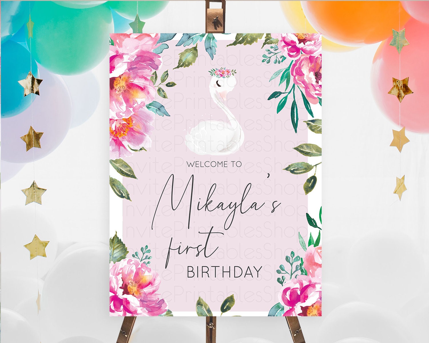 Swan Welcome Board Swan Princess Ballet Welcome Sign Enchanted Swan Lake Secret Garden Pastel Floral First Birthday Welcome Sign D10757