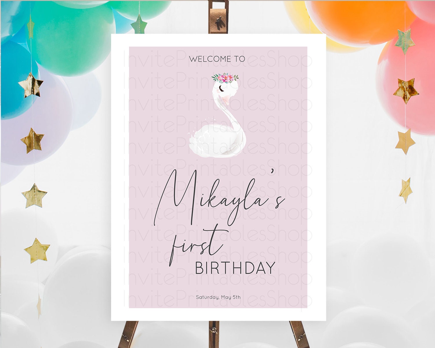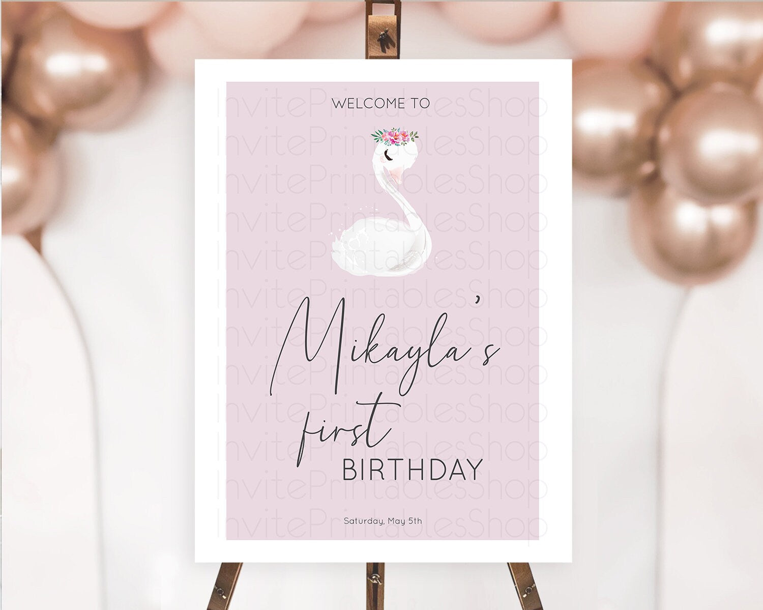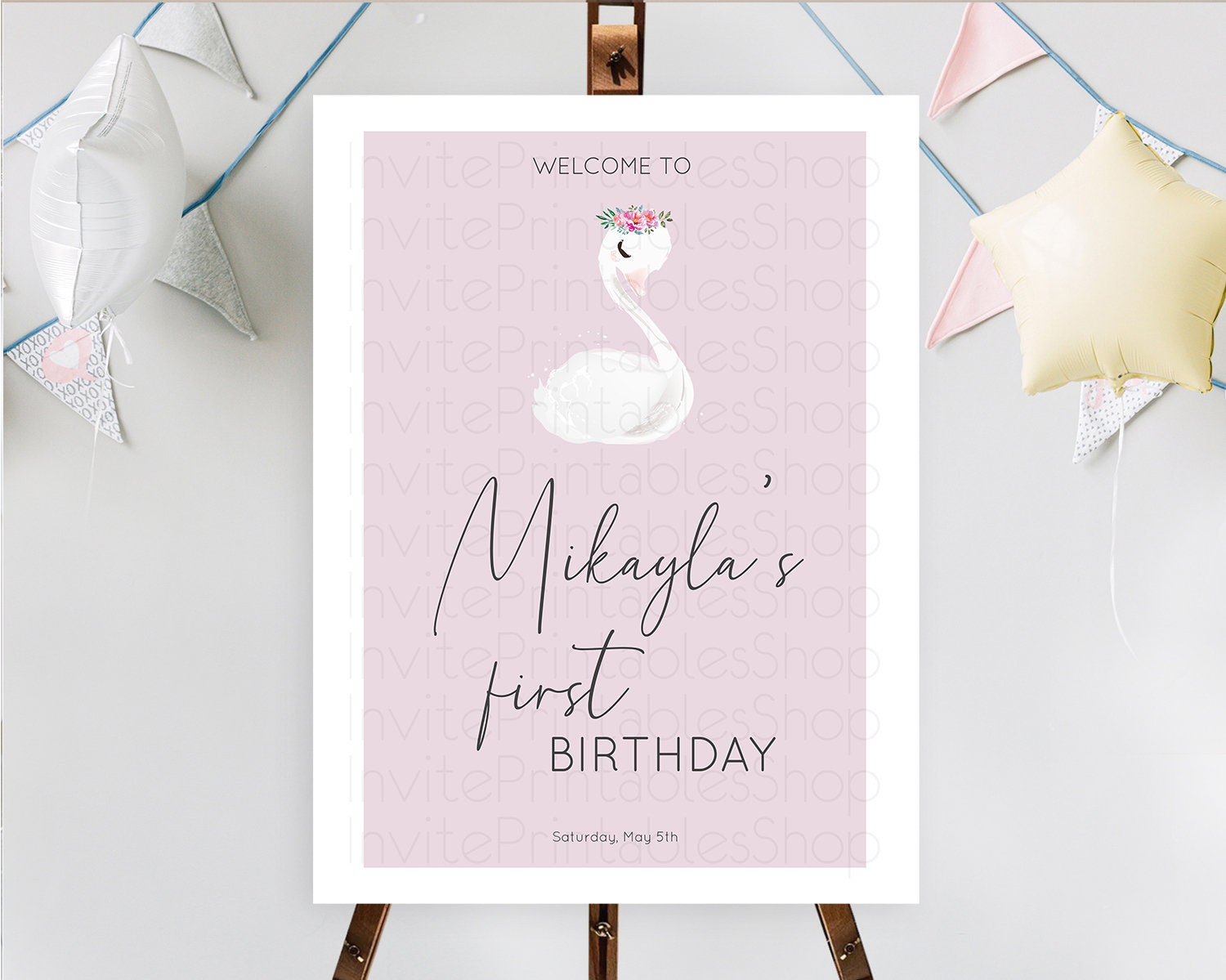 Swan Welcome Board Swan Princess Ballet Welcome Sign Enchanted Swan Lake Secret Garden Pastel Floral First Birthday Welcome Sign D10758