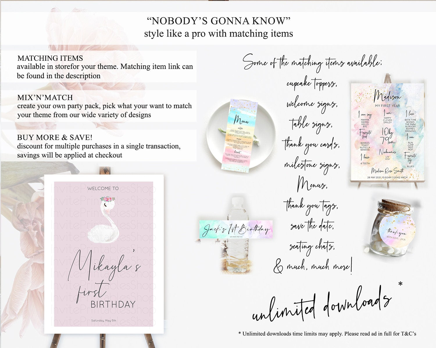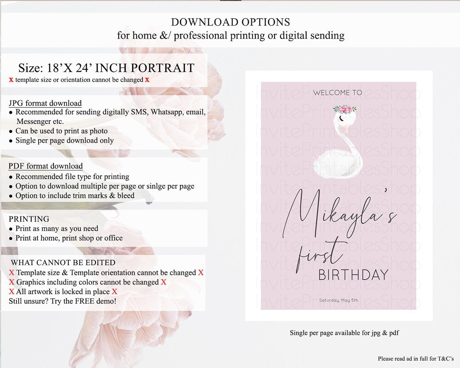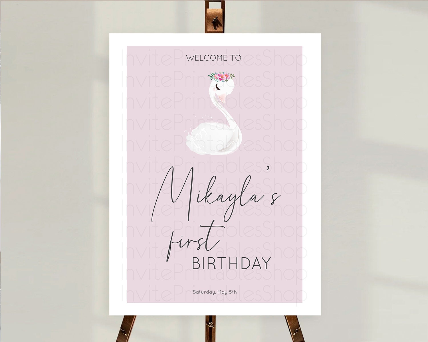 Swan Welcome Board Swan Princess Ballet Welcome Sign Enchanted Swan Lake Secret Garden Pastel Floral First Birthday Welcome Sign D10758