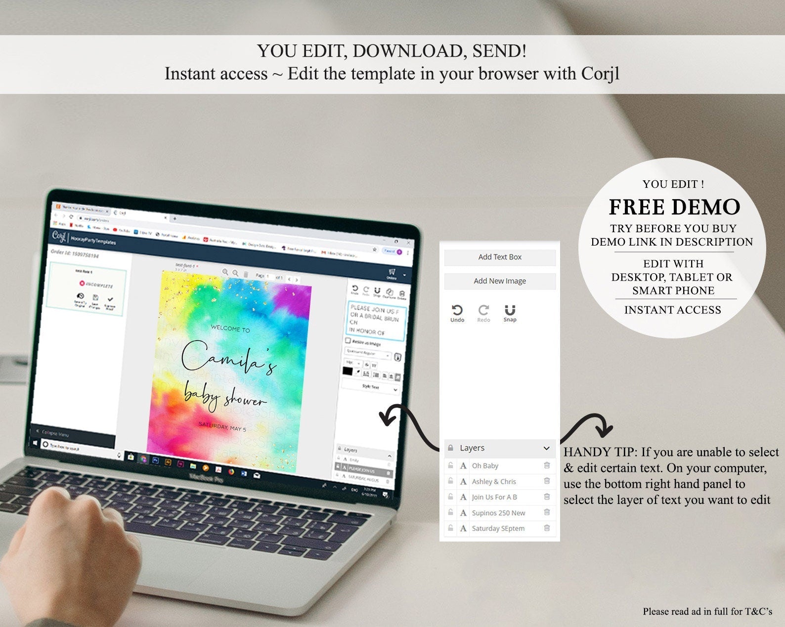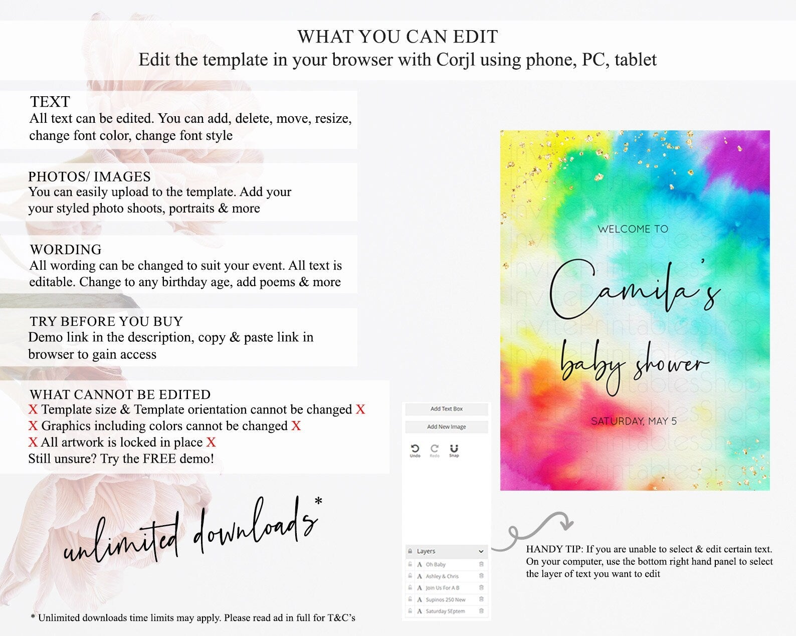 • After purchase, Corjl emails your editing link. Allow up to 15 minutes for delivery.