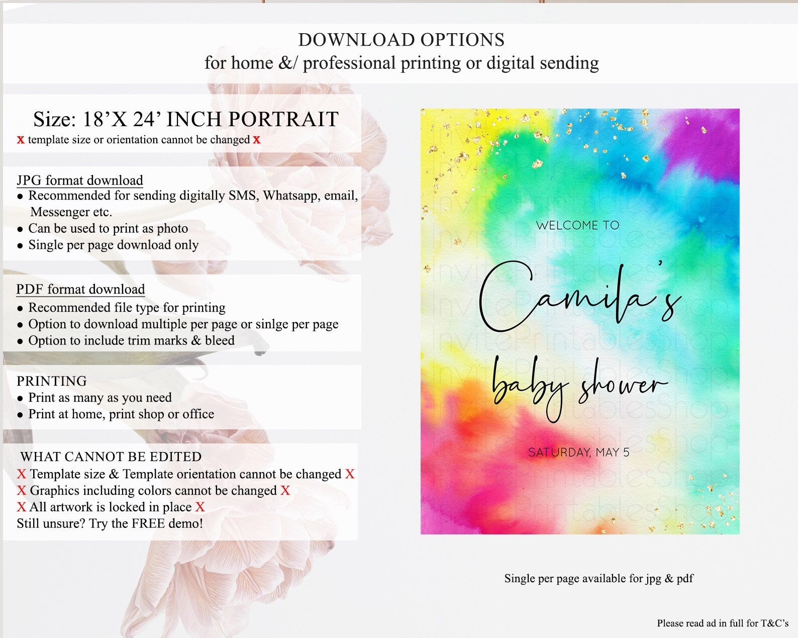 • Template size & orientation cannot be changed. Please use the demo link to confirm this product suits your needs.
