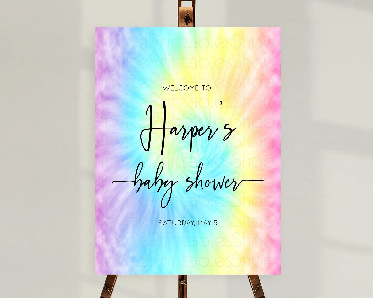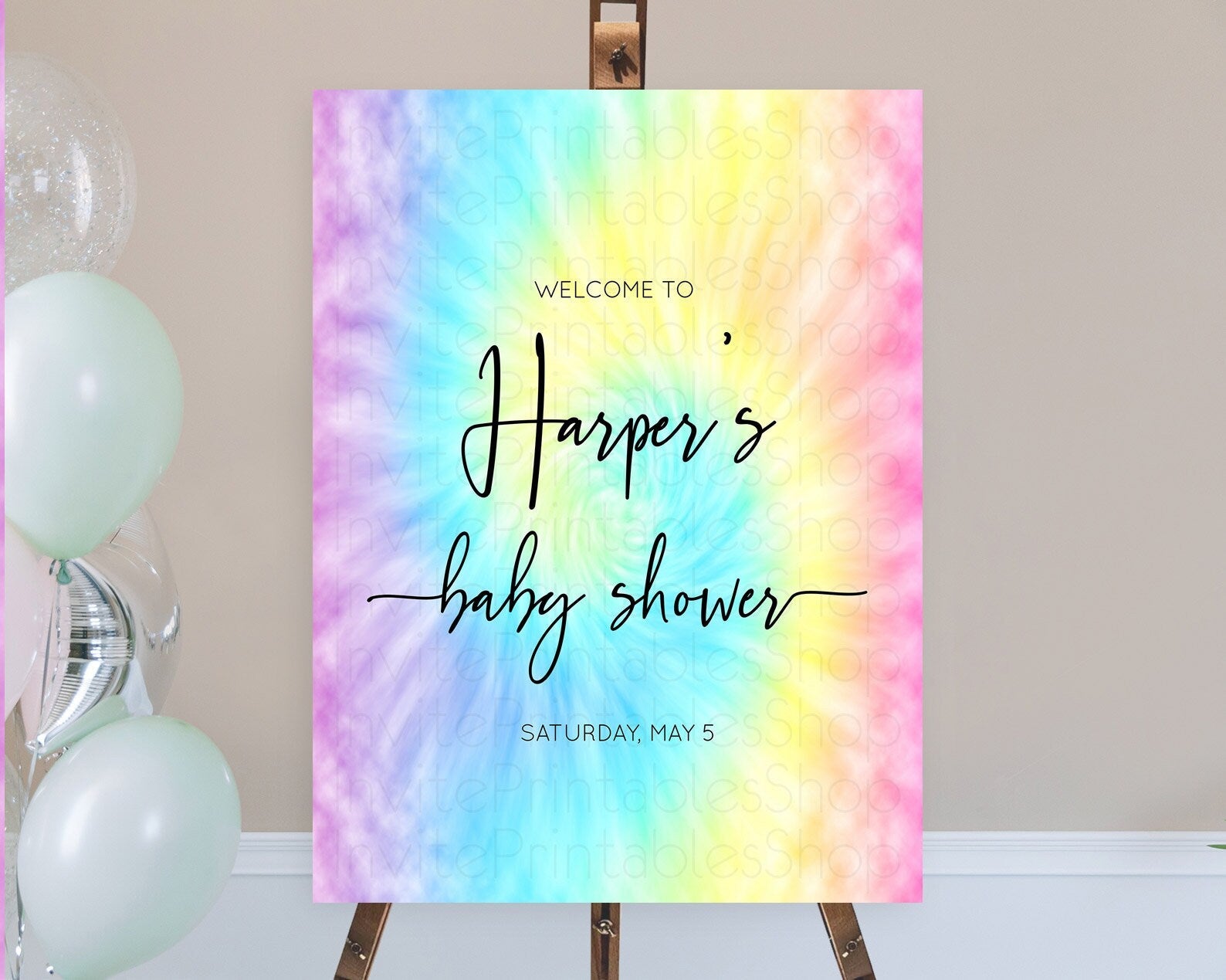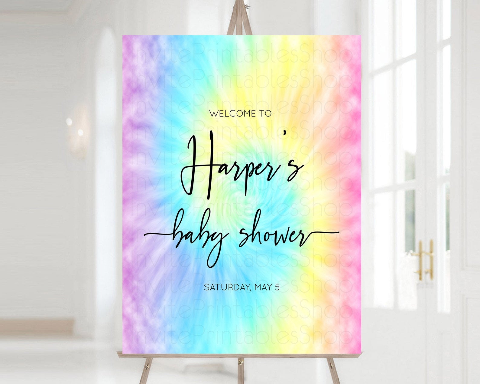 Tie Dye Baby Shower Welcome Board Rainbow Tie Dye Welcome Sign Pastel Welcome Poster Colorful Pastel Welcome Rainbow Tie Dye Sign D10578