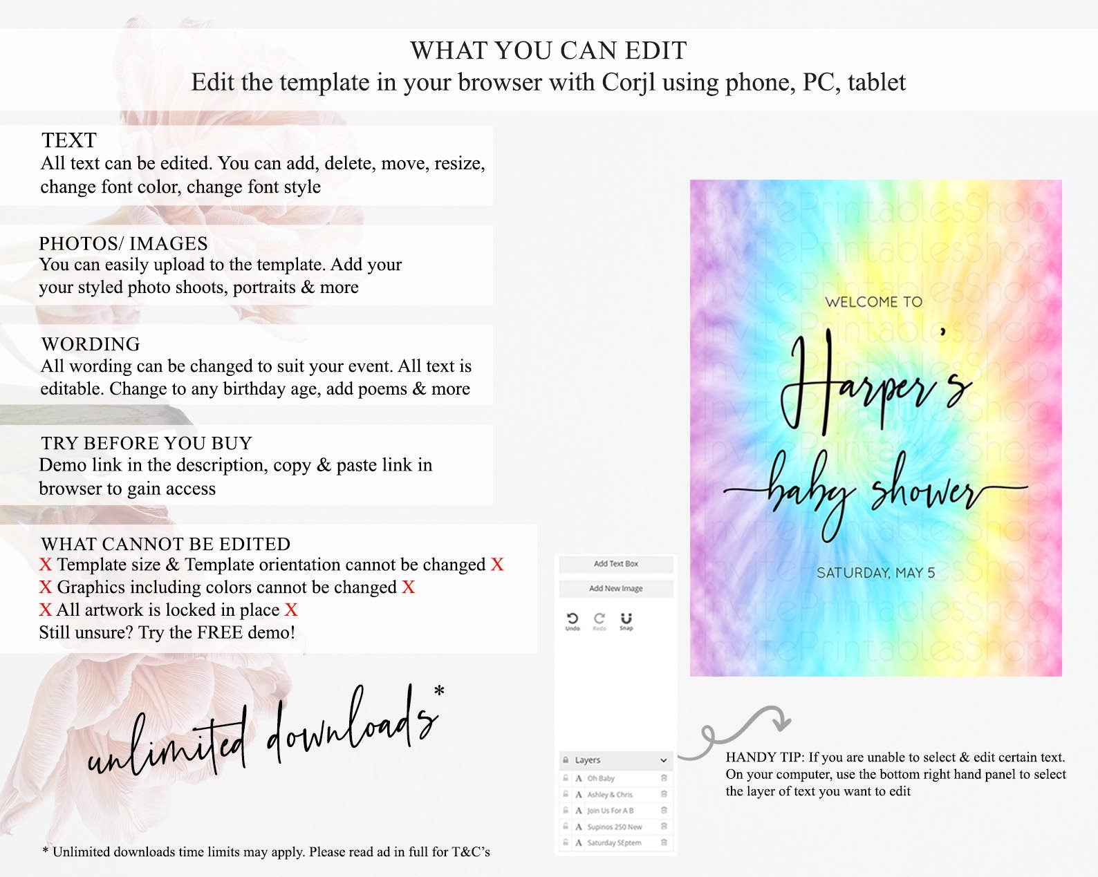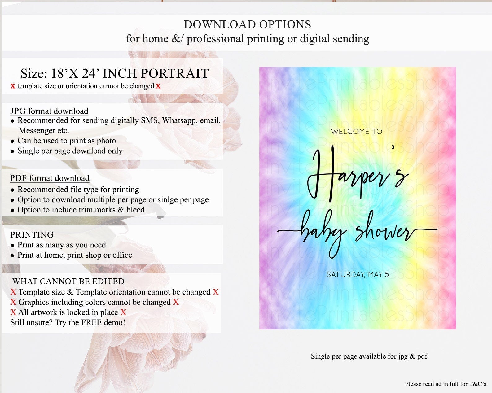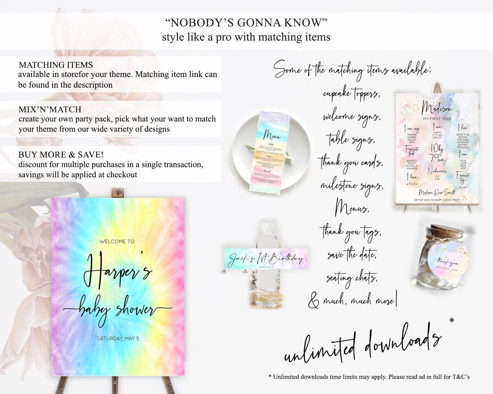 Tie Dye Baby Shower Welcome Board Rainbow Tie Dye Welcome Sign Pastel Welcome Poster Colorful Pastel Welcome Rainbow Tie Dye Sign D10578