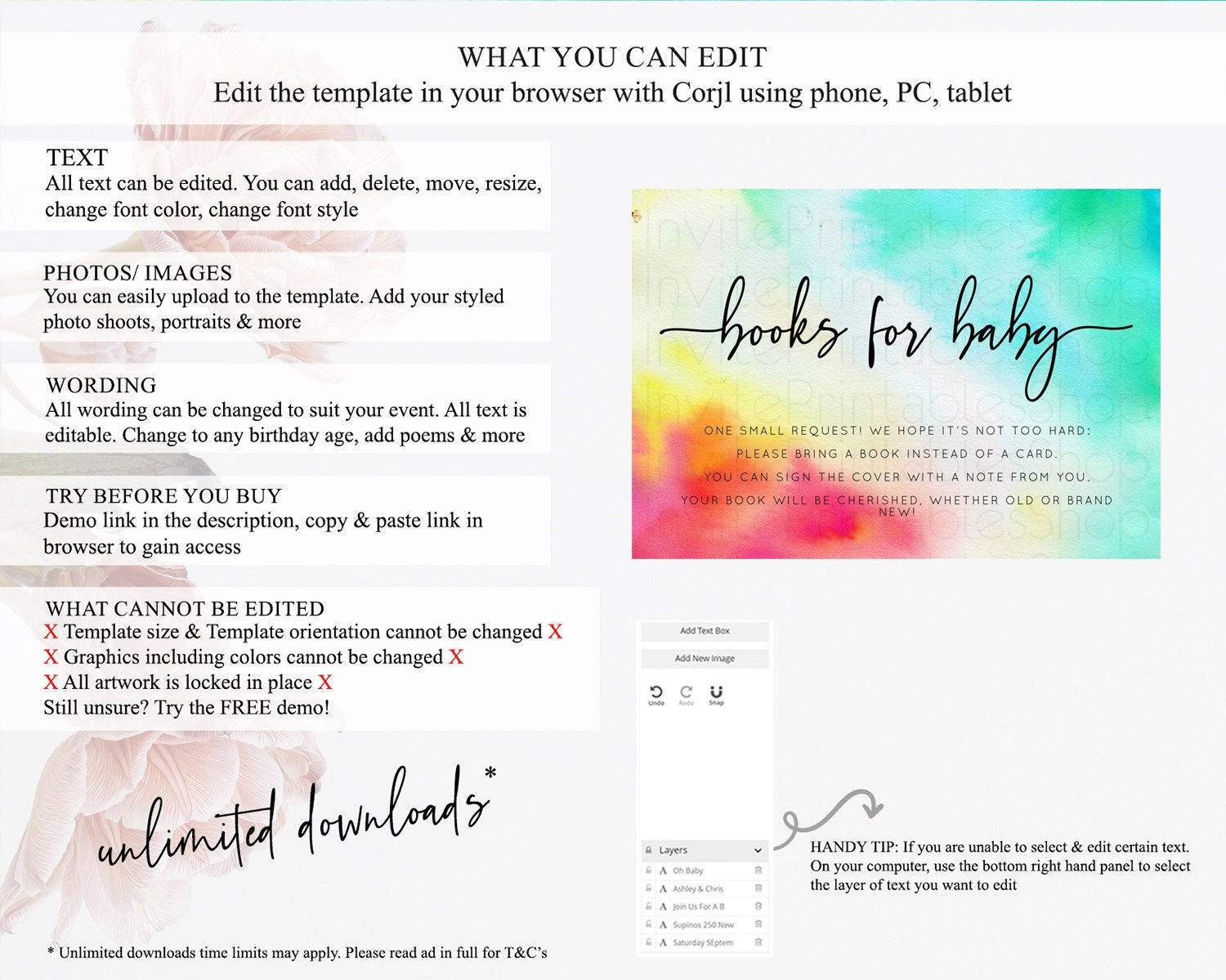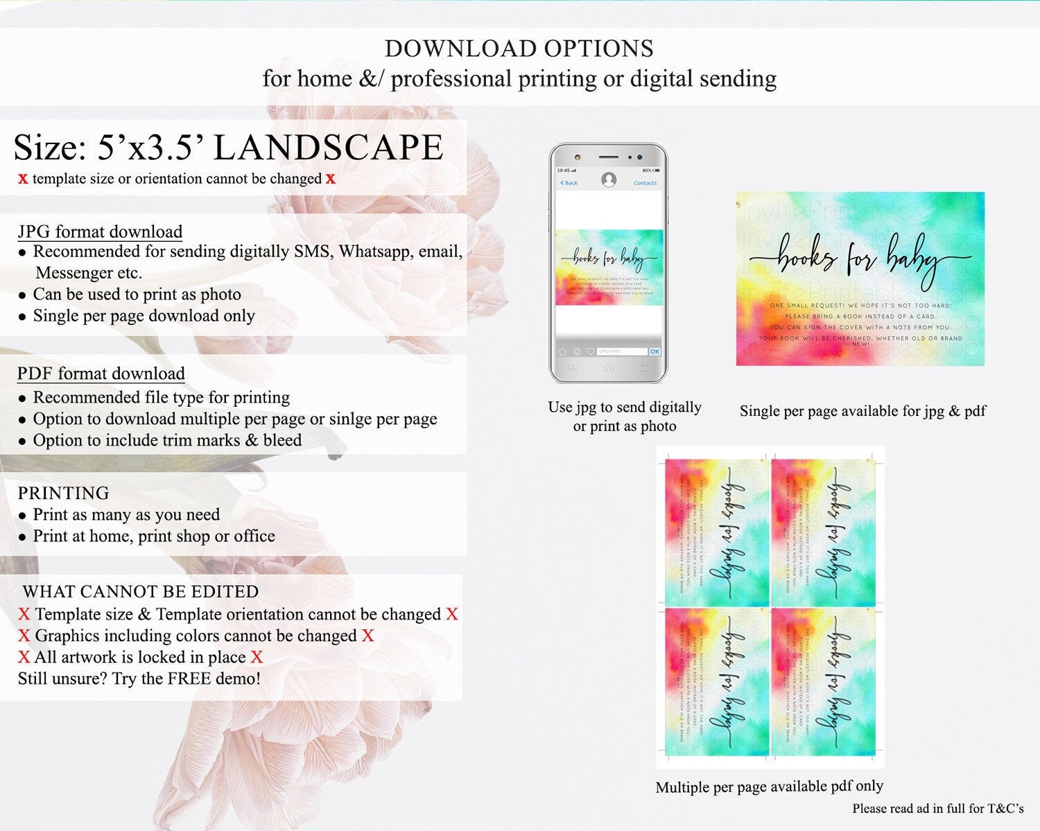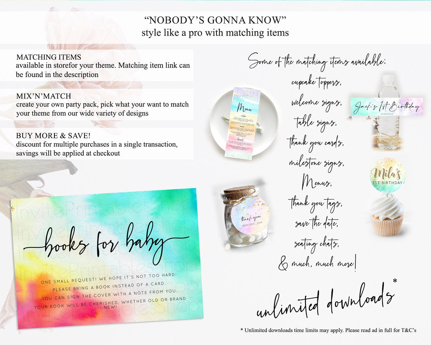 Tie Dye Books For Baby Card Rainbow Tie Dye Book Insert Pastel Rainbow Watercolor Book Card Tie Dye Colors Guests Book Poem Request D10462