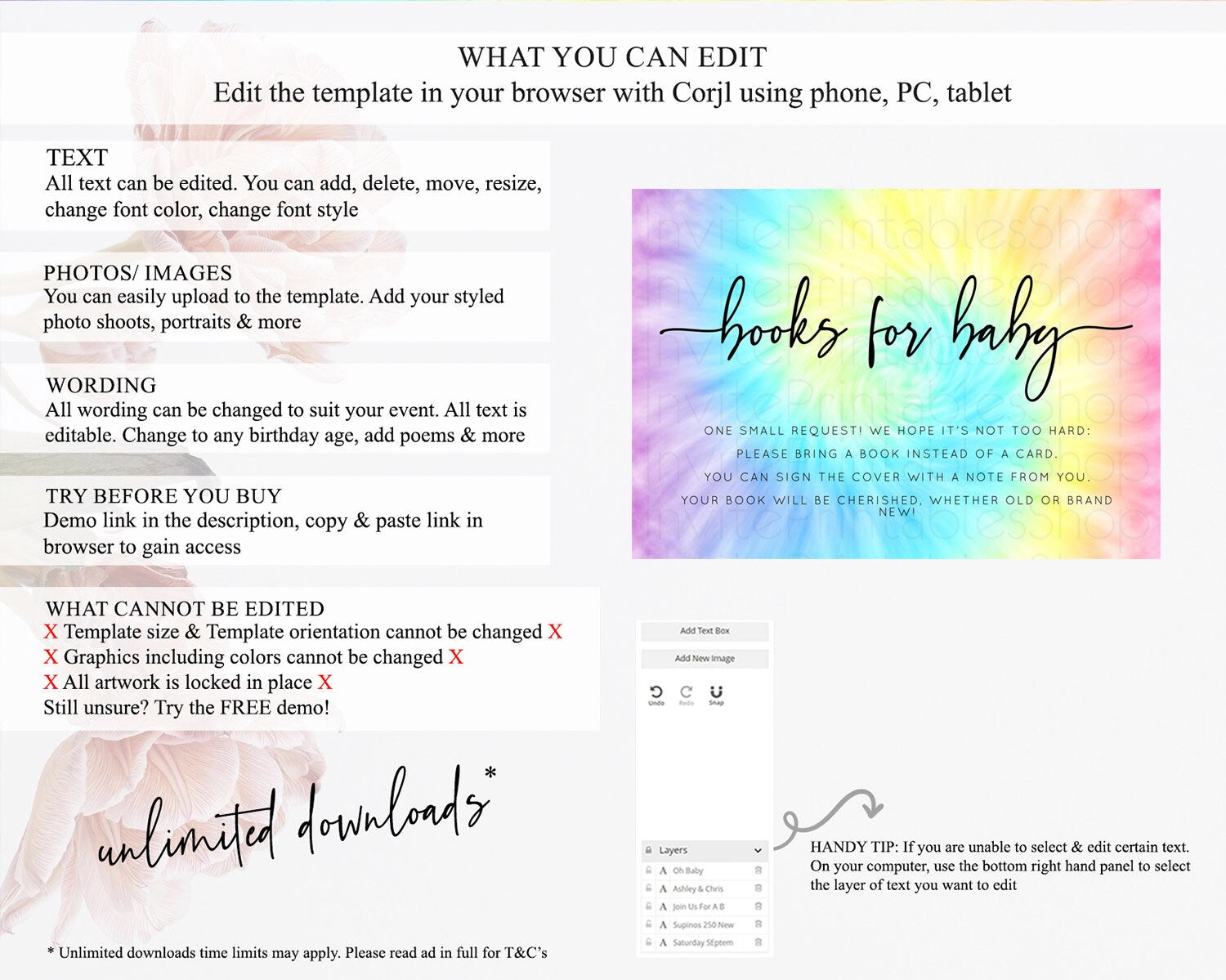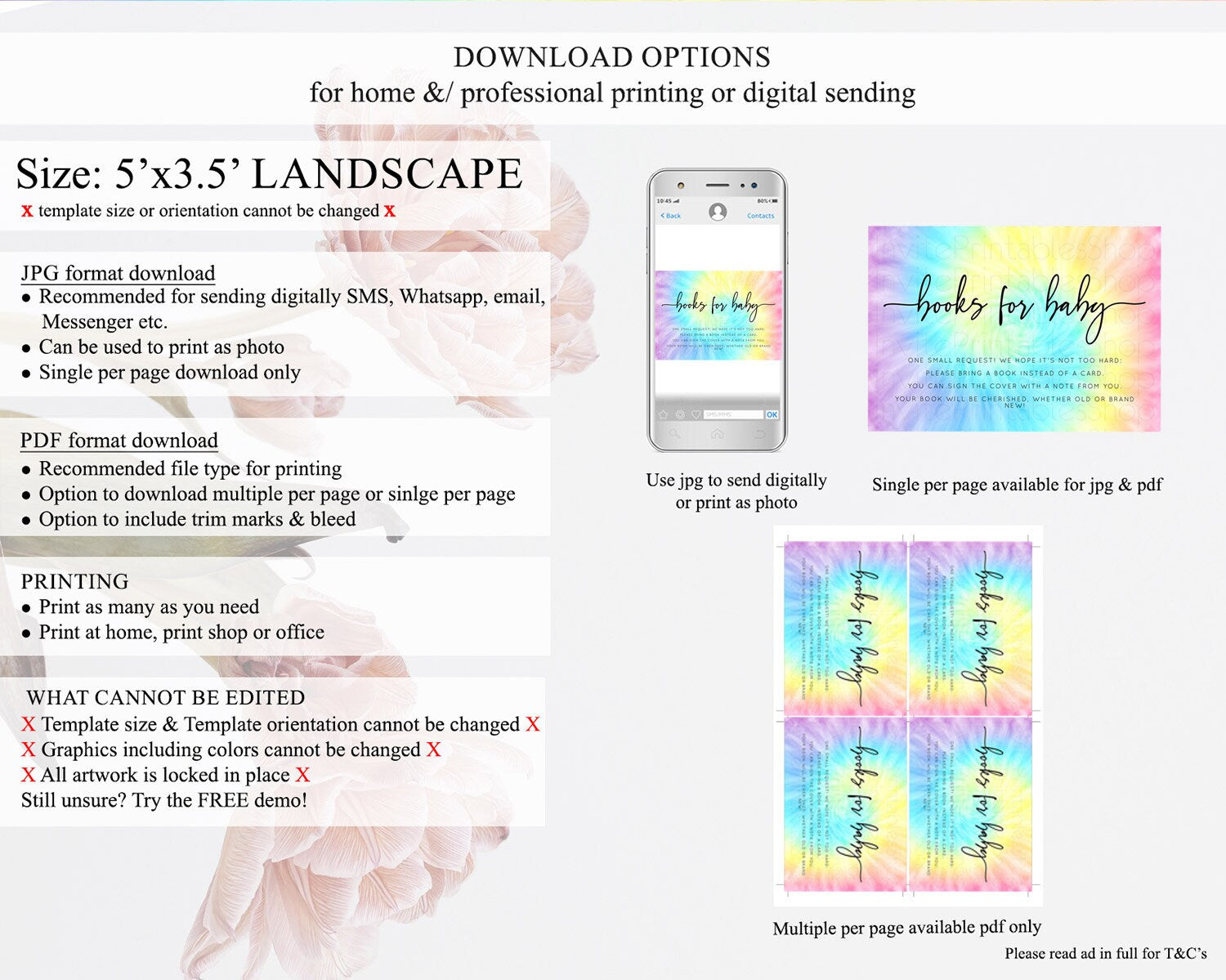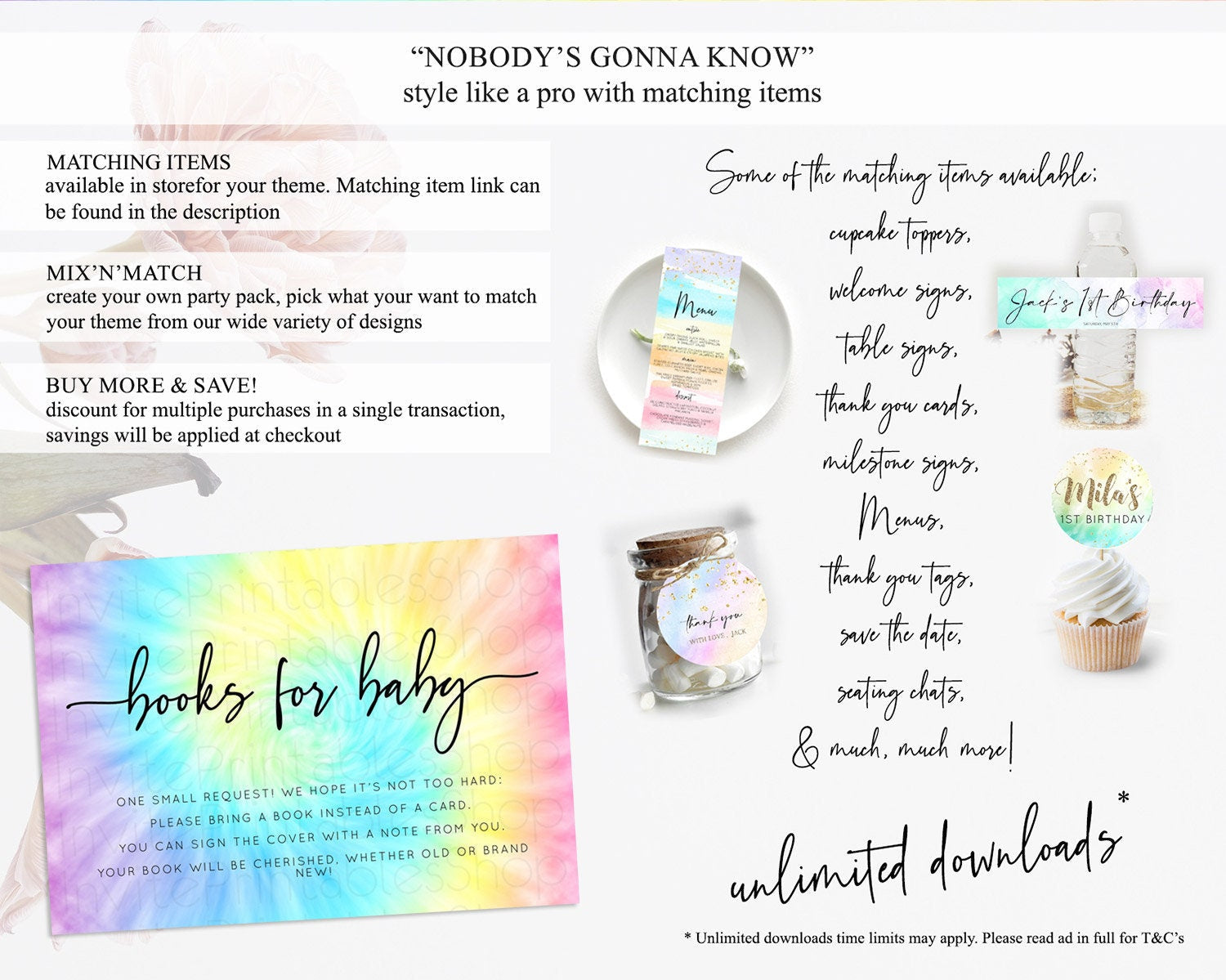 Tie Dye Books For Baby Card Rainbow Tie Dye Book Insert Pastel Rainbow Watercolor Book Card Tie Dye Colors Guests Book Poem Request D10578