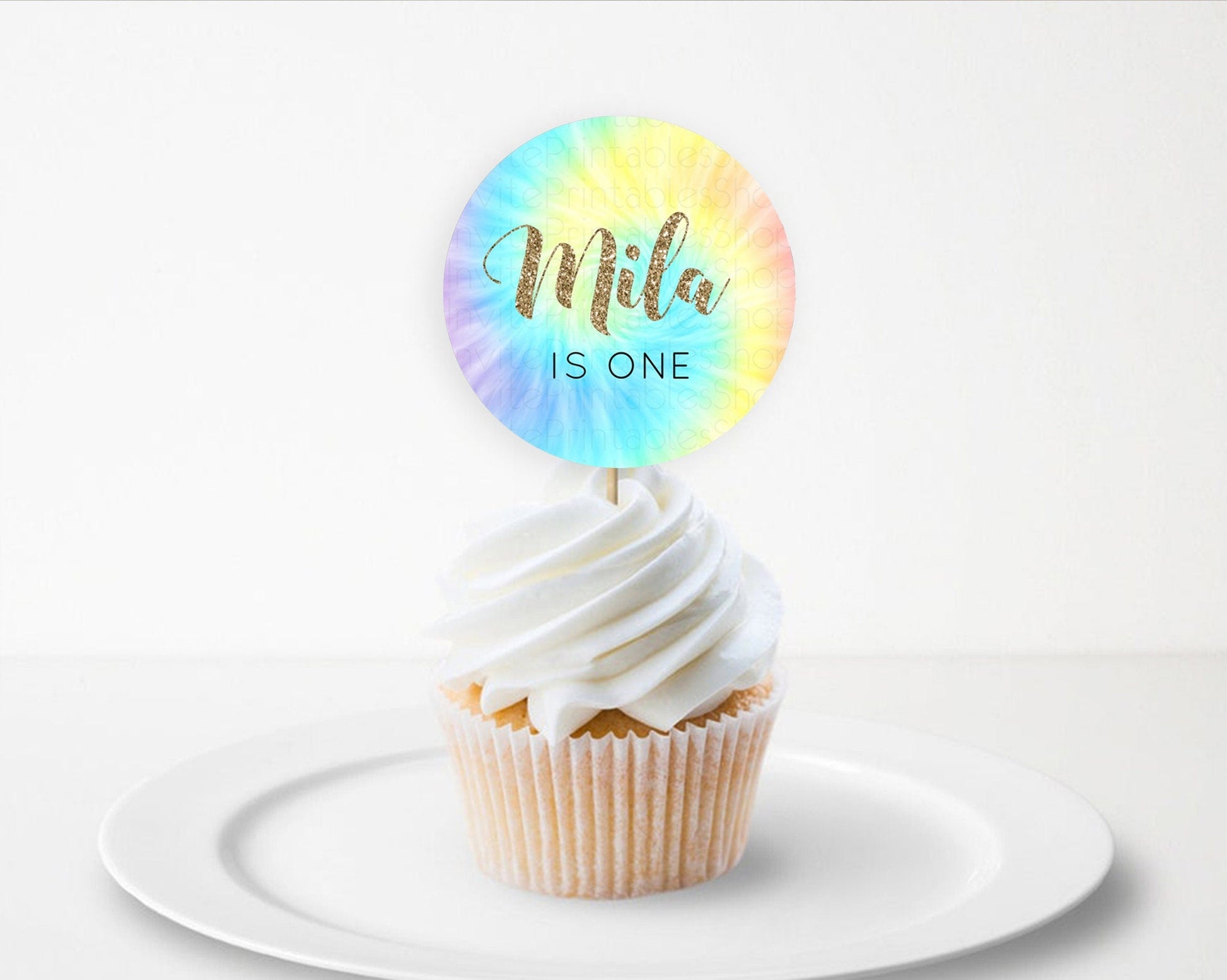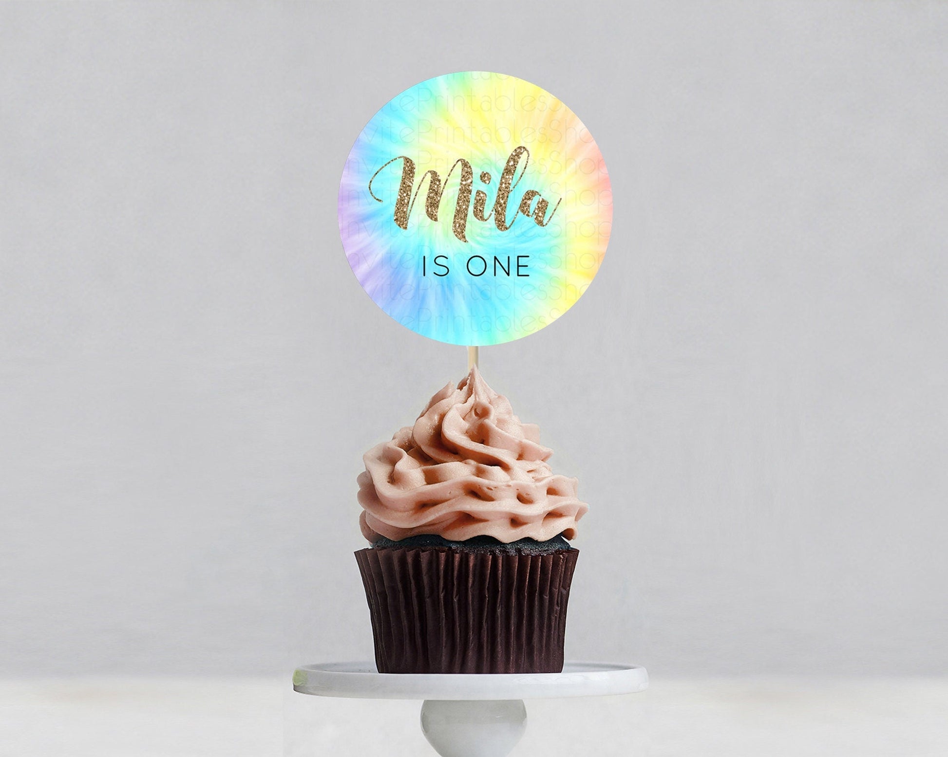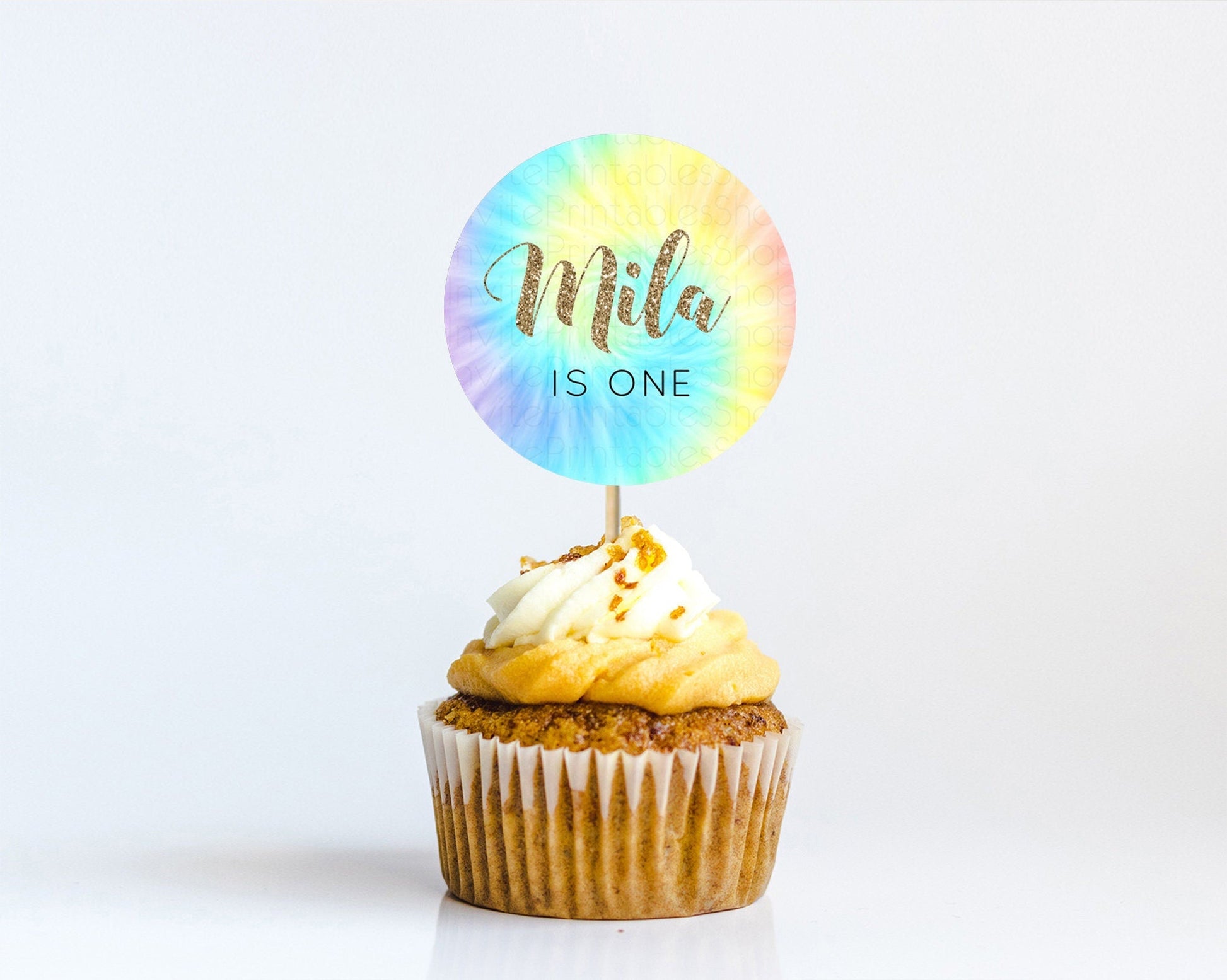 Tie Dye Cupcake Toppers Rainbow Tie Dye Cupcake Toppers Rainbow Colorful Cupcake Toppers Tie Dye Pastel Rainbow Party Cupcake Decor D10580