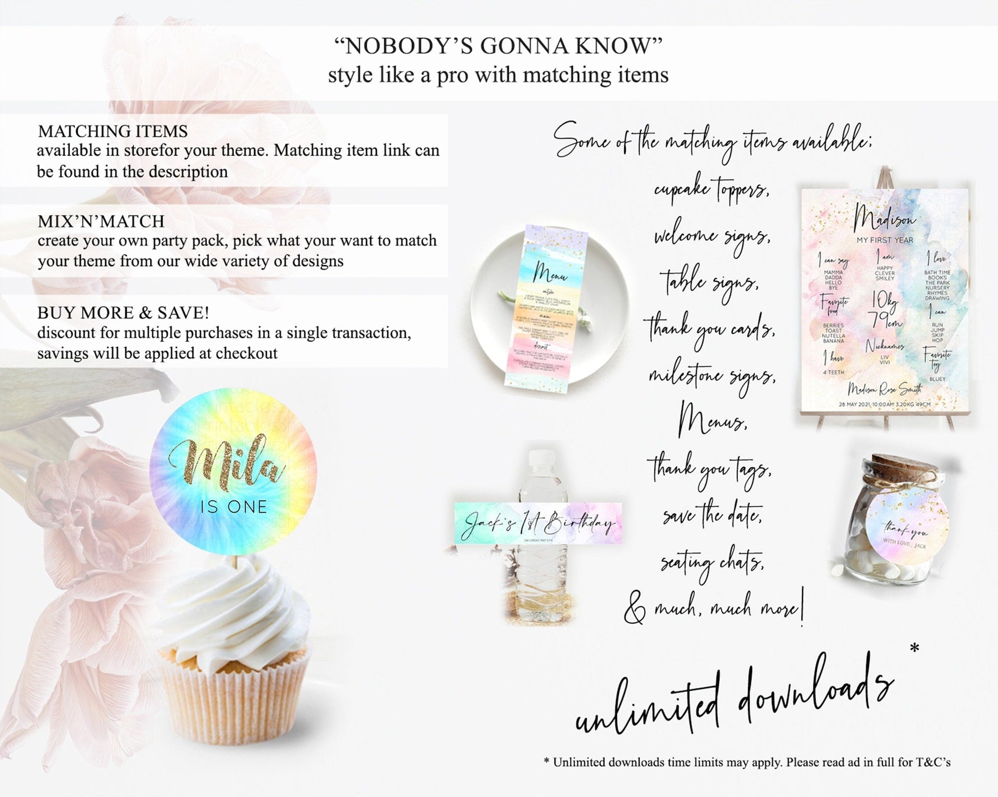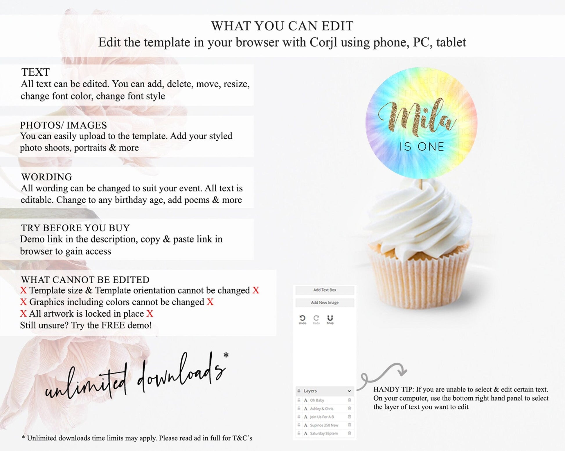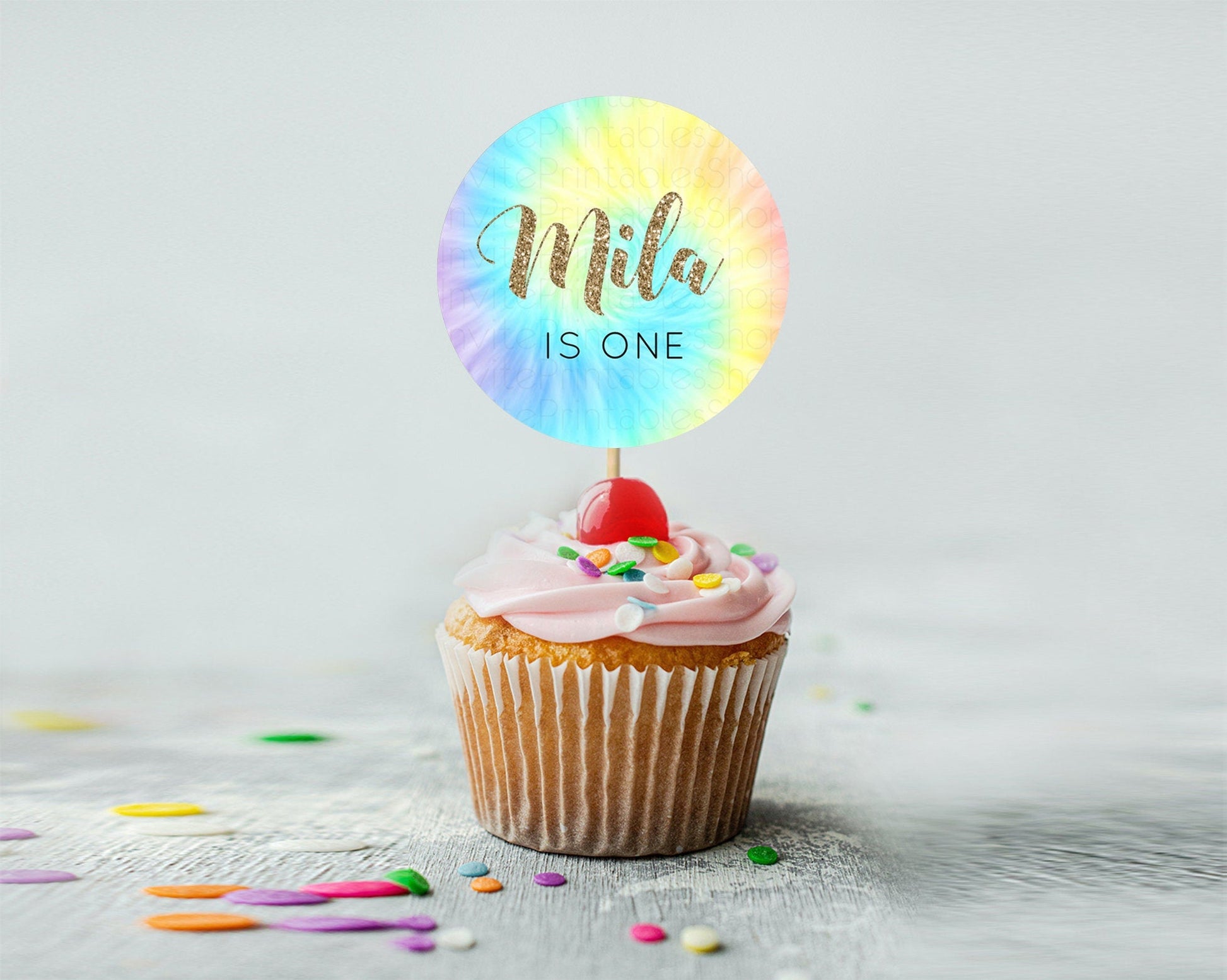 Tie Dye Cupcake Toppers Rainbow Tie Dye Cupcake Toppers Rainbow Colorful Cupcake Toppers Tie Dye Pastel Rainbow Party Cupcake Decor D10580