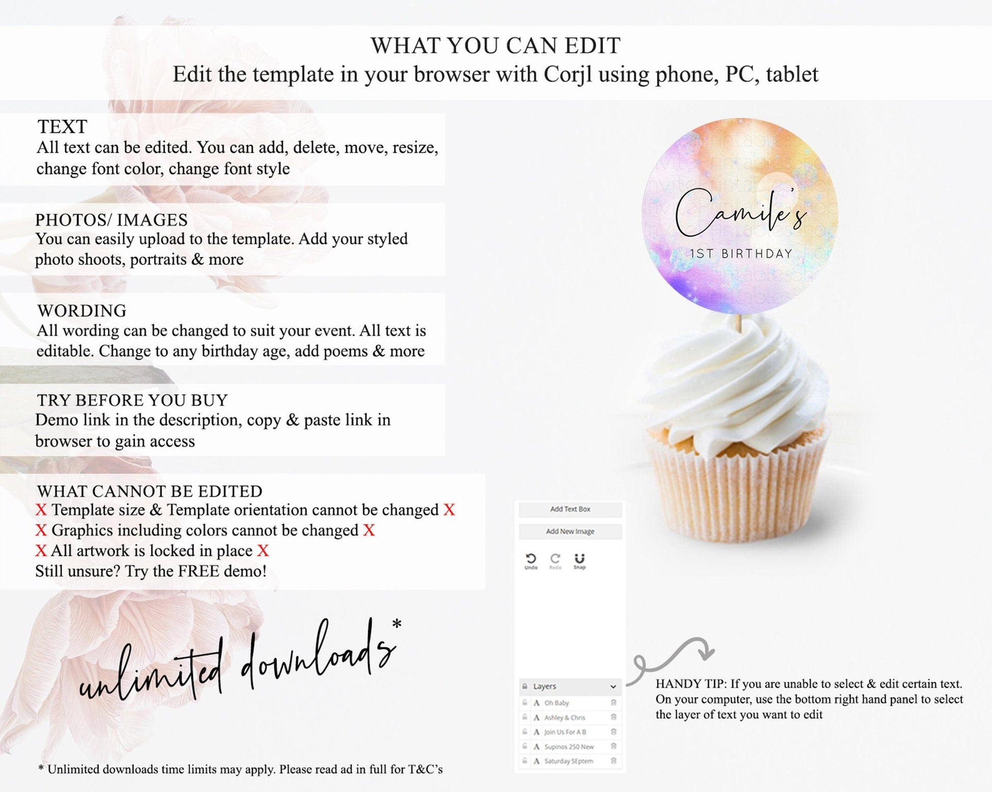 Tie Dye Cupcake Toppers Rainbow Tie Dye Cupcake Toppers Rainbow Colorful Cupcake Toppers Tie Dye Pastel Rainbow Party Cupcake Decor D10690