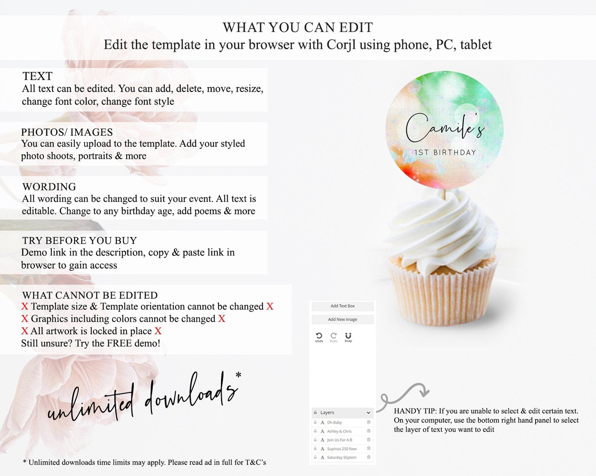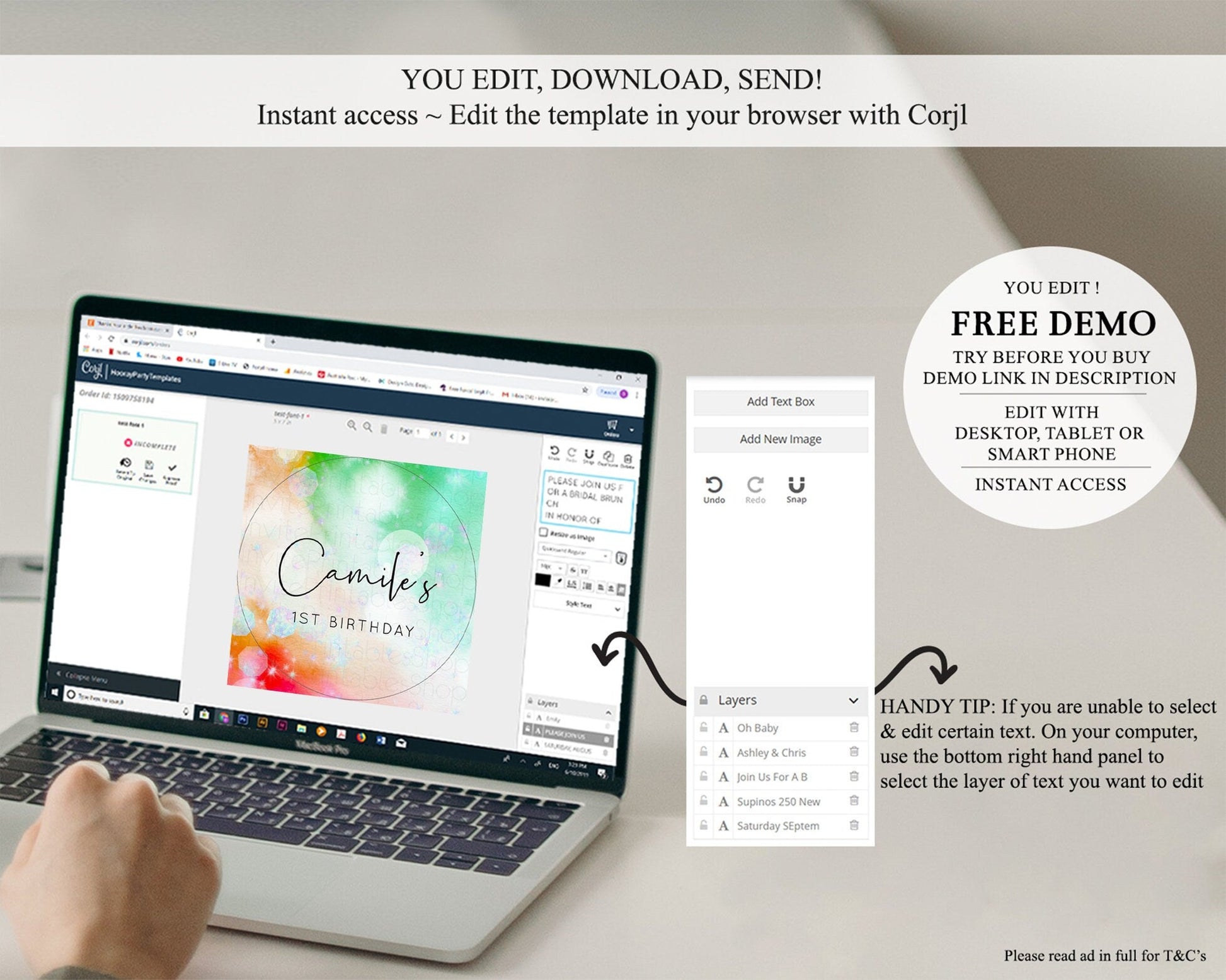• After purchase, Corjl emails your editing link. Allow up to 15 minutes for delivery.