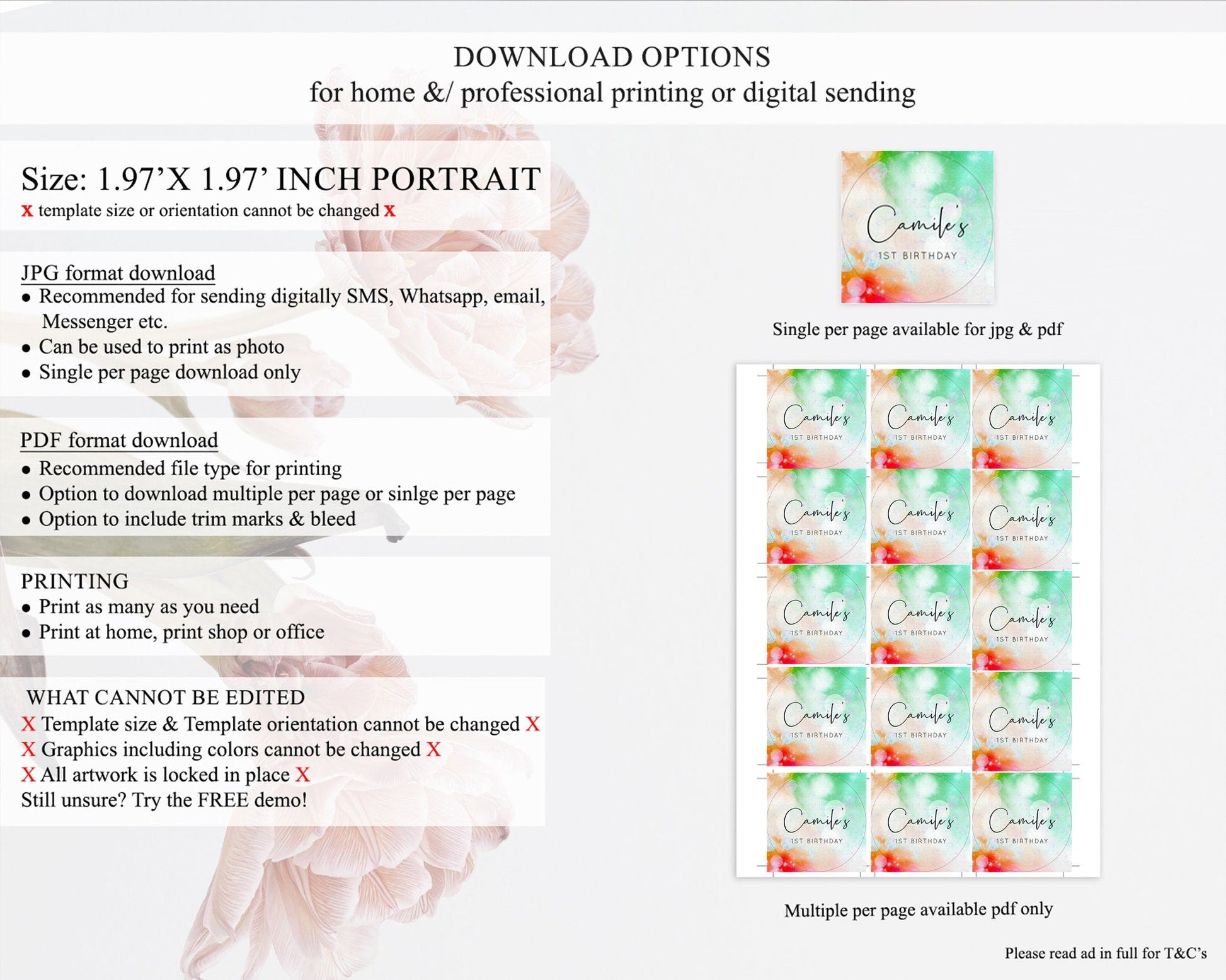 • Template size & orientation cannot be changed. Please use the demo link to confirm this product suits your needs.