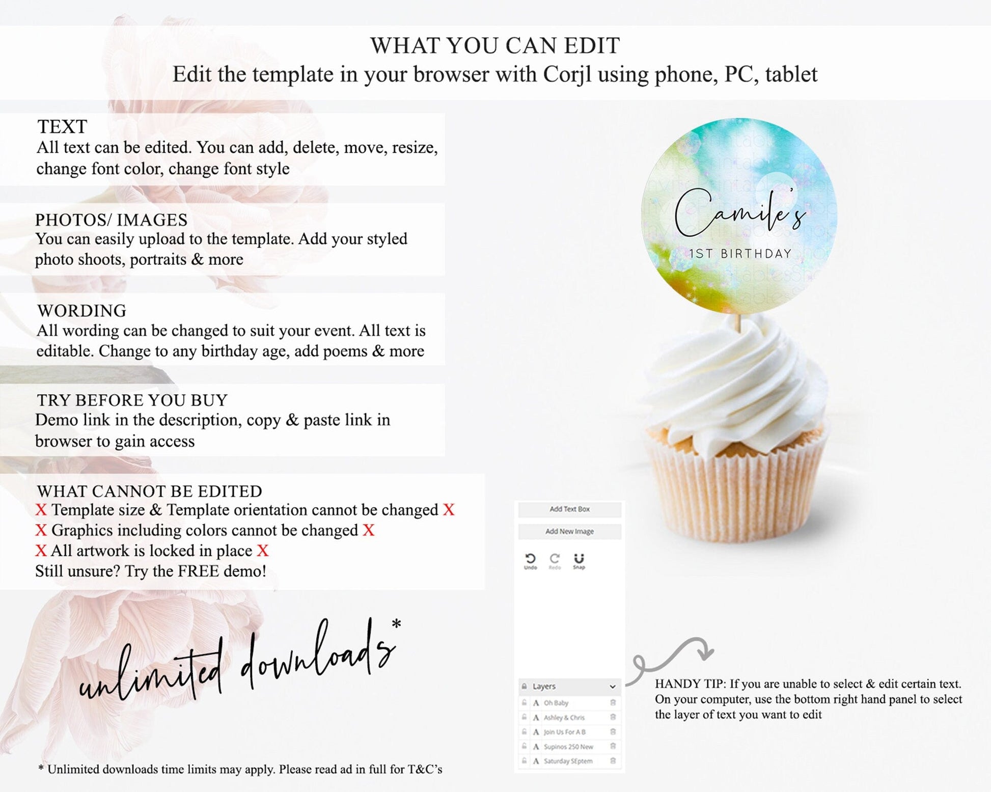 Tie Dye Cupcake Toppers Rainbow Tie Dye Cupcake Toppers Rainbow Colorful Cupcake Toppers Tie Dye Pastel Rainbow Party Cupcake Decor D10692
