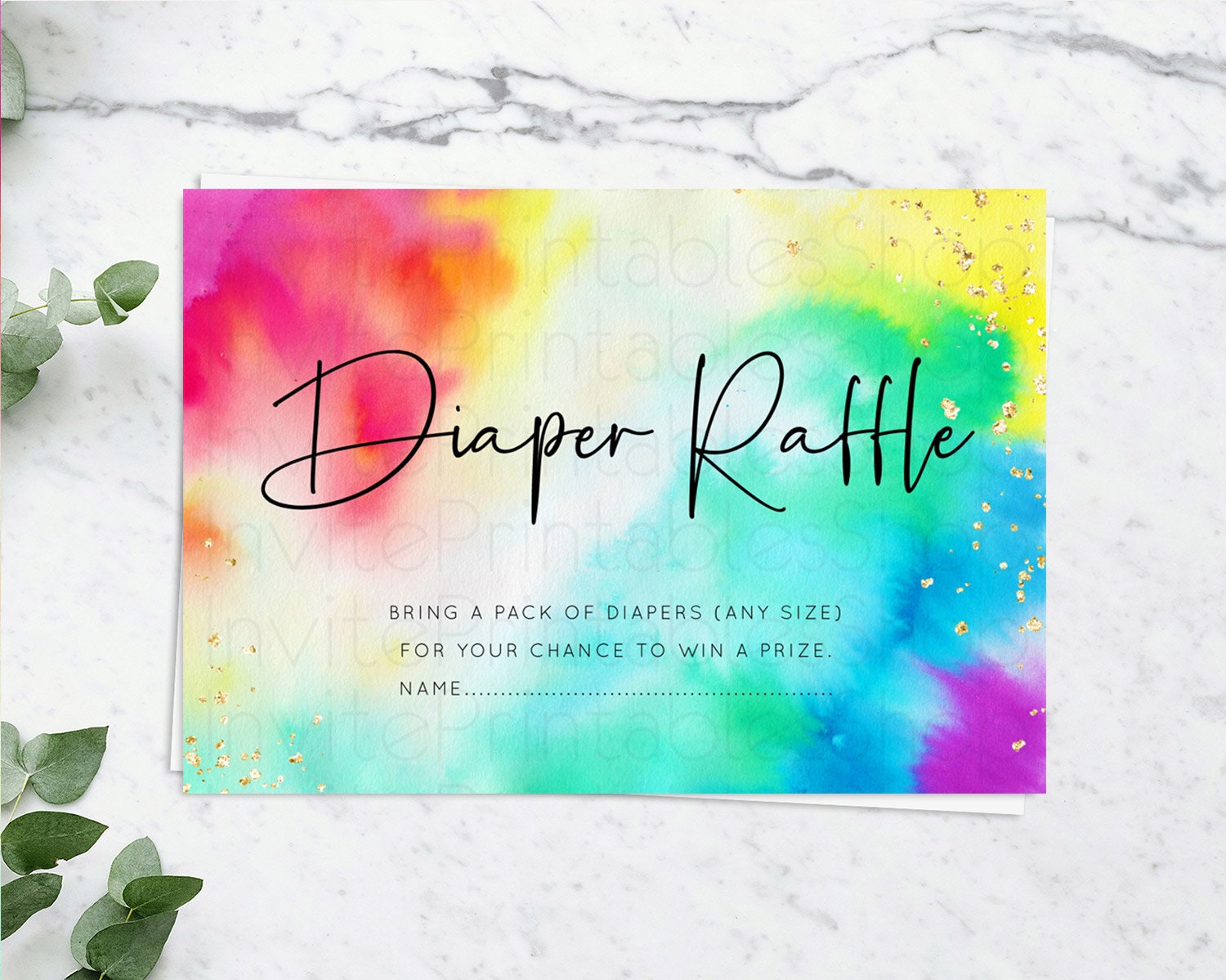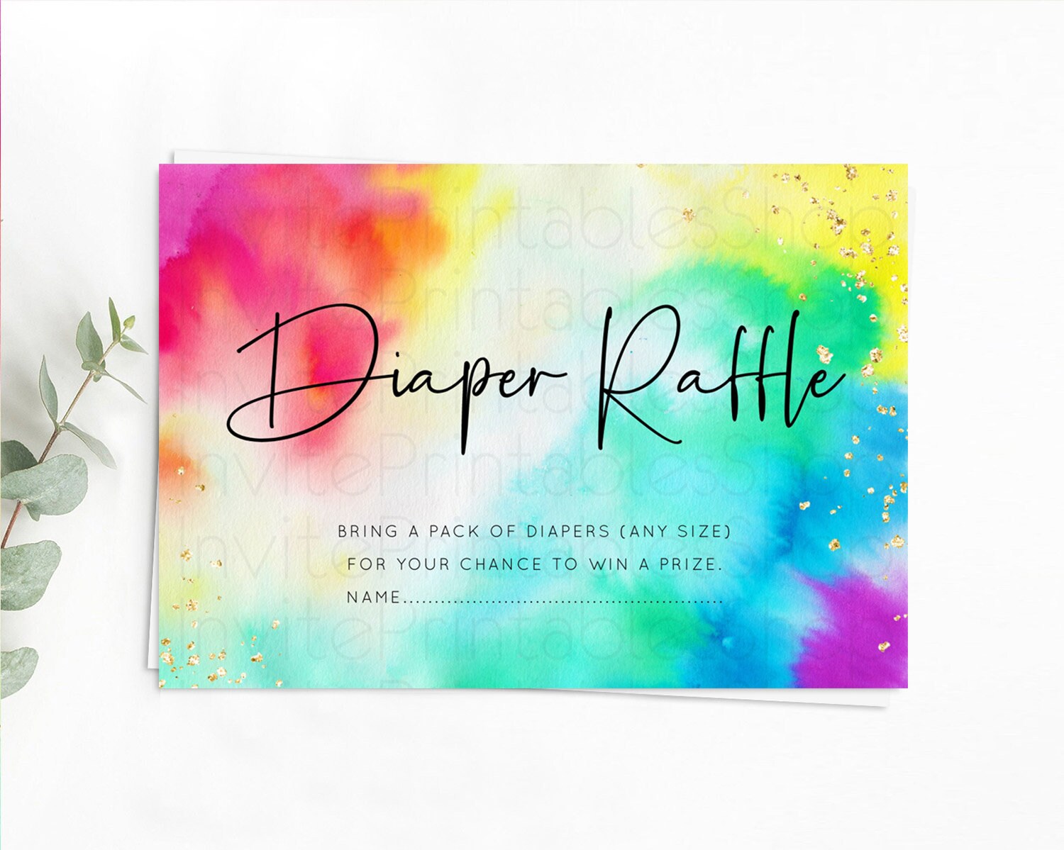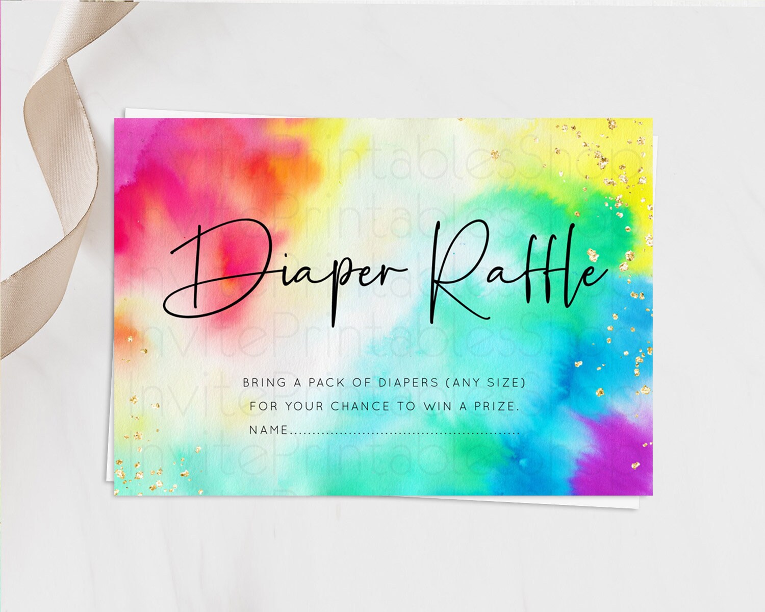 Tie Dye Diaper Raffle Card Rainbow Tie Dye Diaper Raffle Insert Pastel Rainbow Watercolor Diaper Ticket Tie Dye Colors Raffle Game D10462