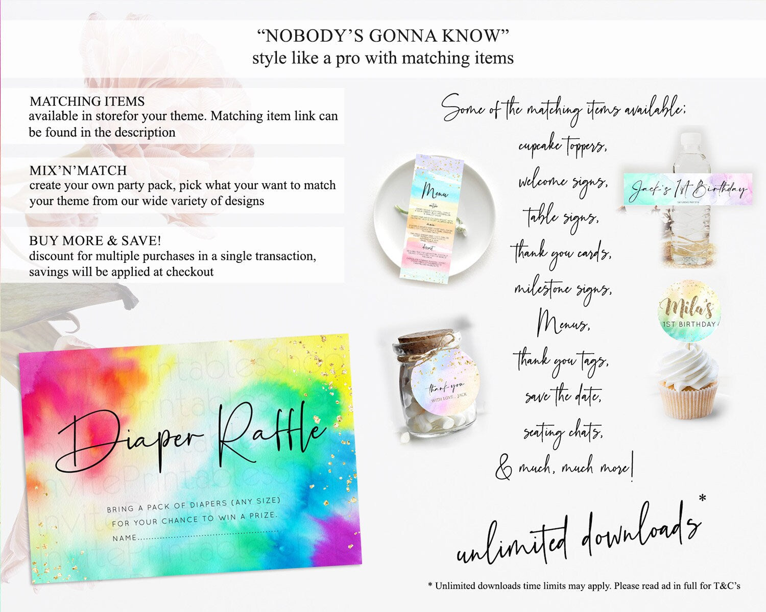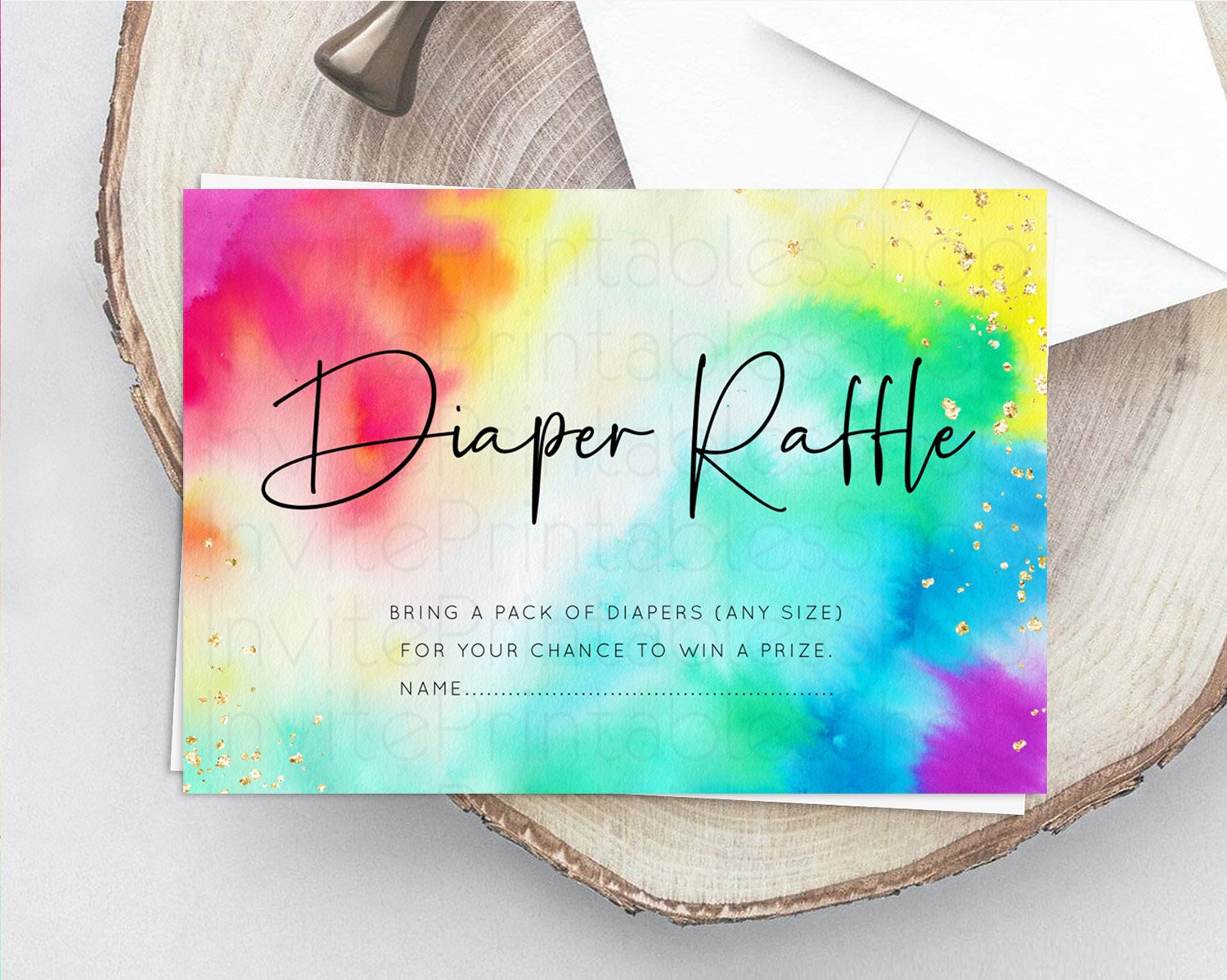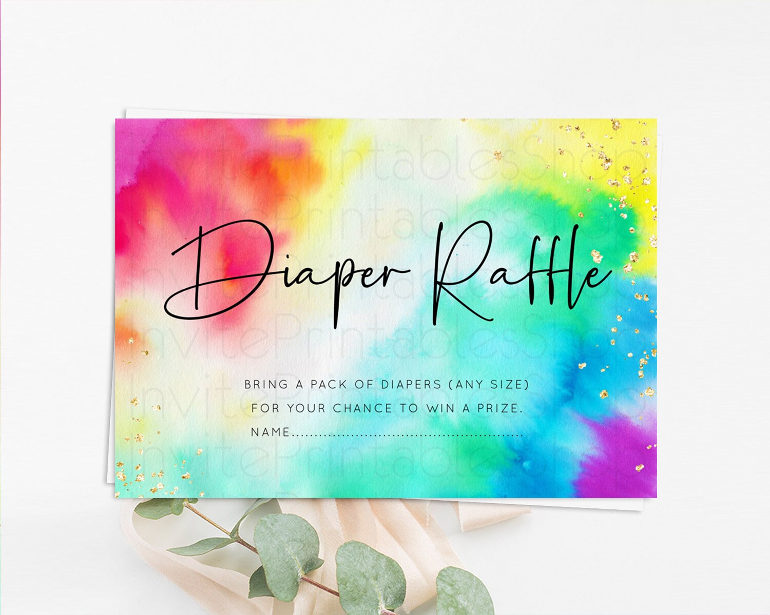 Tie Dye Diaper Raffle Card Rainbow Tie Dye Diaper Raffle Insert Pastel Rainbow Watercolor Diaper Ticket Tie Dye Colors Raffle Game D10462