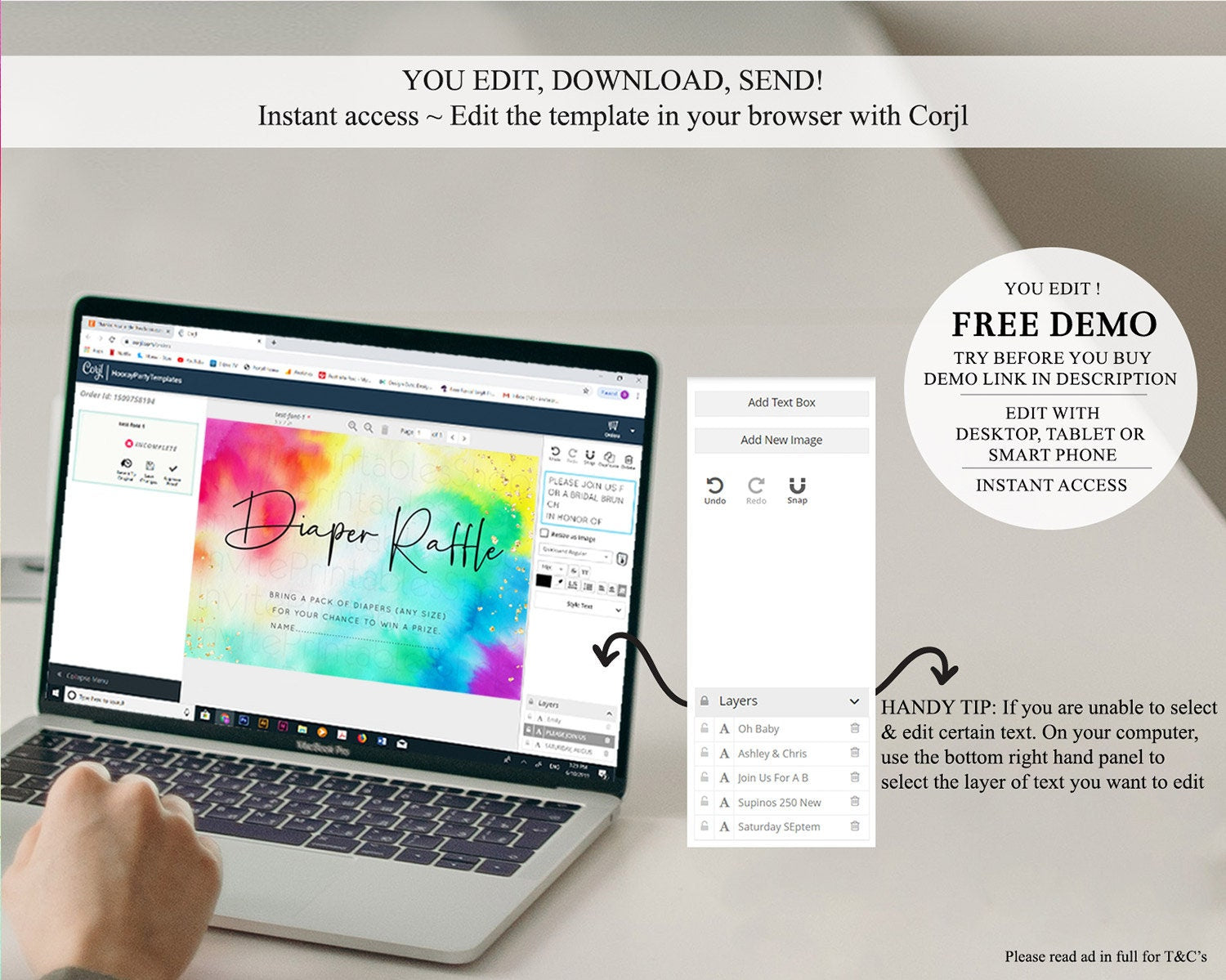 • After purchase, Corjl emails your editing link. Allow up to 15 minutes for delivery.
