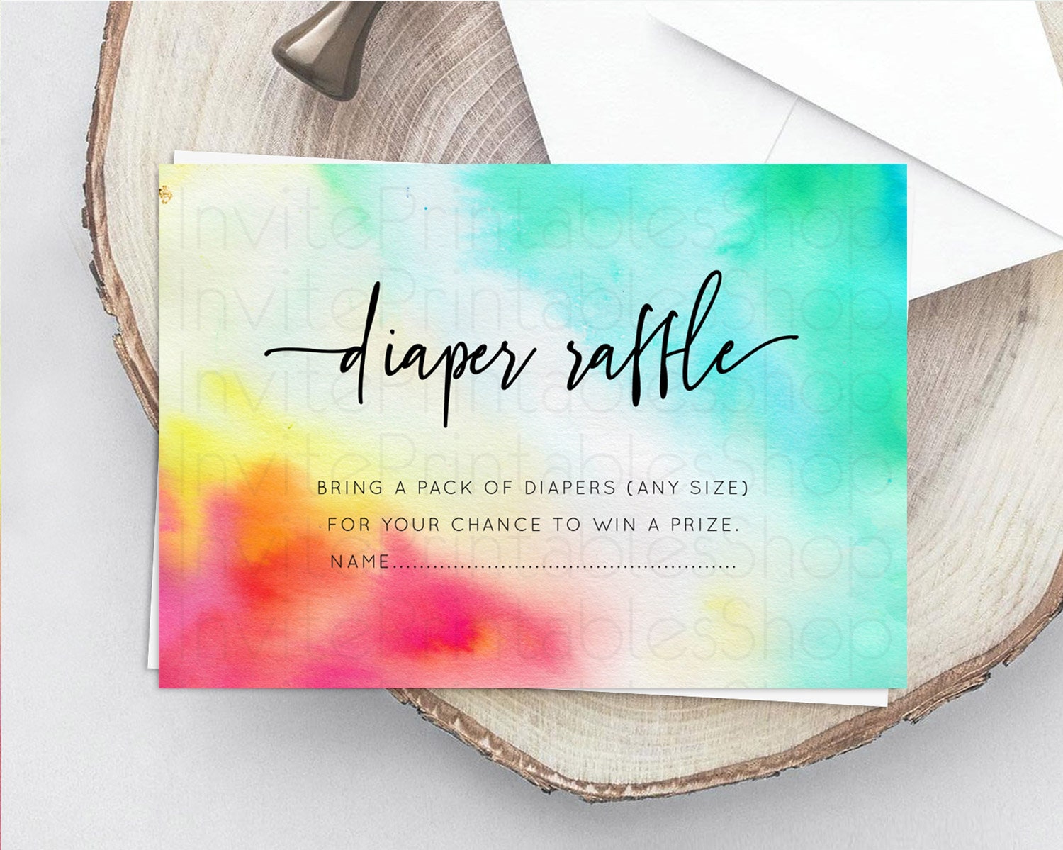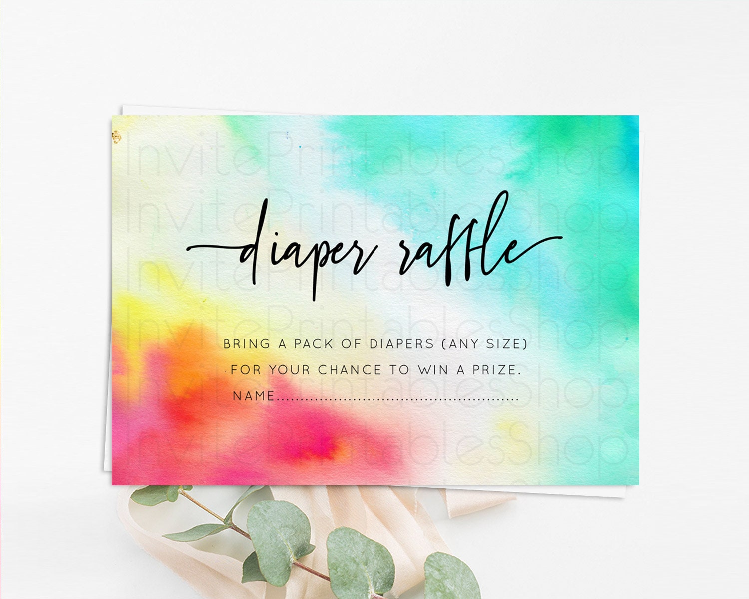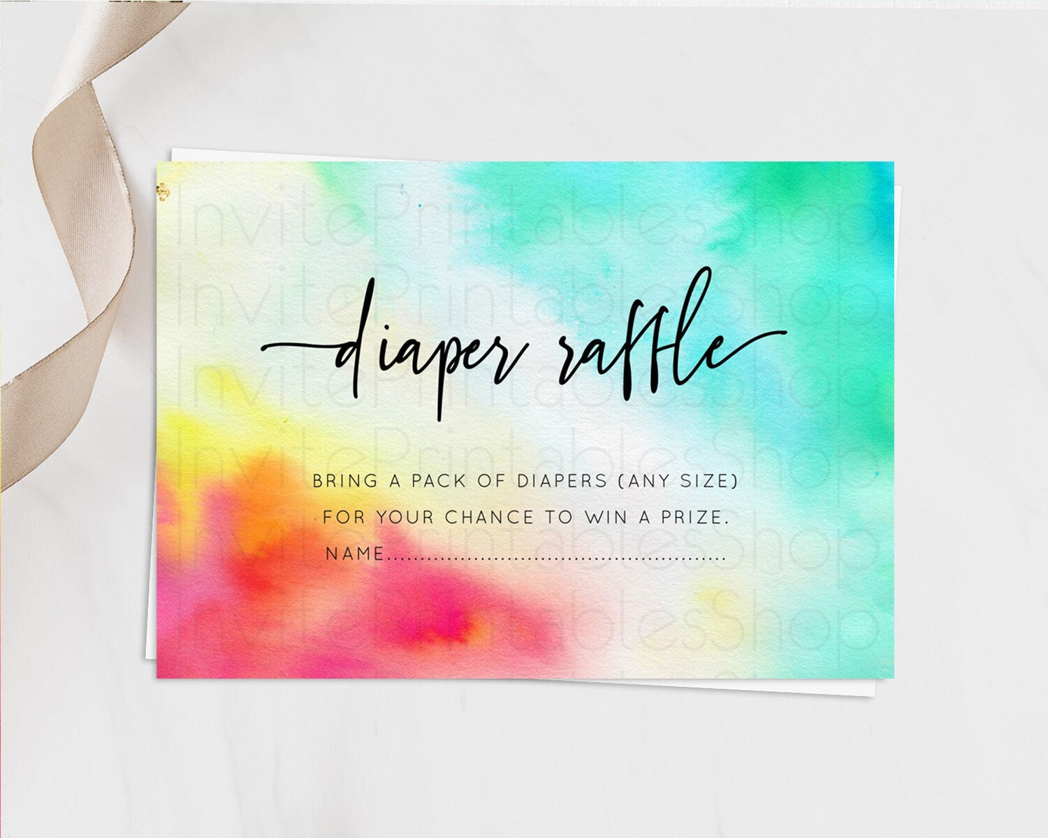Tie Dye Diaper Raffle Card Rainbow Tie Dye Diaper Raffle Insert Pastel Rainbow Watercolor Diaper Ticket Tie Dye Colors Raffle Game D10462