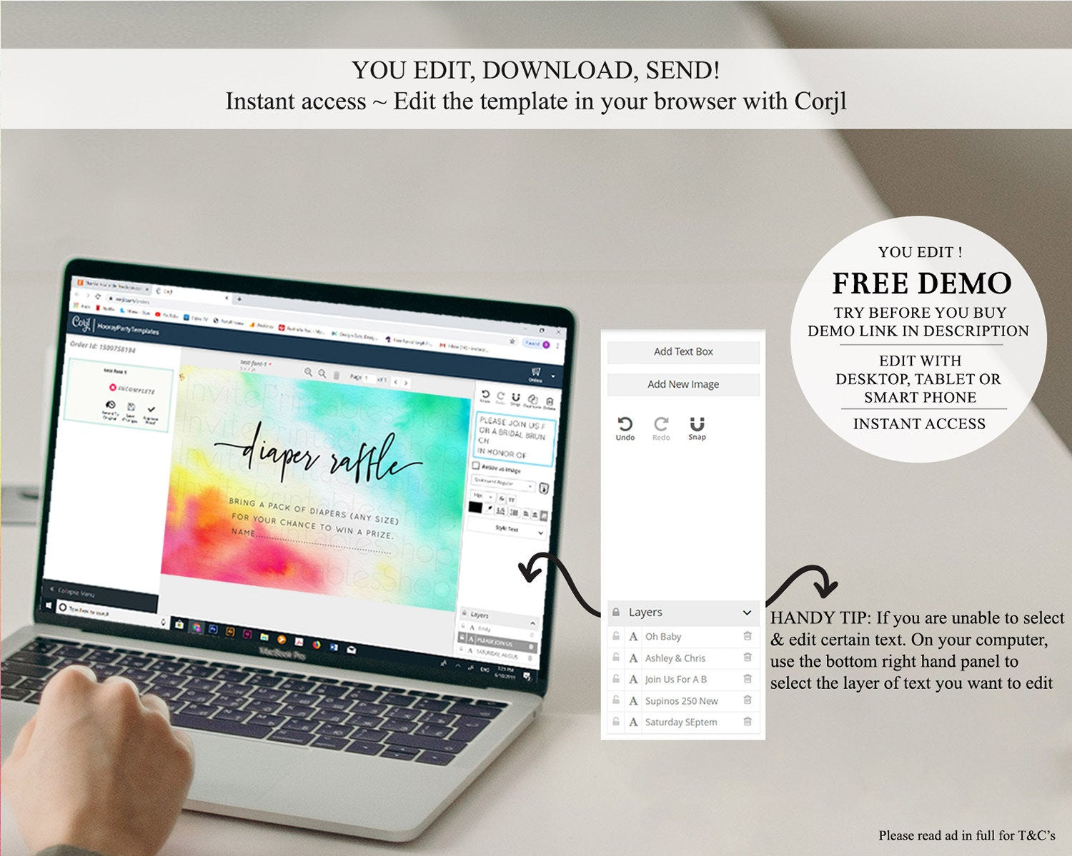 • After purchase, Corjl emails your editing link. Allow up to 15 minutes for delivery.