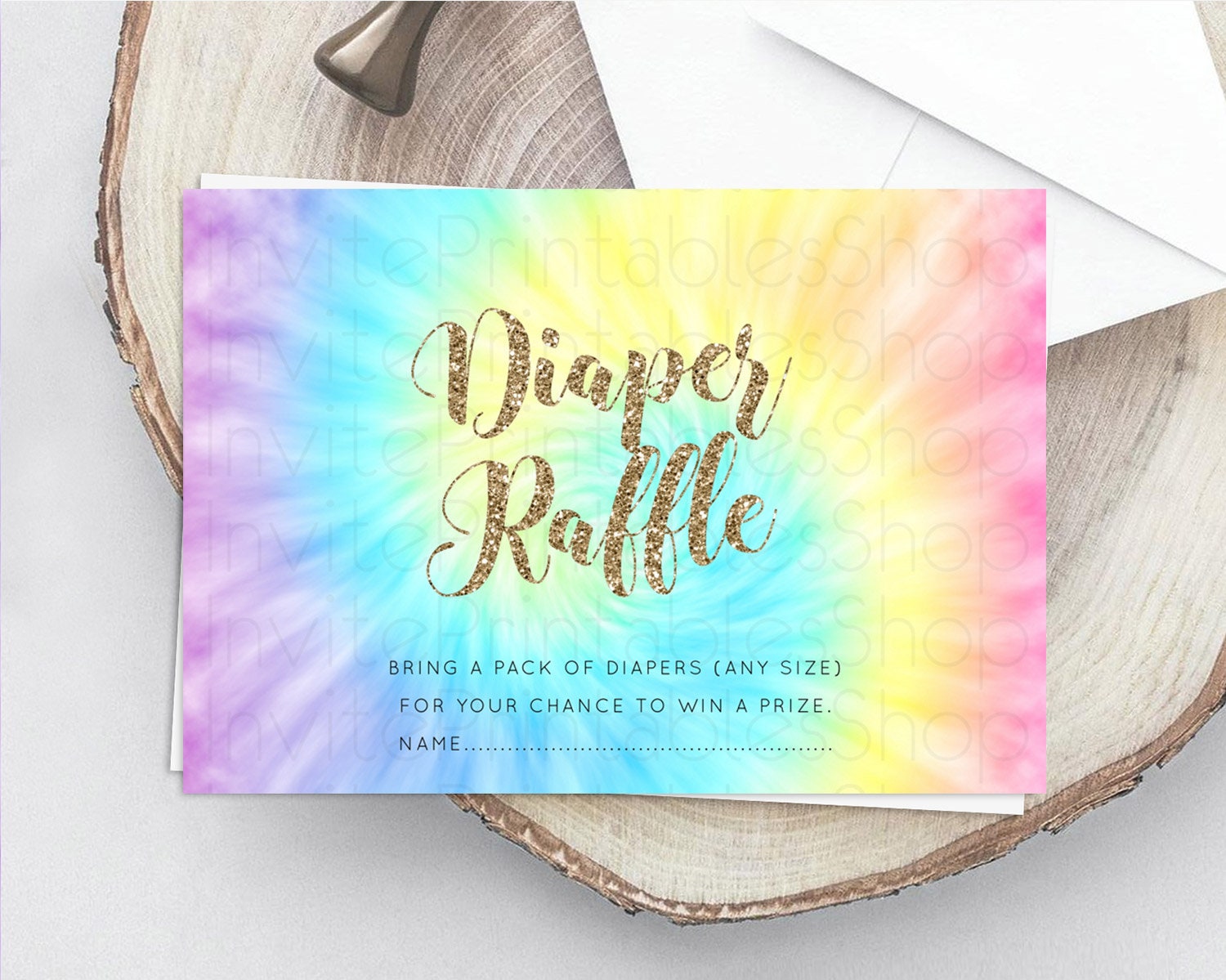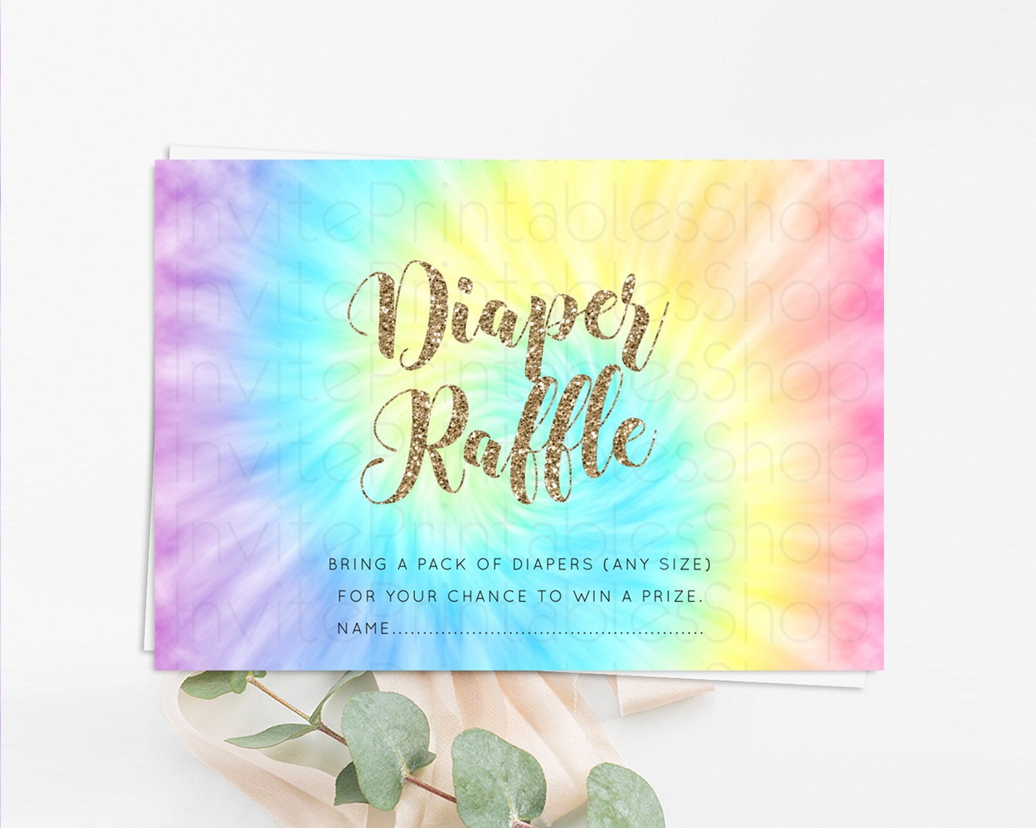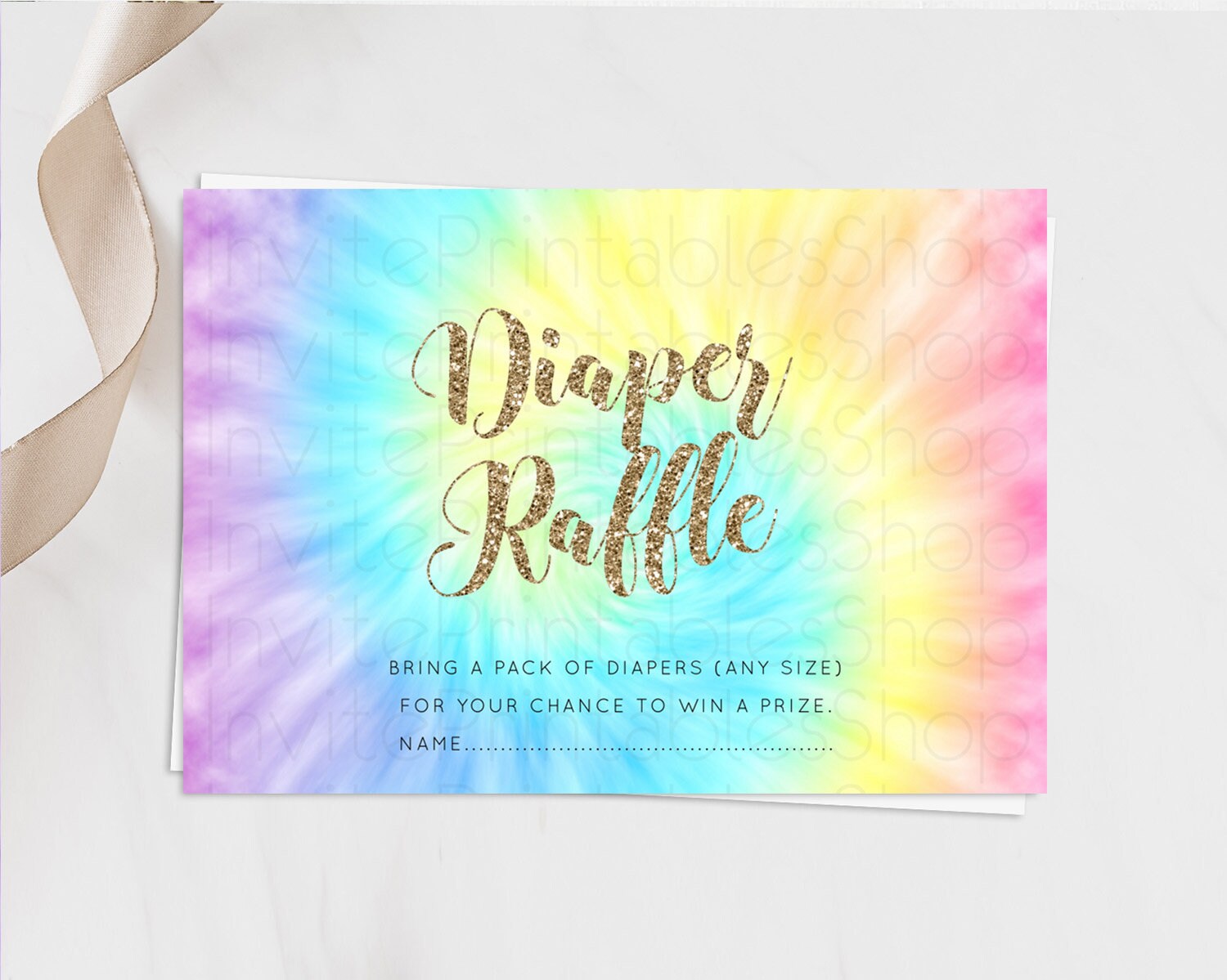 Tie Dye Diaper Raffle Card Rainbow Tie Dye Diaper Raffle Insert Pastel Rainbow Watercolor Diaper Ticket Tie Dye Colors Raffle Game D10580