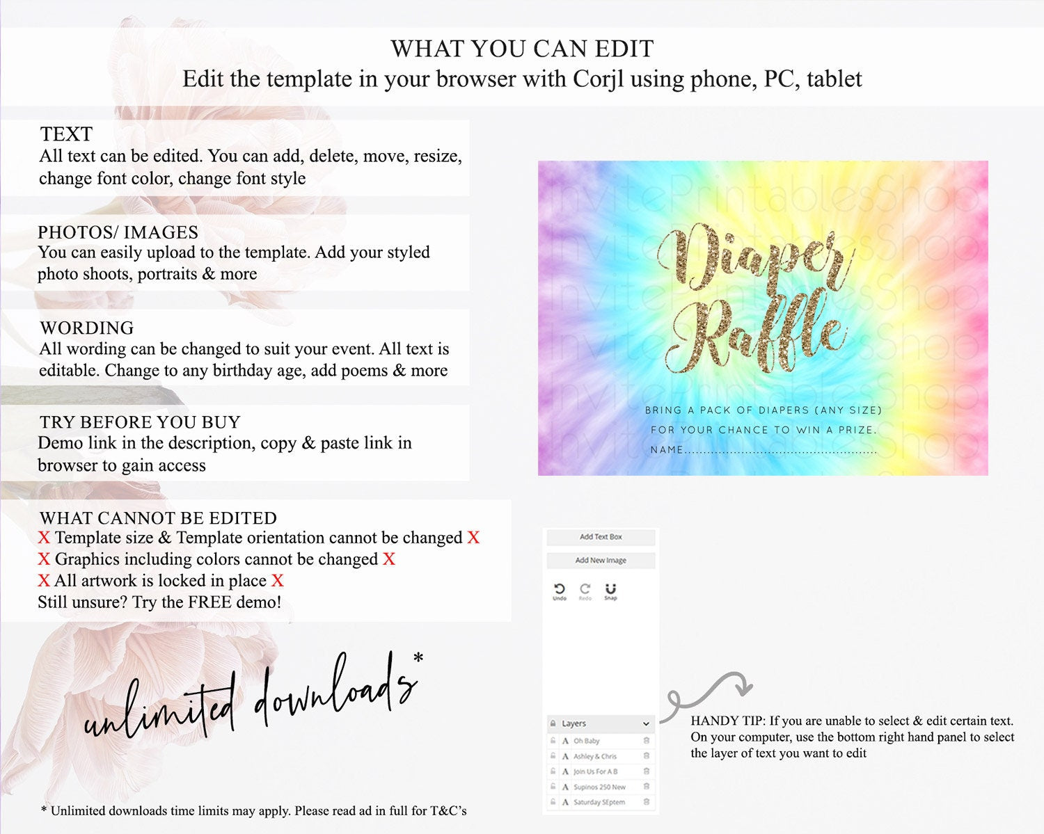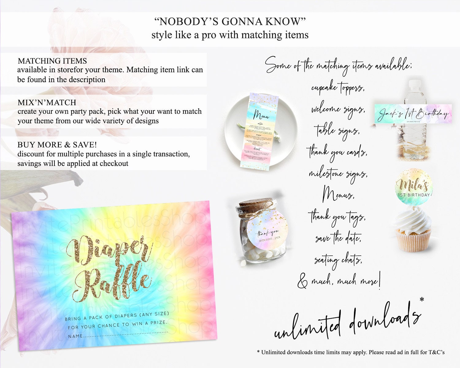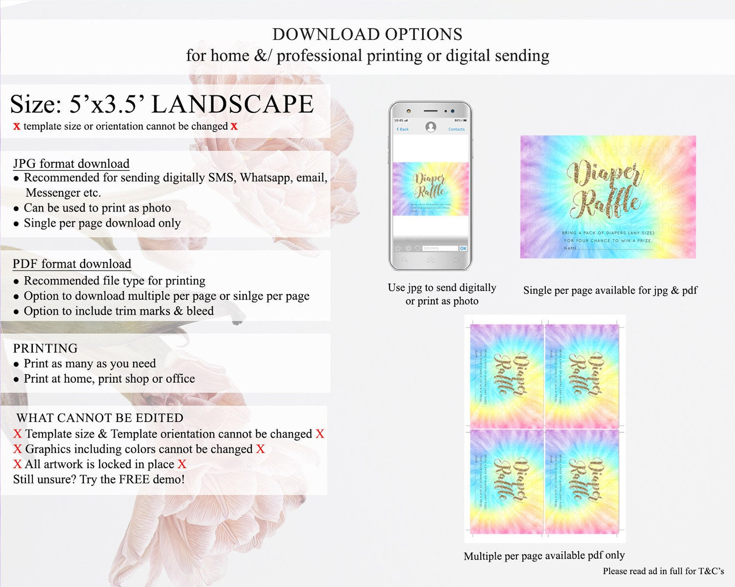 Tie Dye Diaper Raffle Card Rainbow Tie Dye Diaper Raffle Insert Pastel Rainbow Watercolor Diaper Ticket Tie Dye Colors Raffle Game D10580