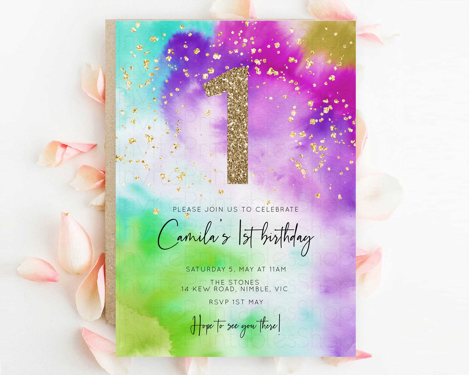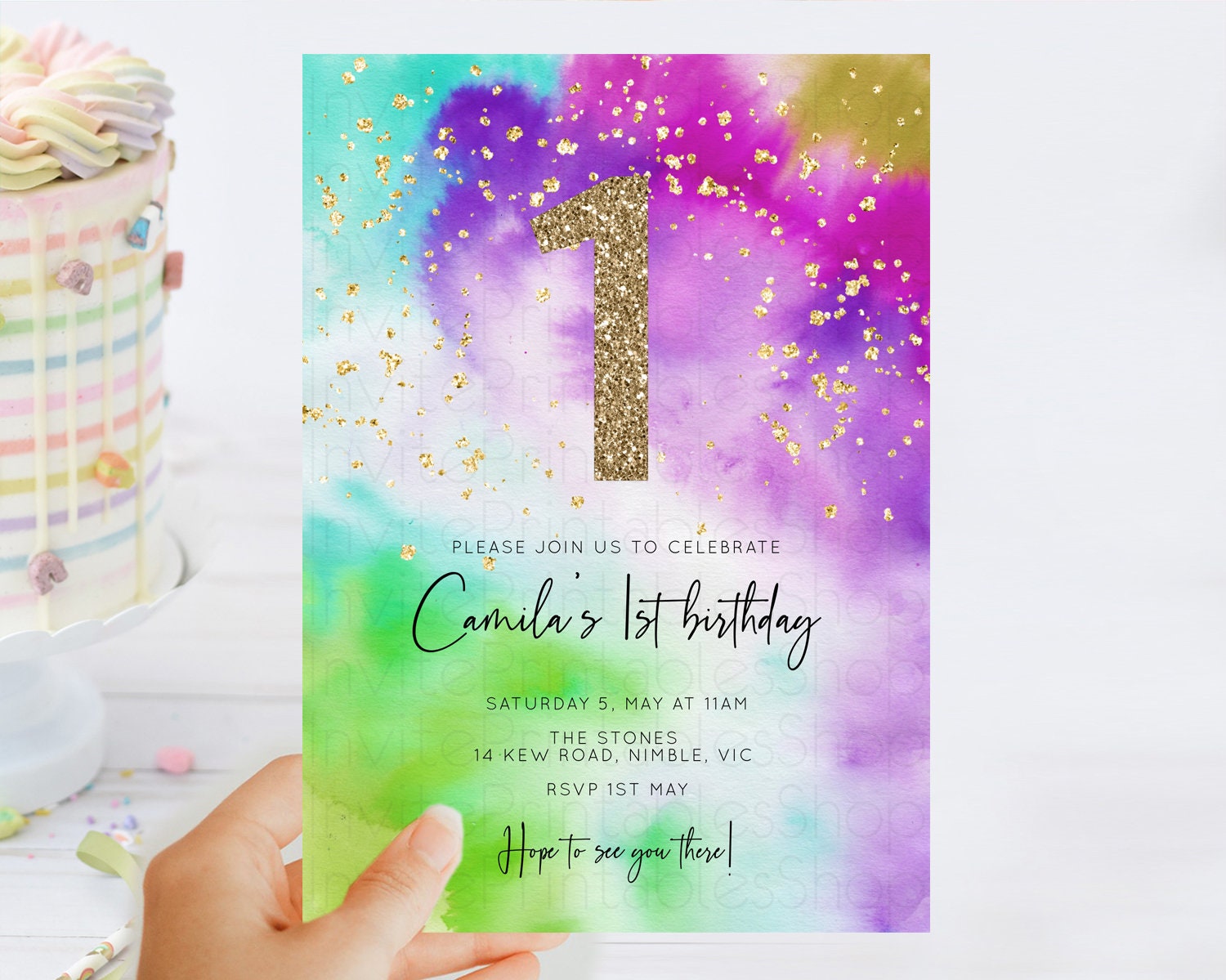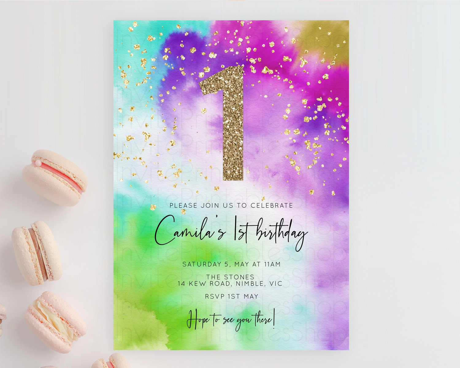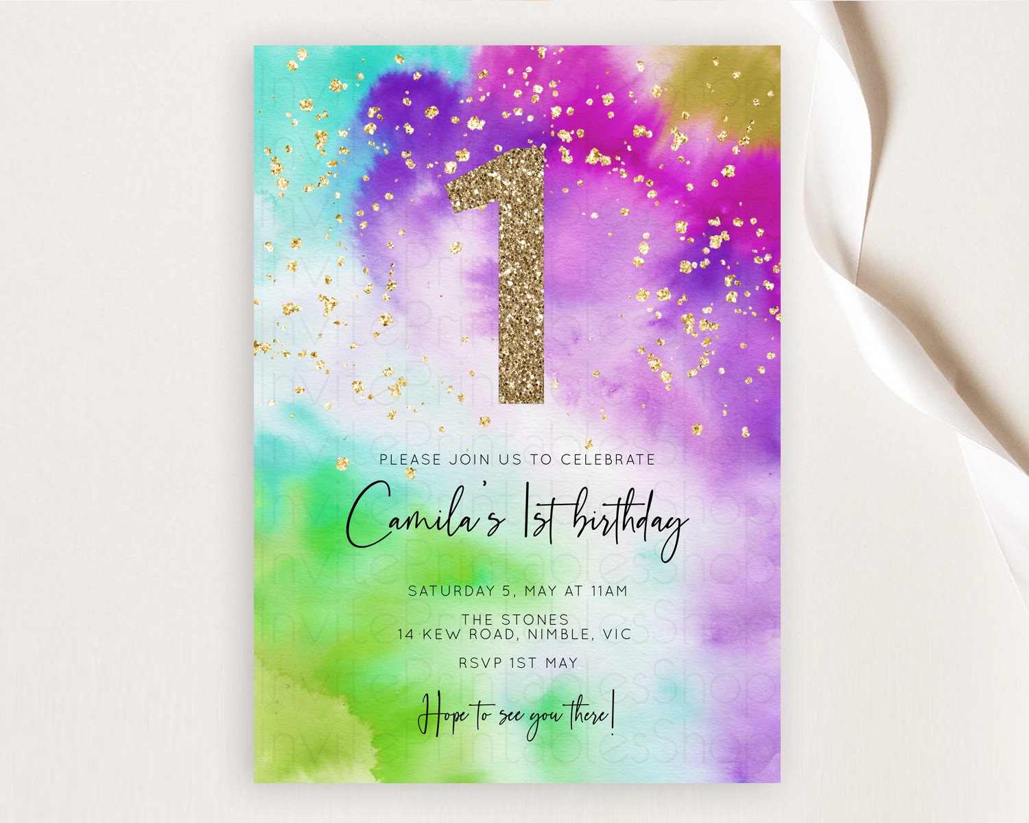 Tie Dye Invitation Rainbow Birthday Invitation Pastel Invitation Colorful Invitation Pastel Rainbow Party 3rd 2nd 1st First Birthday D10536