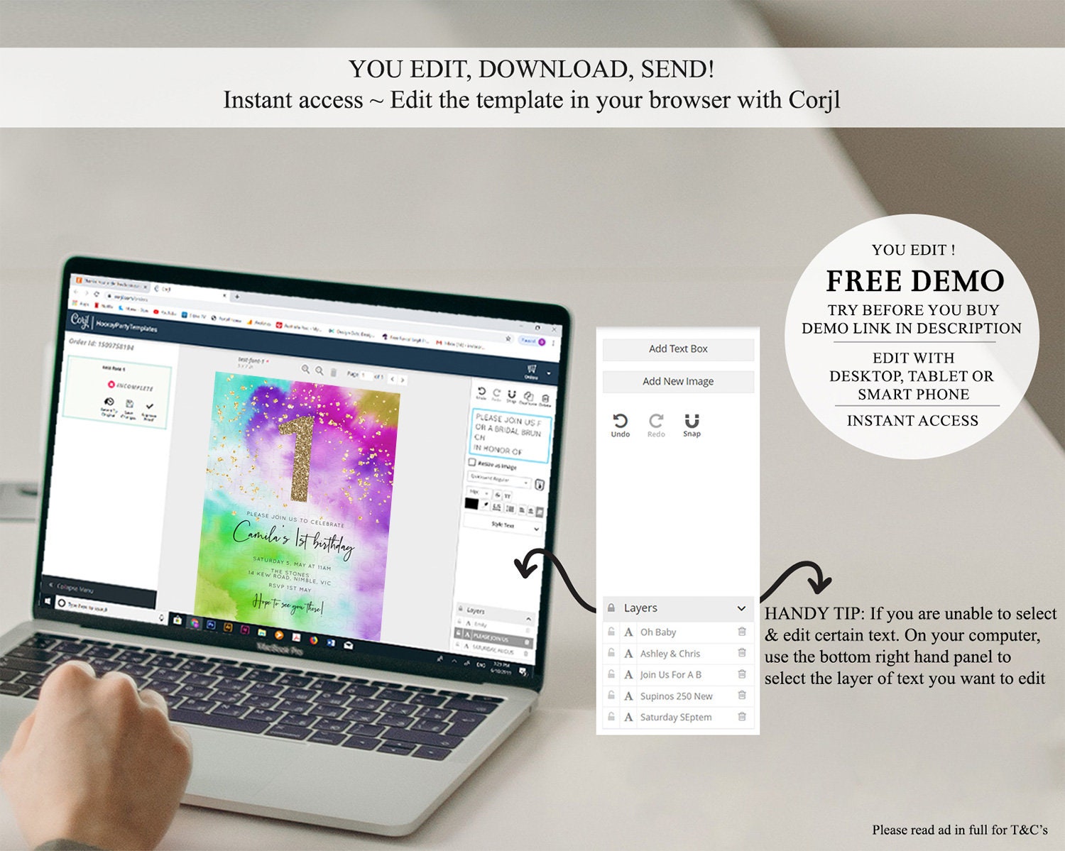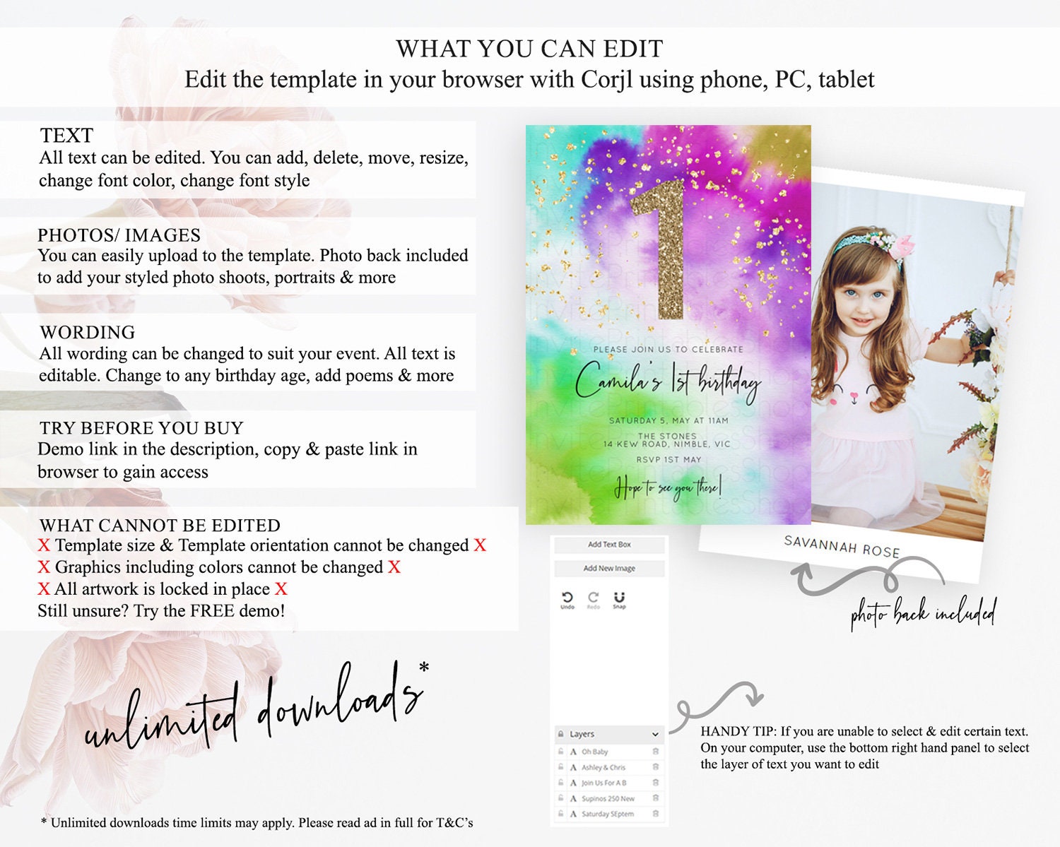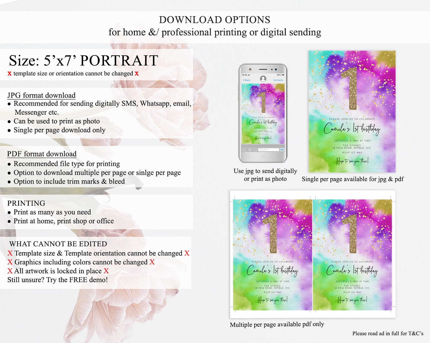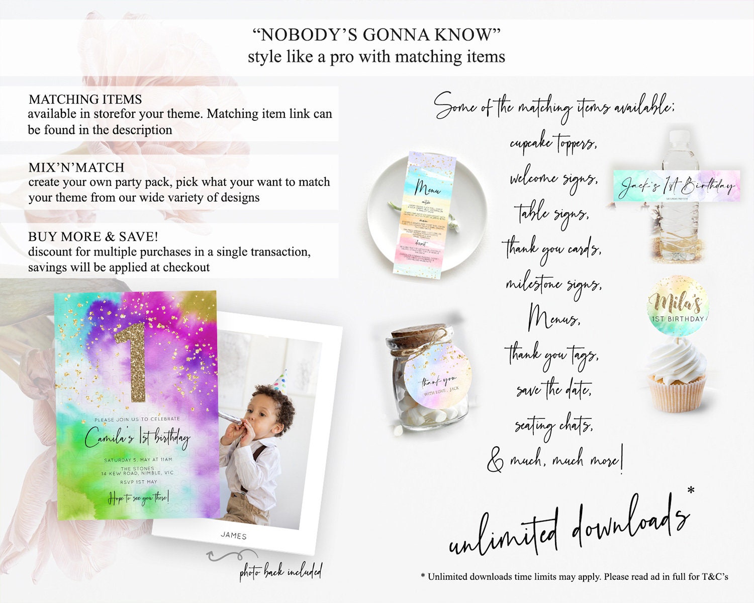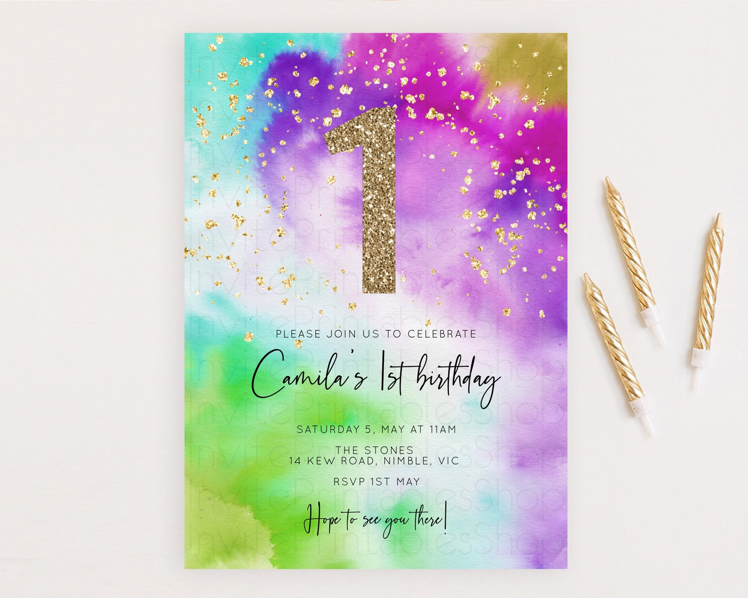 Tie Dye Invitation Rainbow Birthday Invitation Pastel Invitation Colorful Invitation Pastel Rainbow Party 3rd 2nd 1st First Birthday D10536