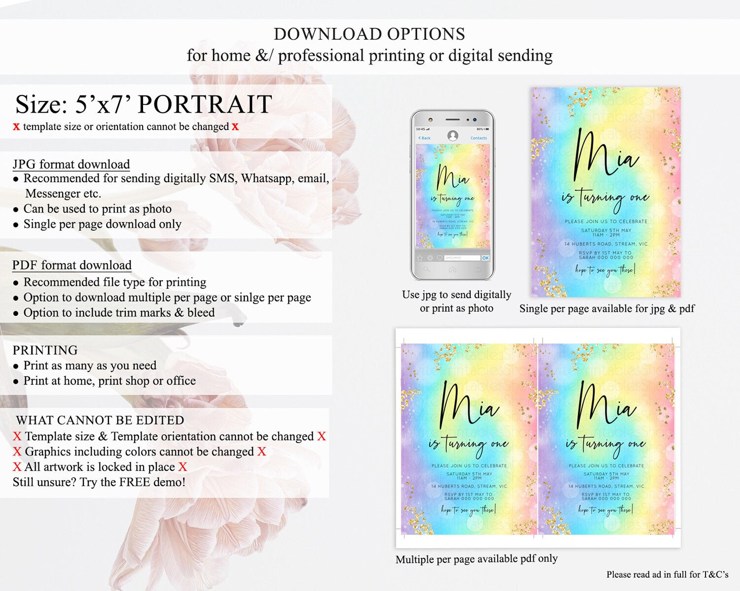 Tie Dye Invitation Rainbow Birthday Invitation Pastel Invitation Colorful Invitation Pastel Rainbow Party 3rd 2nd 1st First Birthday D10568
