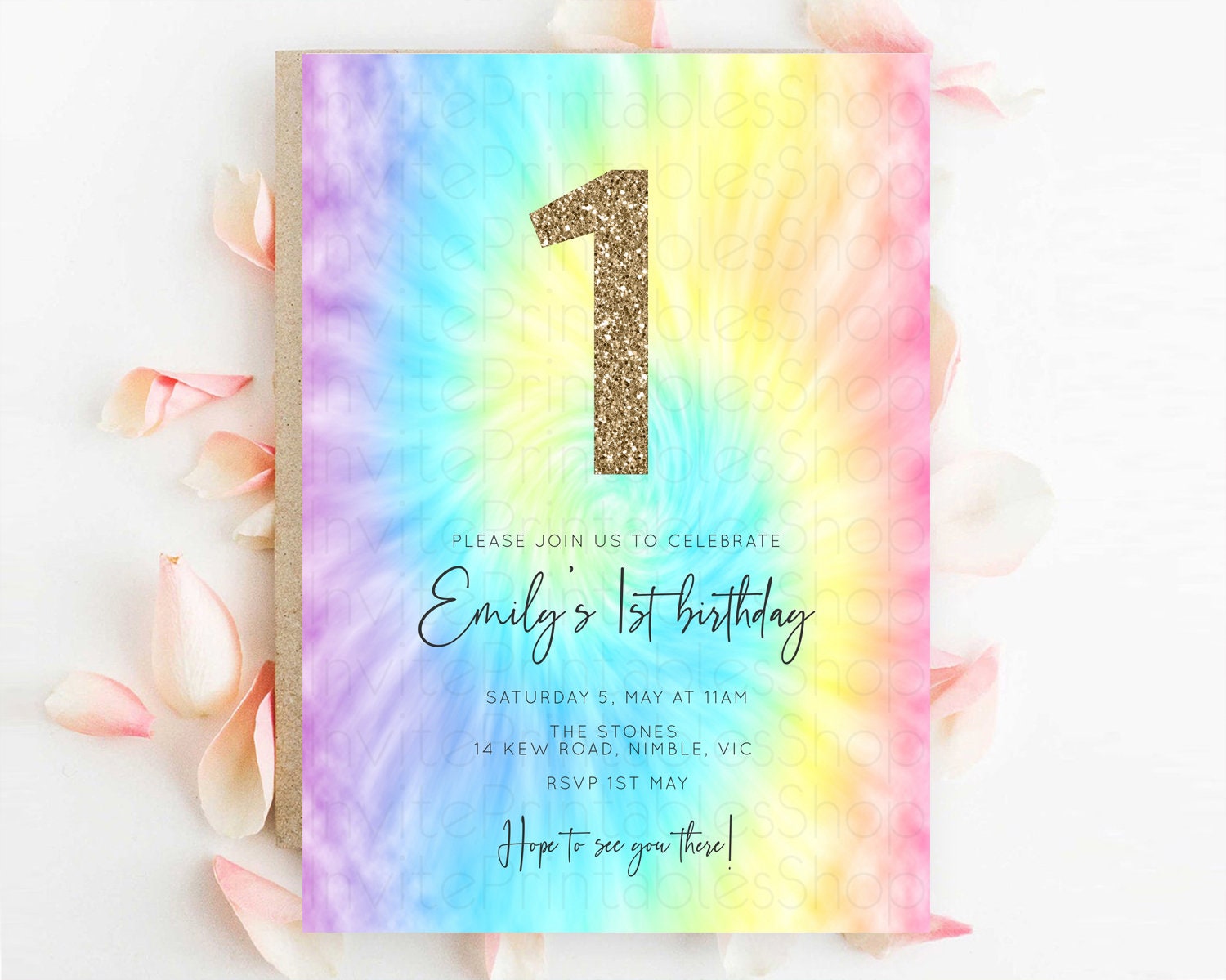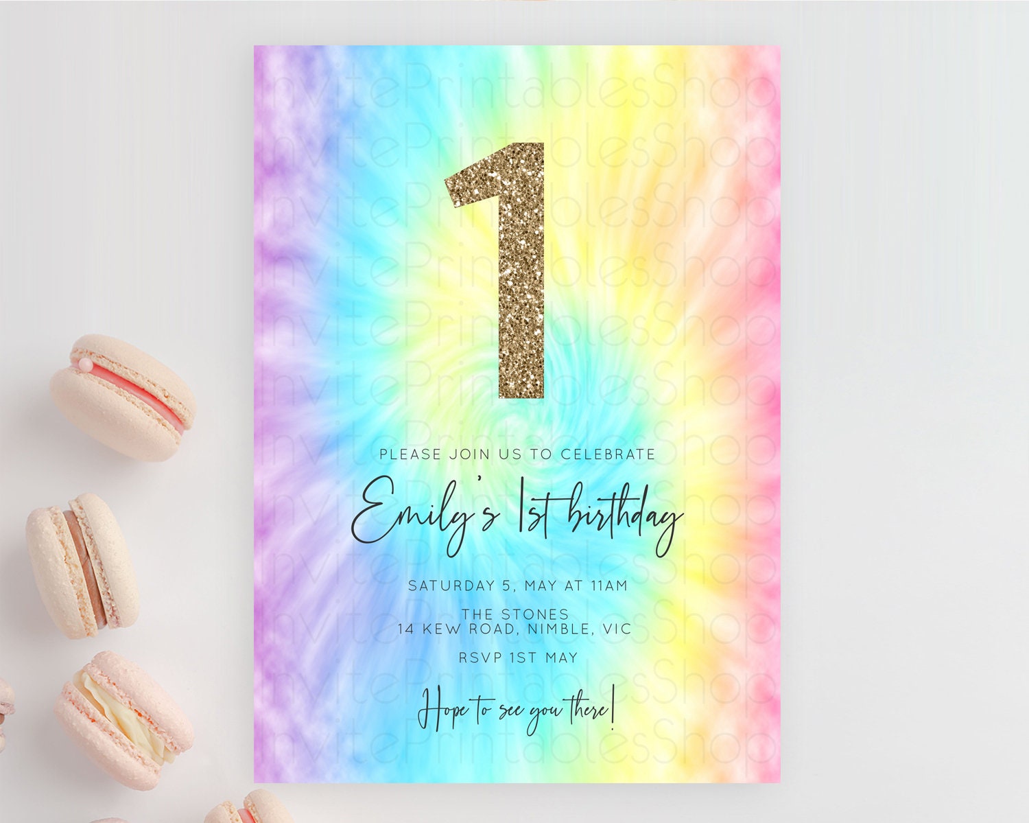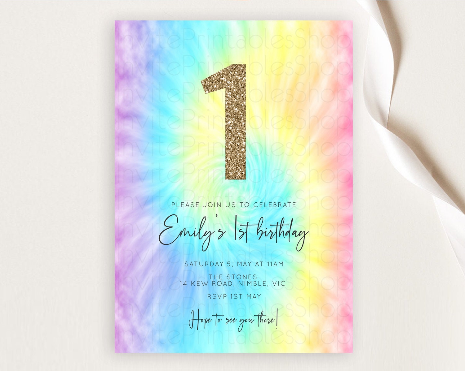 Tie Dye Invitation Rainbow Birthday Invitation Pastel Invitation Colorful Invitation Pastel Rainbow Party 3rd 2nd 1st First Birthday D10578