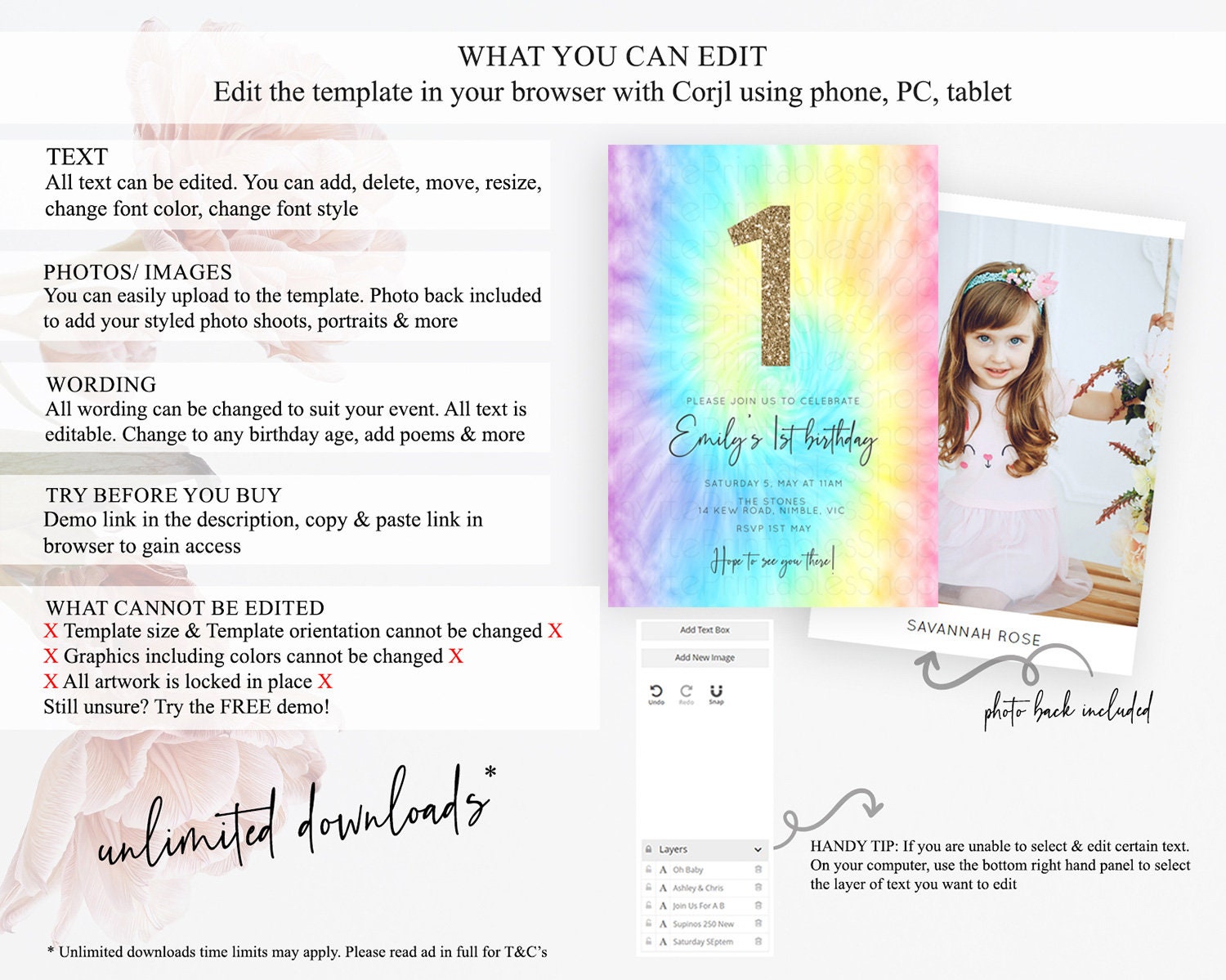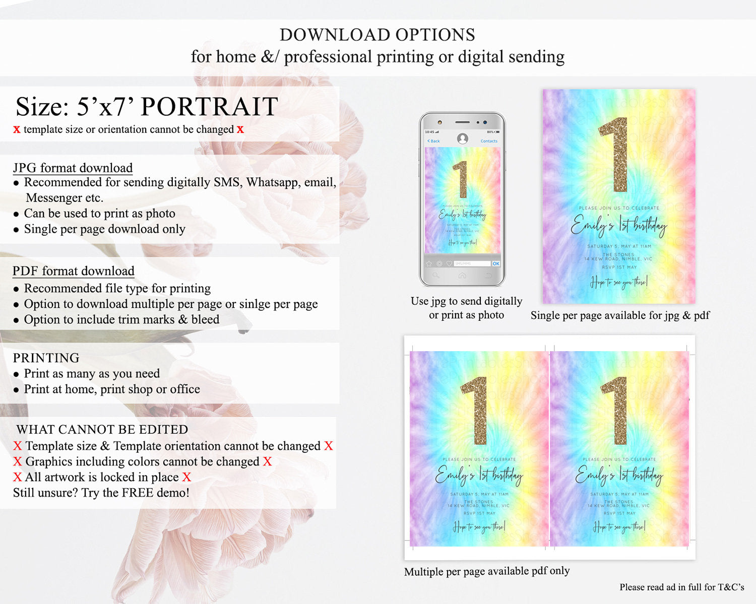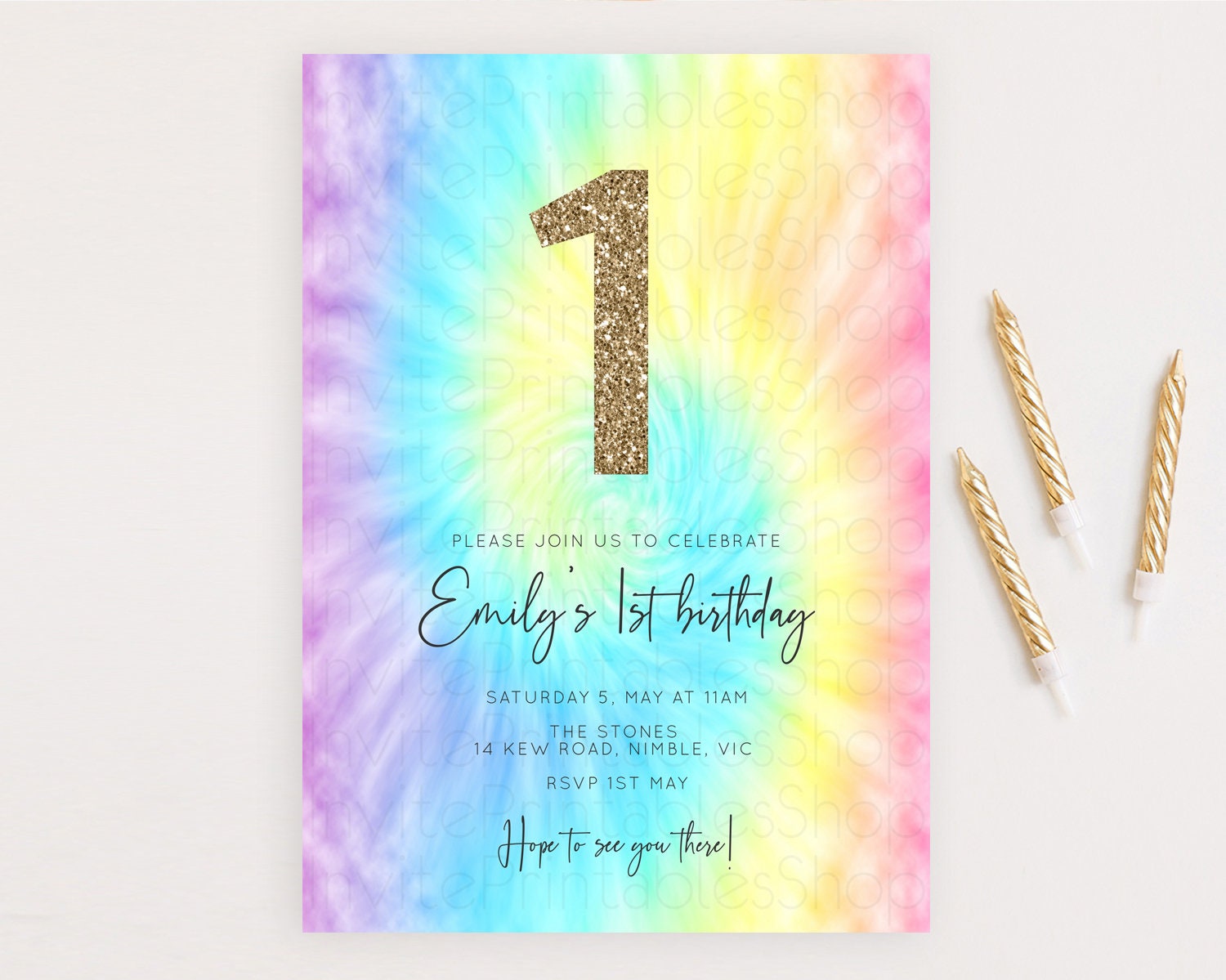 Tie Dye Invitation Rainbow Birthday Invitation Pastel Invitation Colorful Invitation Pastel Rainbow Party 3rd 2nd 1st First Birthday D10578