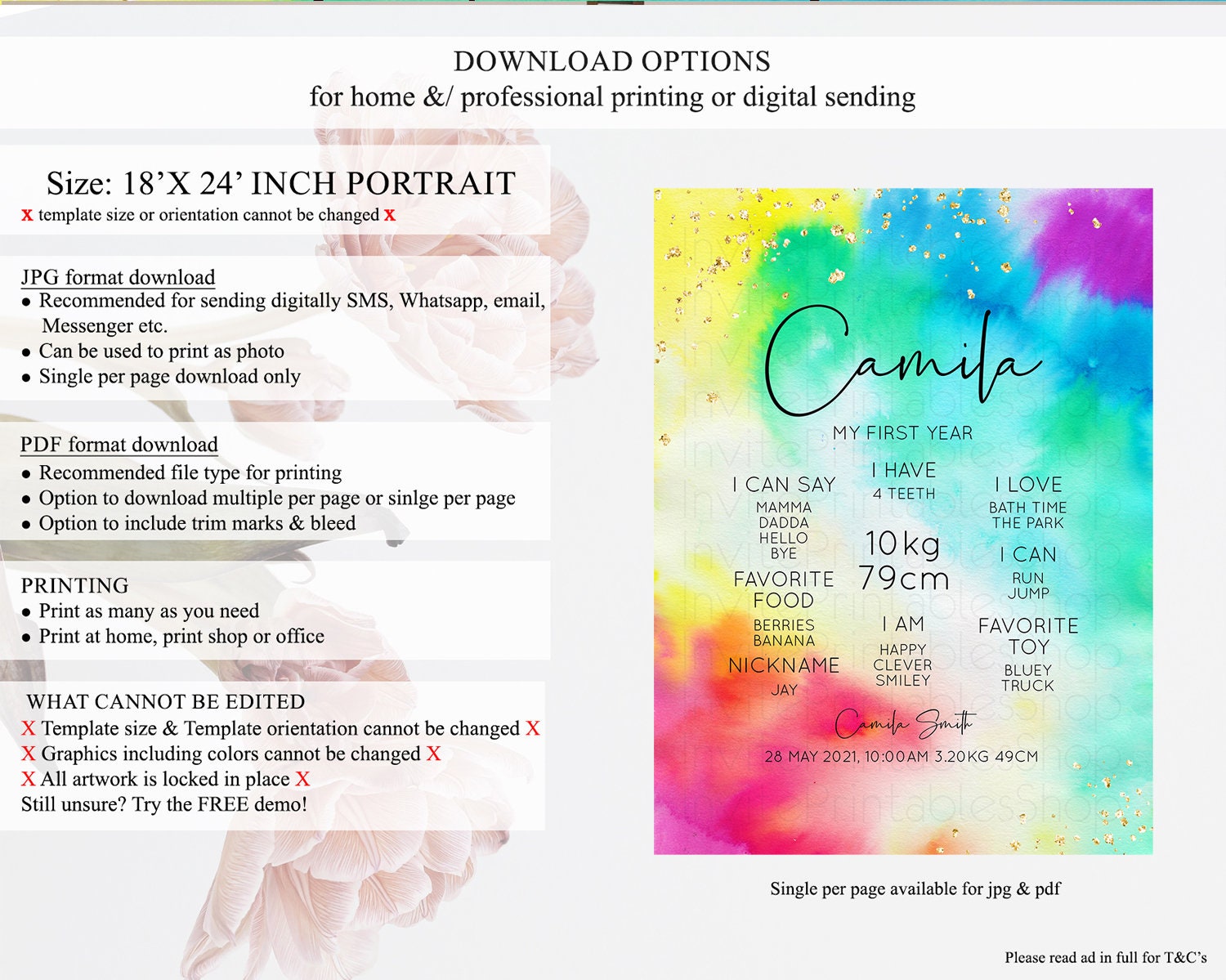 Tie Dye Milestone Board Rainbow First Birthday Milestone Poster Pastel Milestone Colorful Milestone Board Pastel Rainbow Birthday D10462