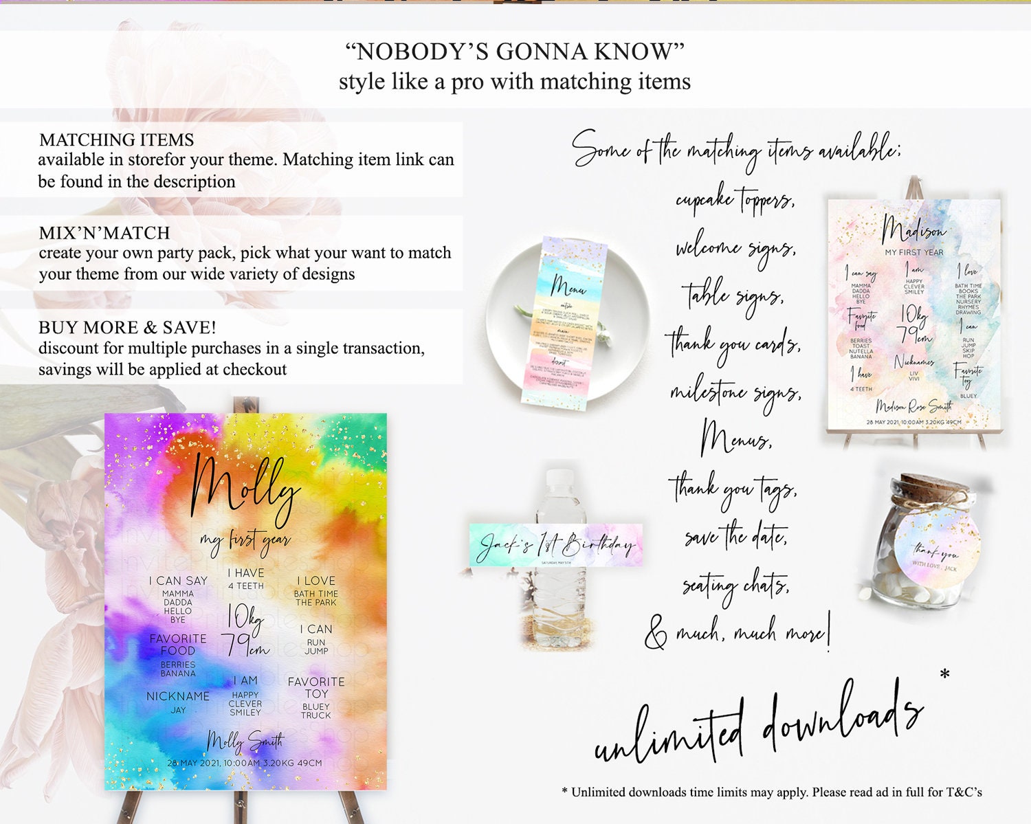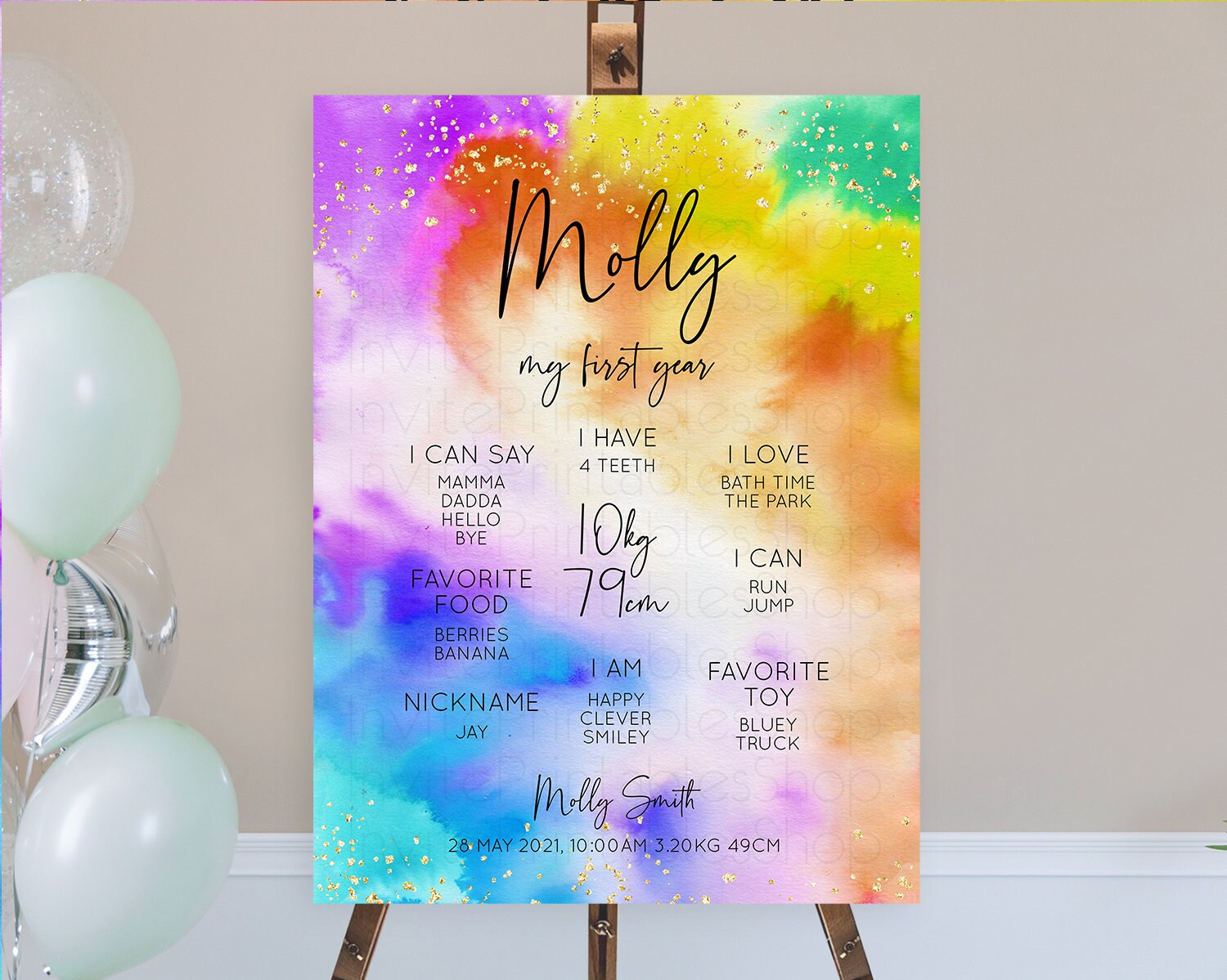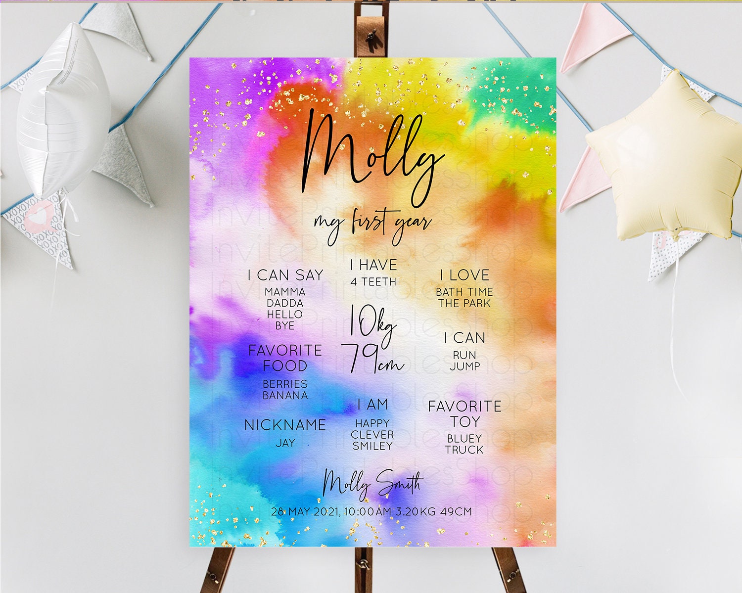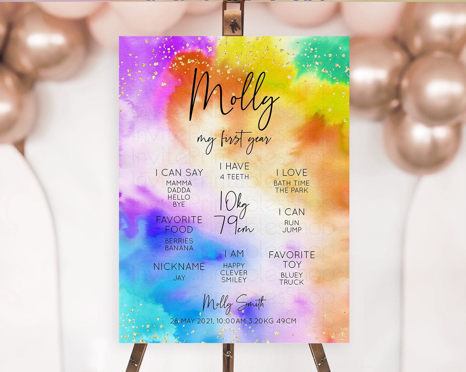 Tie Dye Milestone Board Rainbow First Birthday Milestone Poster Pastel Milestone Colorful Milestone Board Pastel Rainbow Birthday D10530