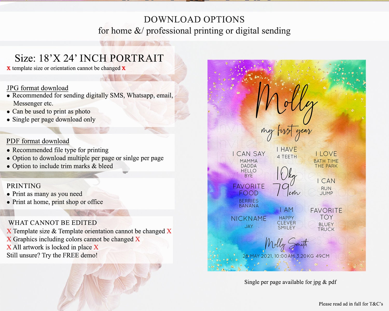 • Template size & orientation cannot be changed. Please use the demo link to confirm this product suits your needs.